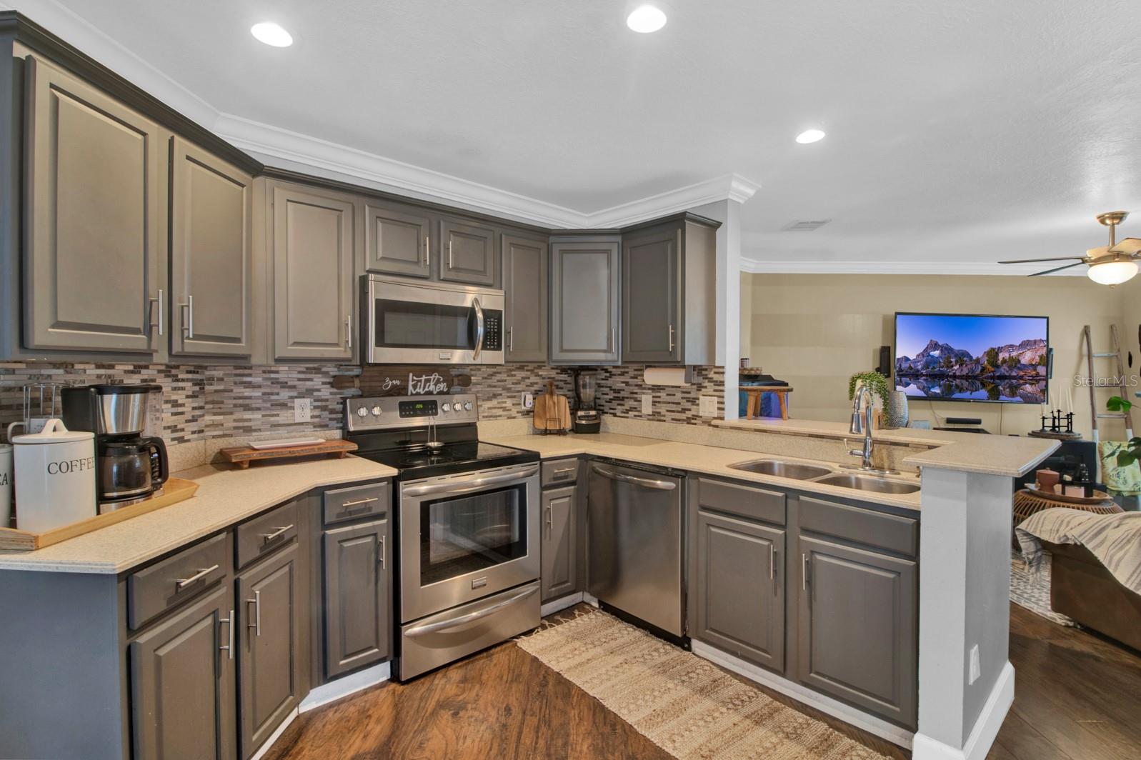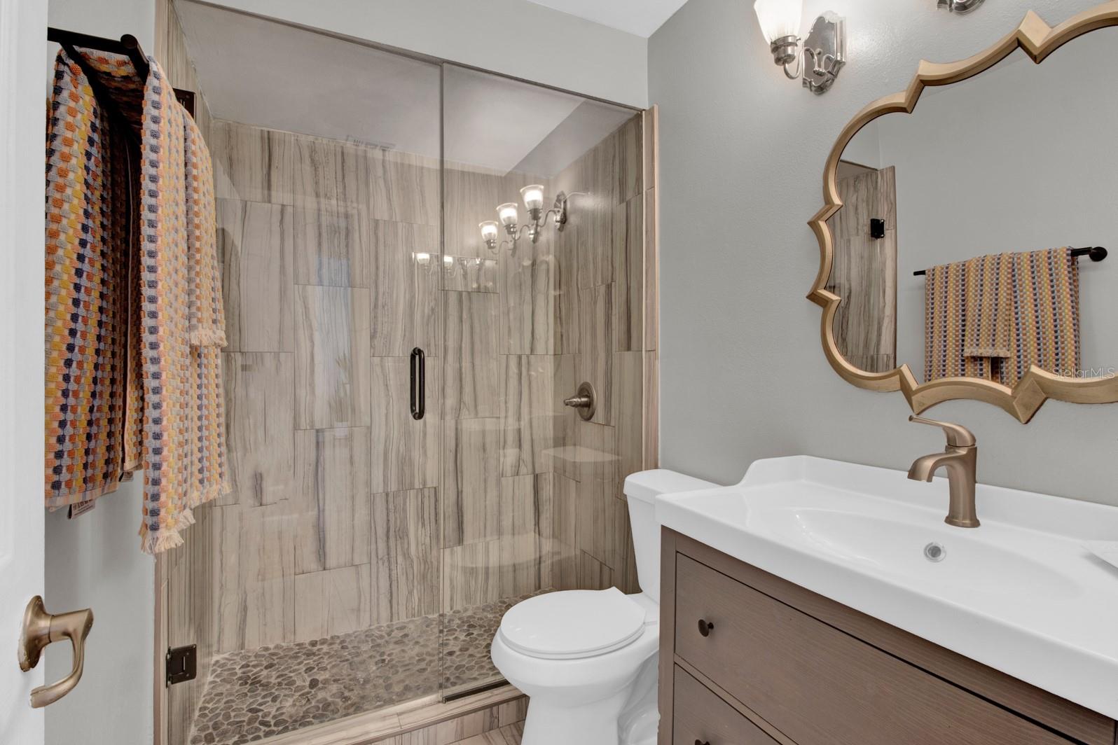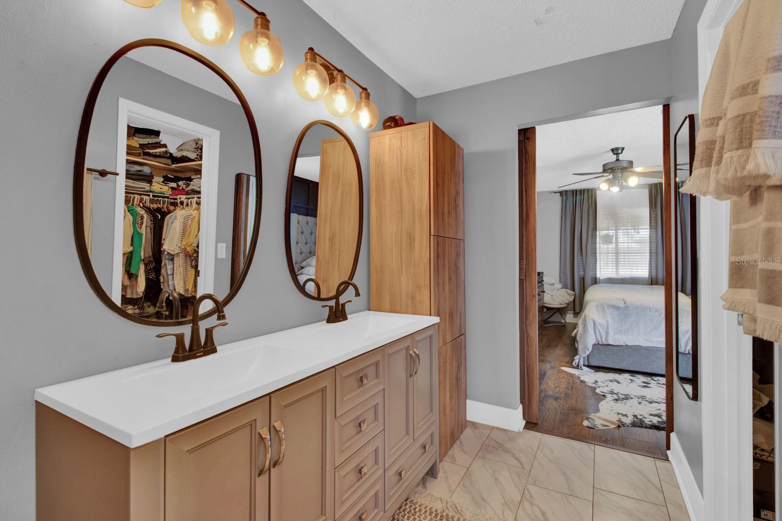Welcome to the meticulously maintained one-story concrete block home with exposed brick and a bay window. 3 bedrooms, two bathrooms, split floor plan, with a cozy family room, formal living and dining room. All major rooms have been renovated including the kitchen, master and guest bathroom. Completed renovated master bathroom offers a walk-in closet, double sink vanity, walk-in shower and custom storage cabinet. The kitchen is in the center of the home featuring a breakfast bar, Corian countertops, stainless-steel appliances, dinette and office space. The formal dining and living room features soaring vaulted ceilings offering lots of natural light. Walk into a tropical oasis and enjoy the outdoor living space perfect for entertaining, featuring a custom-built wall mounted gazebo, custom deck, electric fireplace, hot tub, outdoor kitchen, custom lighting throughout and so much more. Vinyl fenced backyard with NO REAR neighbors and a pond view. Updated and newly installed finishes include complete roof replacement & gutters with Underground Downspouts in 2020, Eco Smart Tankless Water Heater installed in 2023, titanium grey pavers installed on the oversized driveway including pathways on both sides of the home in 2023. Home also includes Aluminum Hurricane Panels. And the best part is there’s NO HOA & NO CDD!!! PRIME LOCATION!!! Conveniently located off Osceola Parkway, 1 mile to the FL Turnpike, 2 miles to SR 417 less than 15 minutes to Orlando International Airport, 15 minutes to Lake Nona and just minutes to shopping centers and eateries. Move in ready! Schedule a private showing TODAY!