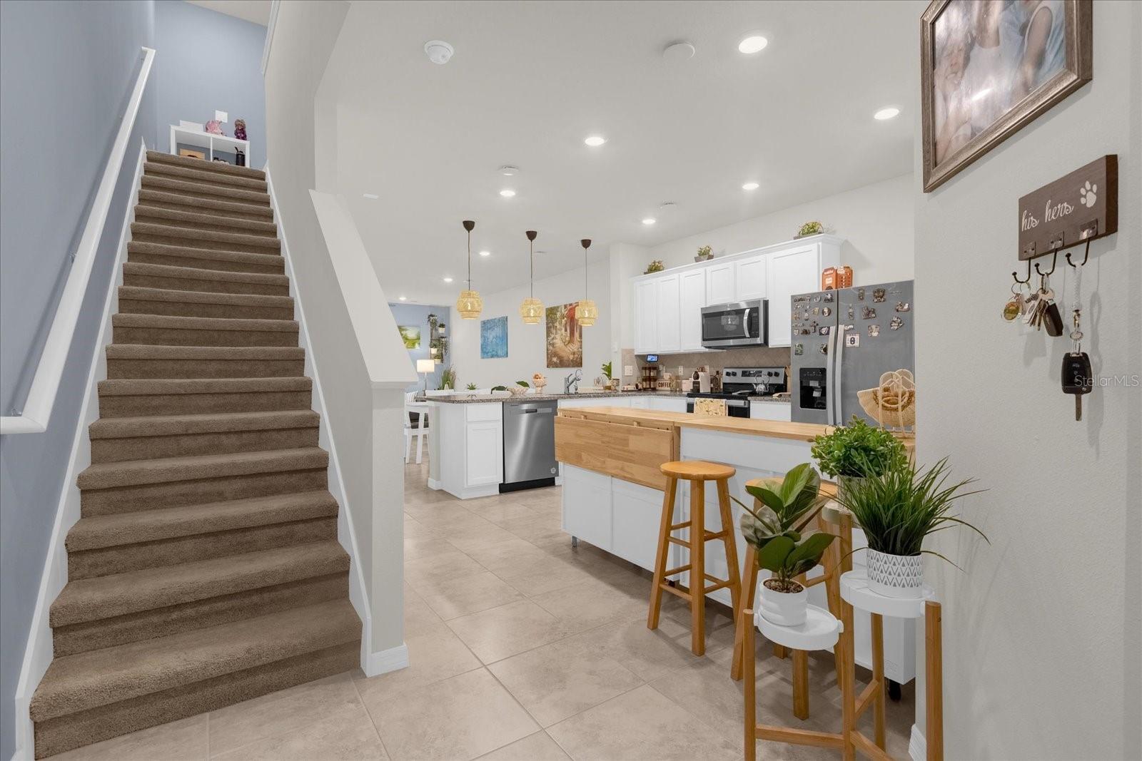 Income Producing Property!! Welcome home to Cypress Cay. A stunning two-story smart townhome that perfectly blends convenience with style. This move-in ready, fully furnished residence boasts an inviting open-concept layout, ideal for both daily living and entertaining. Located in a sought-after neighborhood, it offers a serene backyard with no rear neighbors and features the charming Craftsman exterior. The townhome includes 3 bedrooms, 2 full bathrooms, a powder room, a single-car garage, and a cozy back patio. The kitchen is a chef’s dream, equipped with a pantry, bright white cabinetry, a tile backsplash, quartz countertops, and porcelain tile flooring. After a busy day, unwind in your private retreat on the second floor. The Owner’s Suite features a spacious walk-in closet and an en-suite bathroom with a double sink quartz-topped vanity, a private water closet, and a walk-in shower. Two additional bedrooms, a secondary bathroom, and the laundry are also located on this level, ensuring ample privacy and space. Enjoy unbeatable community amenities such as a pool and cabana, a playground, a half-court basketball court, a dog park, walking trails, and a fiber network providing up to 1 Gigabit internet speed. The prime location 6 miles from Disney World offers easy access to I-4, 417, Osceola Parkway, International Drive, The Loop, Disney, Old Town, and SeaWorld— all just minutes away.