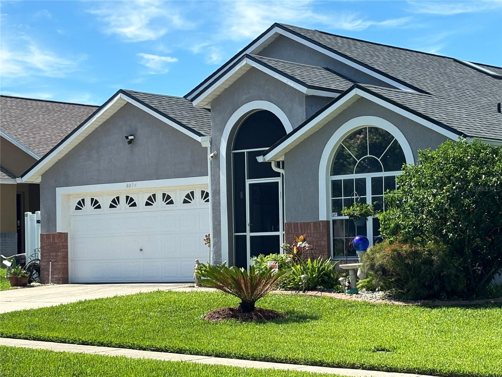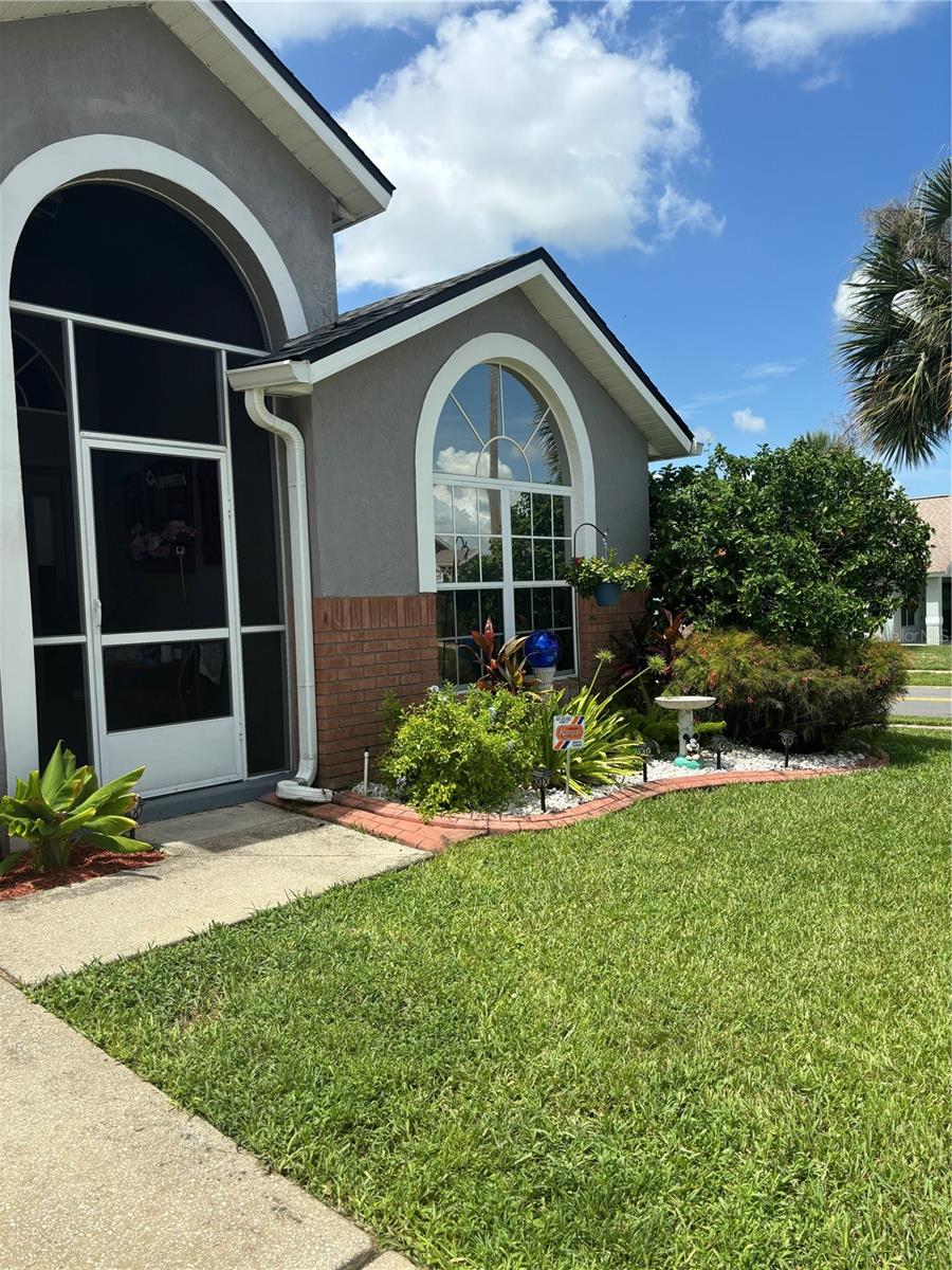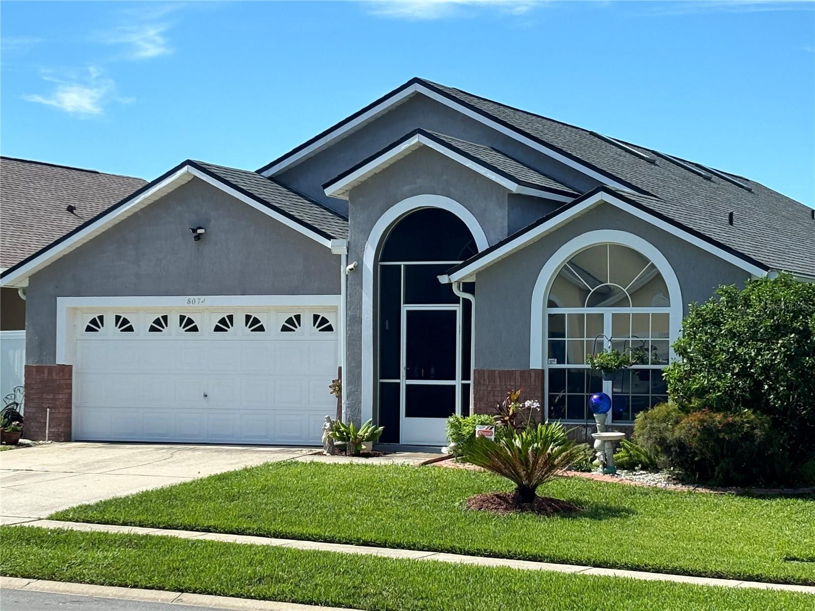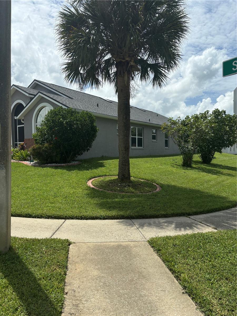 Conveniently located west on 192 this well maintained home comes with huge corner lot. Fenced in at side and back to maintain your privacy with five bedrooms and four bathrooms all situated on one floor house has been painted inside huge living/dining room combo. Newly install Pella French doors with blind inserted within glass Large kitchen in middle of floor plan has newly painted cabinets, dark stainless appliances kitchen island and kitchen nook large skylights allow Maximum use of natural sunlight Master bedroom located to rear of house with master En suite, consisting of large shower stall, garden bath, twin vanities, walk in closet. This has direct access to covered lanai and mono blocked pool deck, pool and hot tub all within pool screen enclosure. Second master has ensuite with shower/tub single vanity, ease of access to covered land and pool through single swing door, third and fourth queen size bedrooms conveniently situated at either side of thirdBathroom with shower/tub and single Vanity. Large SOUTH facing pool and spa fenced in for extra privacyTo the front of the house is fifth bedroom with double window and fourth bathroom situated at the side. Foyer leads to screened in entry porch. ROOF REPLACED APRIL 2024 NEW SKYLIGHTS, AC has been replaced, GUTTERS INSTALLED perfectly manicured landscaping, painted outside. Screened in entry inside the house has been painted, Newly installed PELLA french doors, newly installed 30 inch high toilets Newly painted kitchen cabinets, dark stainless appliances, located close to Disney and margaritaville this house is ideal for residential or short term rental. Community has two recreational play areas Close to 192 shopping plazas and all restaurants