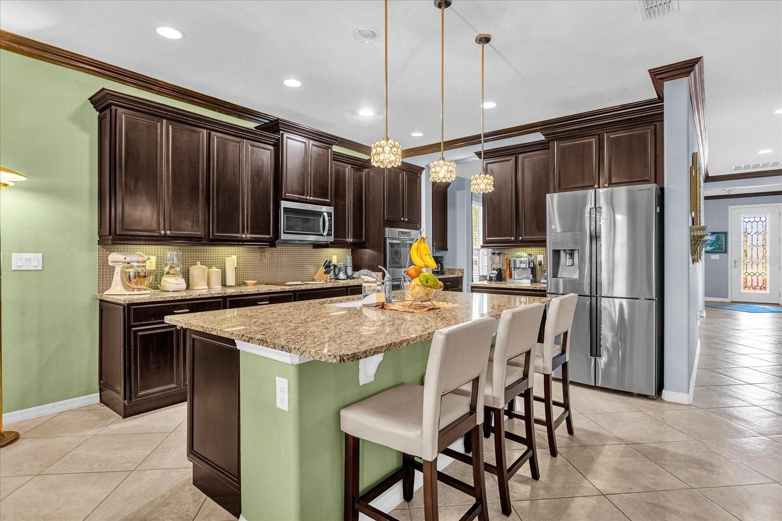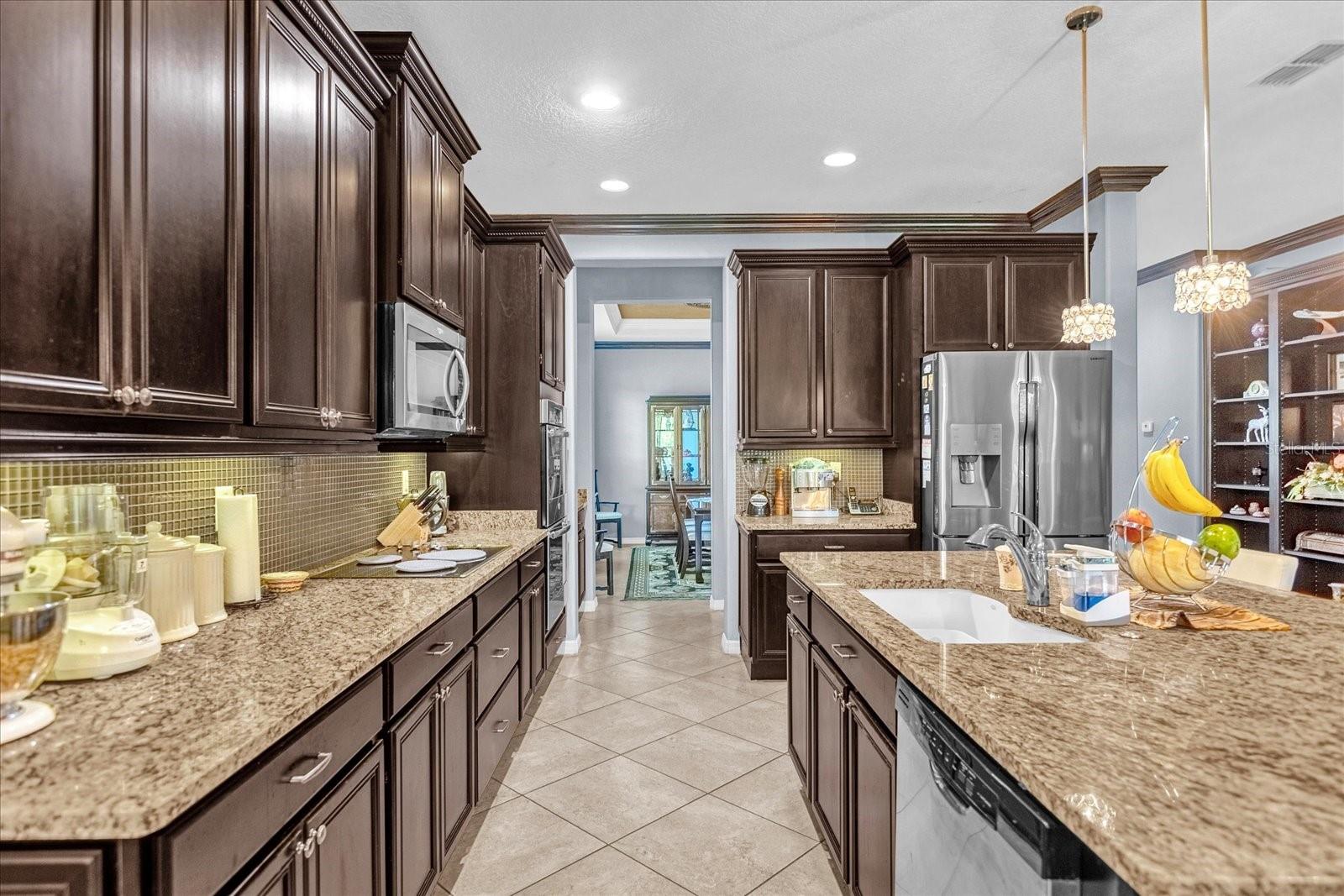 Welcome to your dream home in the vibrant Solivita community, exclusively for those 55+ who seek an enriching lifestyle! This beautiful 3-bedroom, 2-bathroom house is a sanctuary of luxury and comfort. Imagine relaxing on your extended, lanai with pavers, or entertaining in a living and dining area adorned with elegant tray ceilings. The home boasts stunning 20" diamond-shaped tiles, complemented by 8-foot tall doors and bullnose walls. The gourmet kitchen, equipped with a chef's pantry and ceramic sink, is a culinary paradise. The primary bedroom features a California walk-in closet with exquisite wood finishes, while the entire house is enhanced with elegant crown molding. The versatile 3rd bedroom can be transformed into your personal exercise retreat, making this home both beautiful and functional. The 4-foot extended garage adds convenience and space for all your needs. Solivita offers amazing amenities, exciting events, and delightful Bingo Sundays, creating a community where you can thrive. Solivita community, where every day feels like a vacation! This 55+ haven offers an unparalleled lifestyle with world-class amenities that cater to every interest and passion. Imagine enjoying a beautifully manicured softball diamond and field, or perfecting your swing on 36 holes of championship golf at the Stonegate Golf Club, golfing has never been more flexible. Solivita boasts two state-of-the-art amenity centers, featuring updated exercise equipment, a serene yoga studio, and versatile meeting rooms. Dine at any of the three delightful restaurants, or unwind in one of the 14 heated pools. For the sports enthusiast, there are 17 pickleball courts, 9 tennis courts, 4 bocce ball courts, 4 shuffleboard courts, and 3 horseshoe pits. Enjoy a game of billiards, or explore miles of scenic bike paths. Your furry friends will love the two dog parks designed for small and large dogs. Families will appreciate the tot lot playground, while gardeners can indulge their green thumbs in the community garden. with over 300 resident clubs, there’s always something exciting to do. The Homeowners Association (HOA) takes care of everything, from maintaining landscaping and irrigation systems to ensuring the roads are in top condition. Your security is a priority, with gate guards, mobile patrols, and the Polk County Sheriff providing peace of mind. Automated gate access via license plate readers makes coming home effortless, and basic cable TV service is included for all residents. Experience the vibrant, carefree lifestyle of Solivita and discover why this community is the perfect place to call home! Don’t miss your chance to make this dream home yours! Poinciana Lakes Plaza shopping center with restaurants, shopping, medical care and more opening in 2024 behind the Walgreen's and Poinciana Medical Center & Medical Arts Bldg. Make this YOUR home today!
