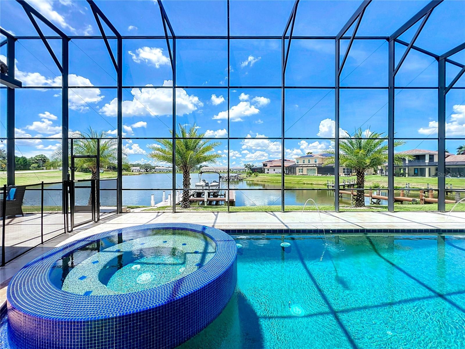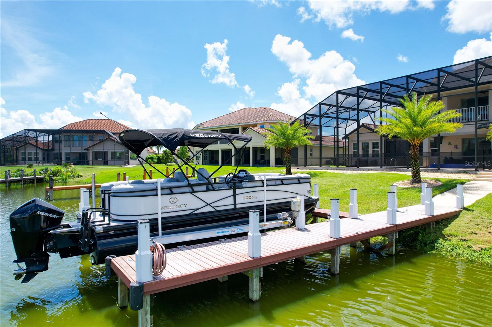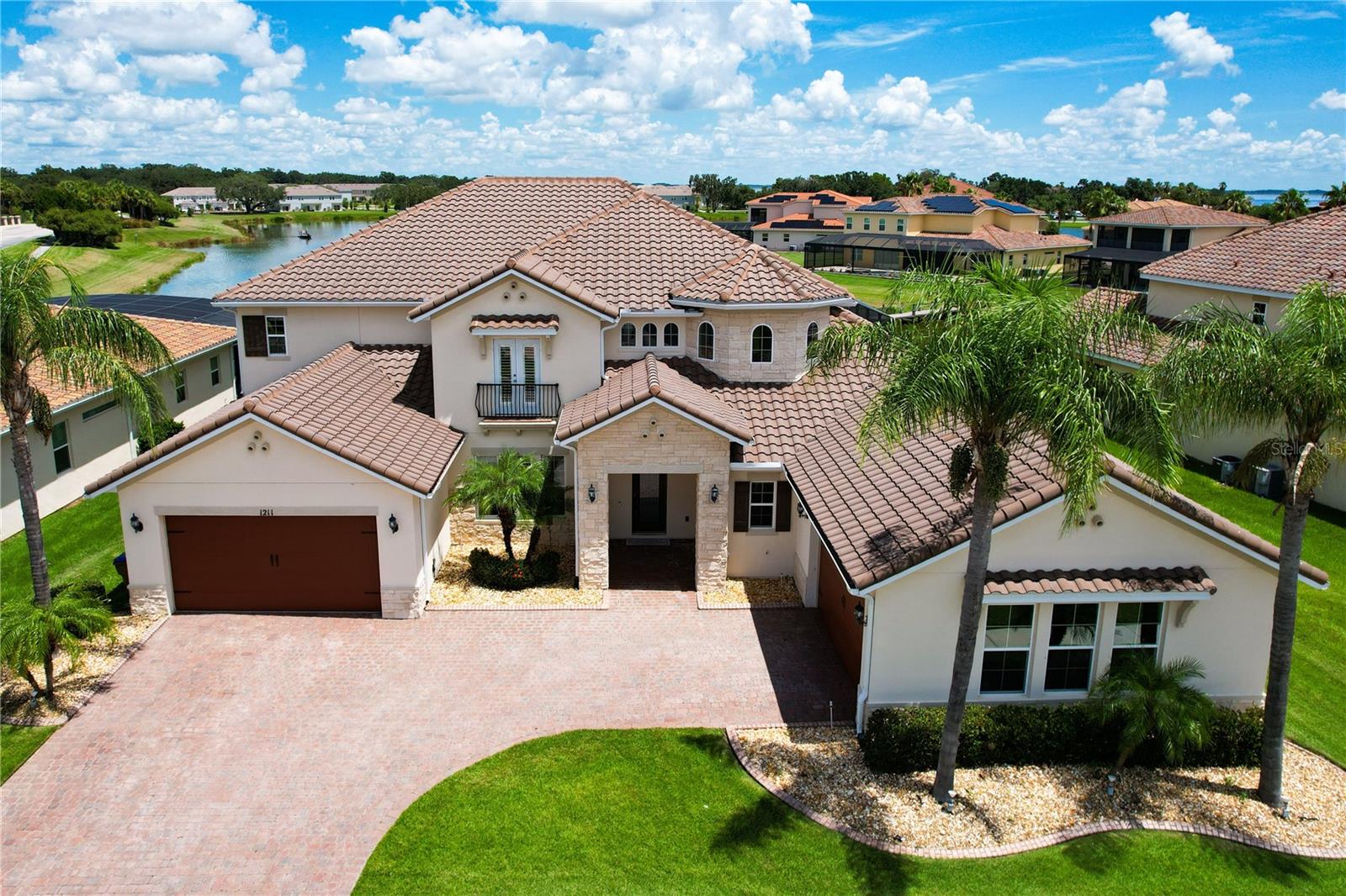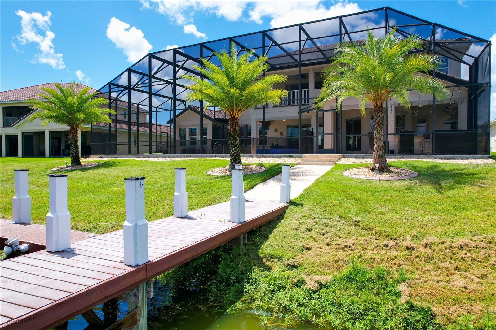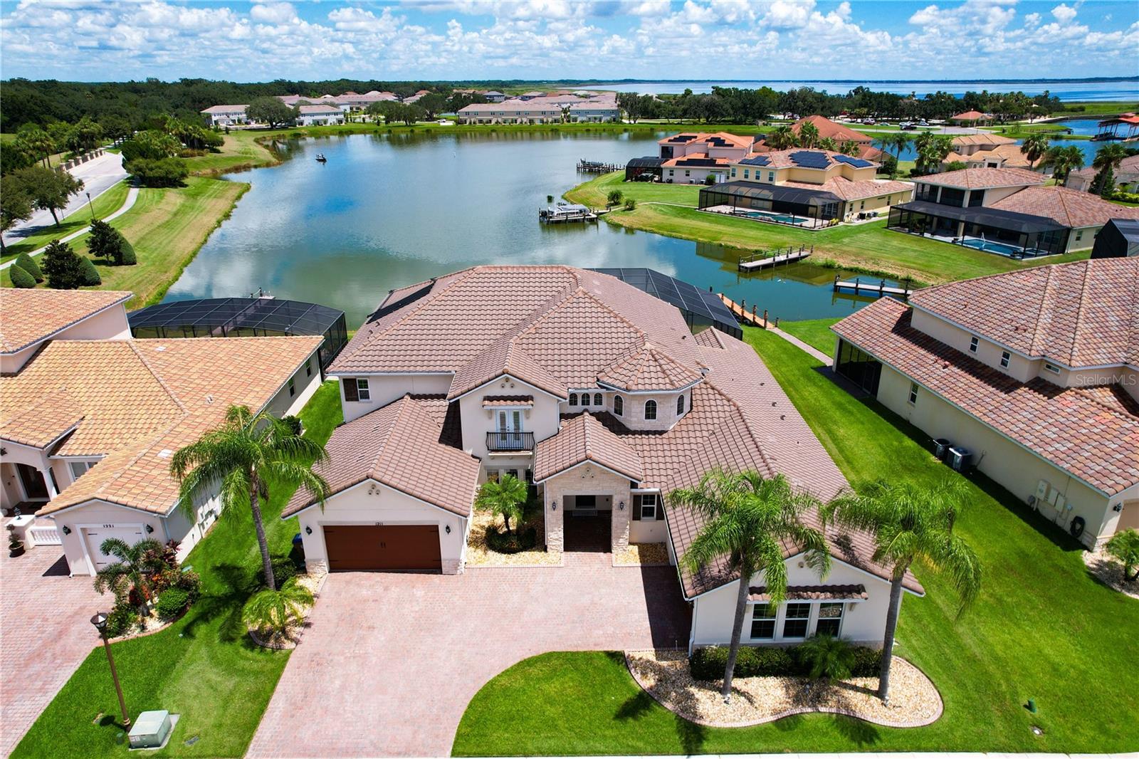 Come home to your exquisite Lakefront paradise that offers elegance and sophistication. This luxurious property is found in the renowned guard-gated community of Bellalago in Kissimmee, Florida. The home sits on a dead-end cul-de-sac street on a peninsula surrounded by beautiful water that leads directly into Lake Toho. The property is strategically designed to create an atmosphere that exudes splendor, caters to the family comfort, and hosts the most distinguished guests. As you step into the grand foyer, you'll be captivated by the spacious, two-story, soaring 20-foot ceilings and be immediately fascinated by the spaciousness and natural light that fills the open floor plan. The main living area is adorned with high-end finishes, including designer laminate flooring, a state-of-the-art surround sound system, lighting, and rounded walls, enhancing the overall luxury. A chef's dream kitchen has premium stainless-steel appliances, 42-inch cabinetry, exquisite granite countertops and backsplash, and spacious walking and butler pantries. The center island with a breakfast bar is a focal point and is perfect for casual dining or entertainment. The primary suite on the first floor boasts a magnificent en-suite bathroom and modern quartz countertops, as in the other 4 ½ bathrooms. The 9ft. 3-panel sliding glass doors open to a spacious 2-story screened patio, complete with a fully equipped summer kitchen, saltwater pool, and spa heated by solar and gas heating features. Enhance your waterfront living experience with direct access to Lake Taho from your backyard, allowing you to enjoy boating, fishing, and other water activities while utilizing the 11-seater Regency 230 DL3 Pontoon boat docked at your private boat dock (BOAT CONVEYED WITH THE PURCHASE). Relax and enjoy the expansive lake views, birds chirping, the starry nights, and the pool's synchronized light show. This is not just a home; it's a lifestyle! Conveniently located near schools, parks, golf courses, shopping centers, Celebration, Disney, Universal Studios, Orlando International Airport, and much more!