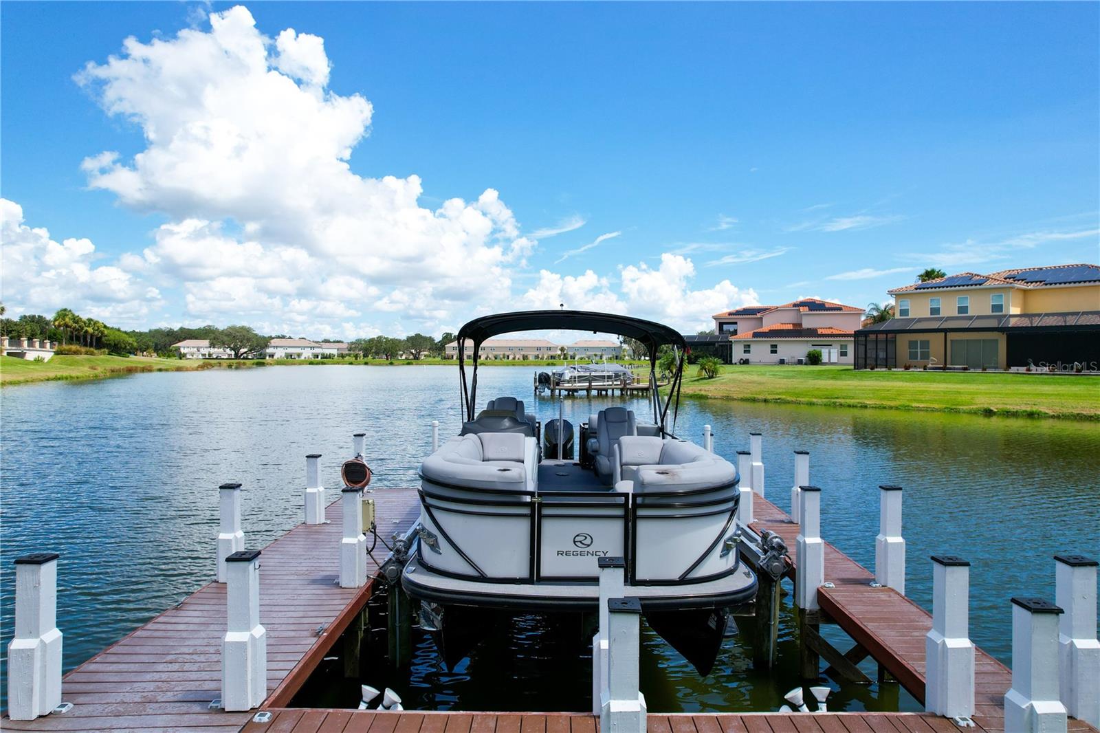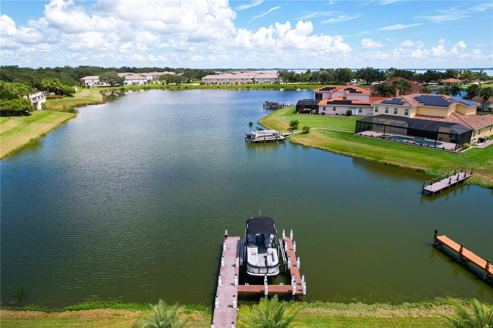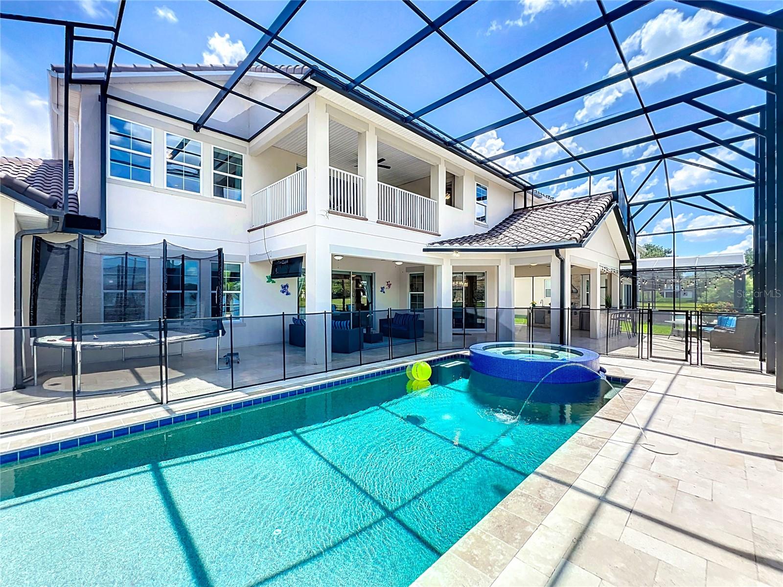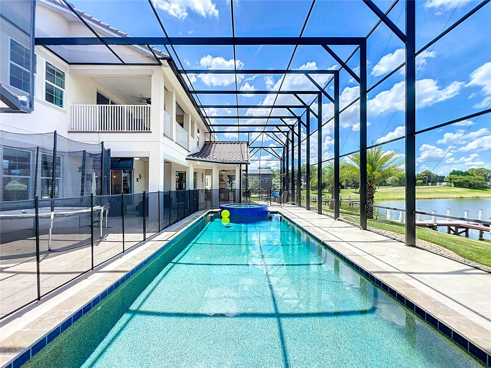 Come home to your exquisite Lakefront paradise that offers elegance and sophistication. This luxurious property is found in the renowned guard-gated community of Bellalago in Kissimmee, Florida. The home sits on a dead-end cul-de-sac street on a peninsula surrounded by beautiful water that leads directly into Lake Toho. The property is strategically designed to create an atmosphere that exudes splendor, caters to the family comfort, and hosts the most distinguished guests. As you step into the grand foyer, you'll be captivated by the spacious, two-story, soaring 20-foot ceilings and be immediately fascinated by the spaciousness and natural light that fills the open floor plan. The main living area is adorned with high-end finishes, including designer laminate flooring, a state-of-the-art surround sound system, lighting, and rounded walls, enhancing the overall luxury. A chef's dream kitchen has premium stainless-steel appliances, 42-inch cabinetry, exquisite granite countertops and backsplash, and spacious walking and butler pantries. The center island with a breakfast bar is a focal point and is perfect for casual dining or entertainment. The primary suite on the first floor boasts a magnificent en-suite bathroom and modern quartz countertops, as in the other 4 ½ bathrooms. The 9ft. 3-panel sliding glass doors open to a spacious 2-story screened patio, complete with a fully equipped summer kitchen, saltwater pool, and spa heated by solar and gas heating features. Enhance your waterfront living experience with direct access to Lake Taho from your backyard, allowing you to enjoy boating, fishing, and other water activities while utilizing the 11-seater Regency 230 DL3 Pontoon boat docked at your private boat dock (BOAT CONVEYED WITH THE PURCHASE). Relax and enjoy the expansive lake views, birds chirping, the starry nights, and the pool's synchronized light show. This is not just a home; it's a lifestyle! Conveniently located near schools, parks, golf courses, shopping centers, Celebration, Disney, Universal Studios, Orlando International Airport, and much more!