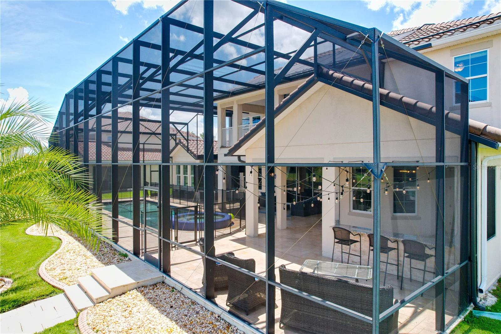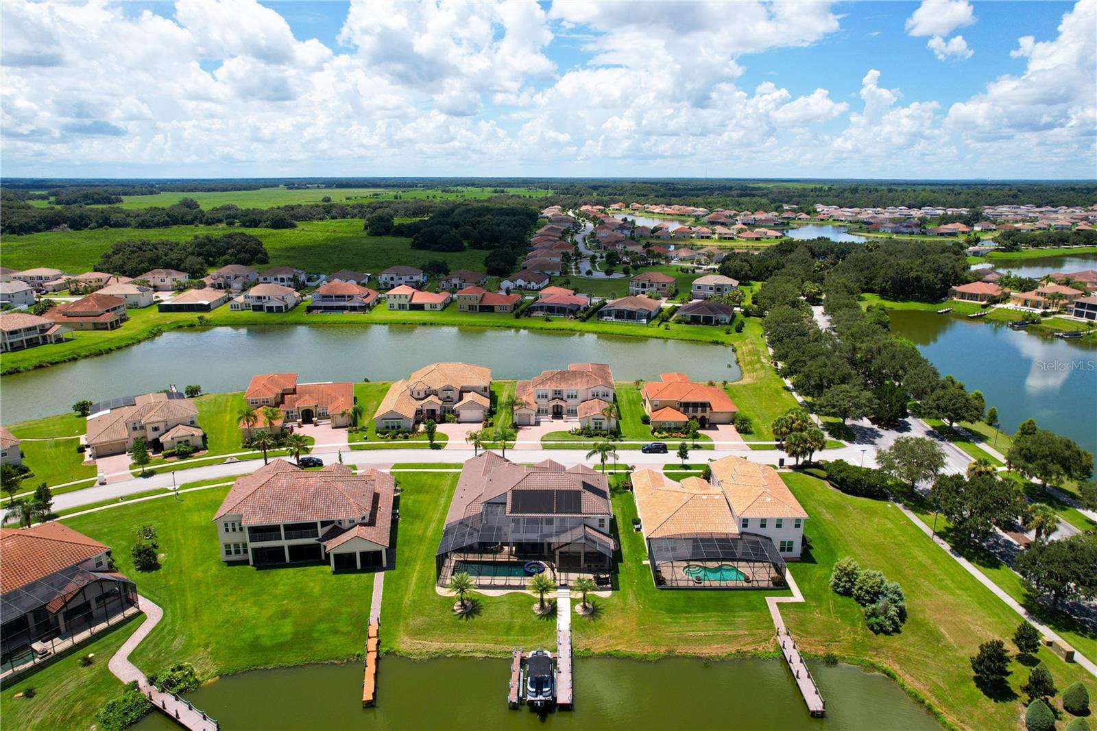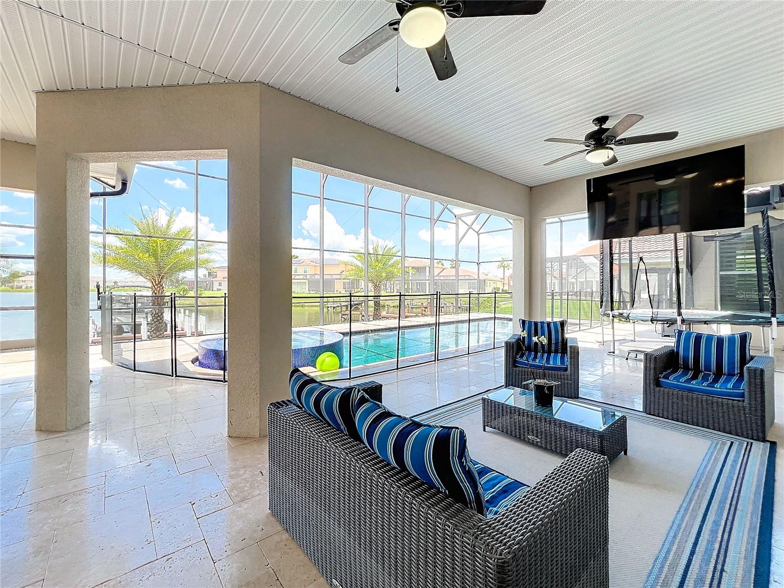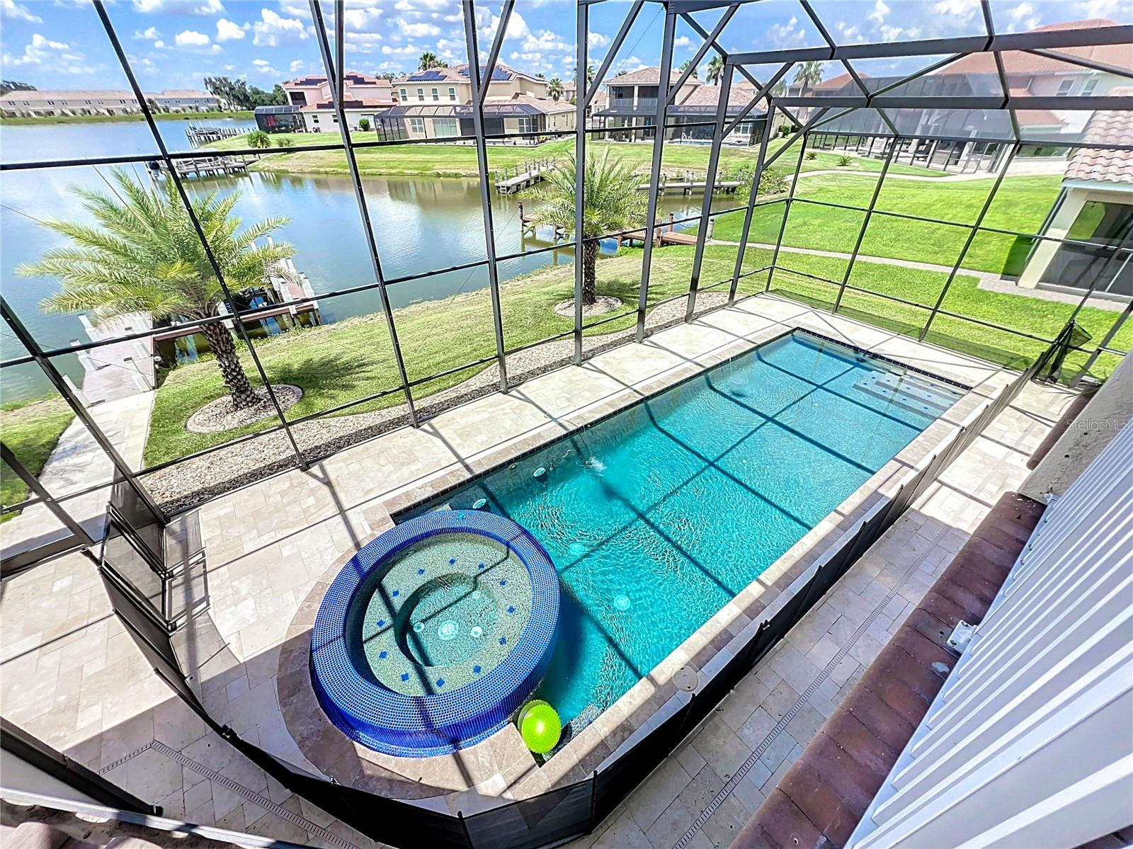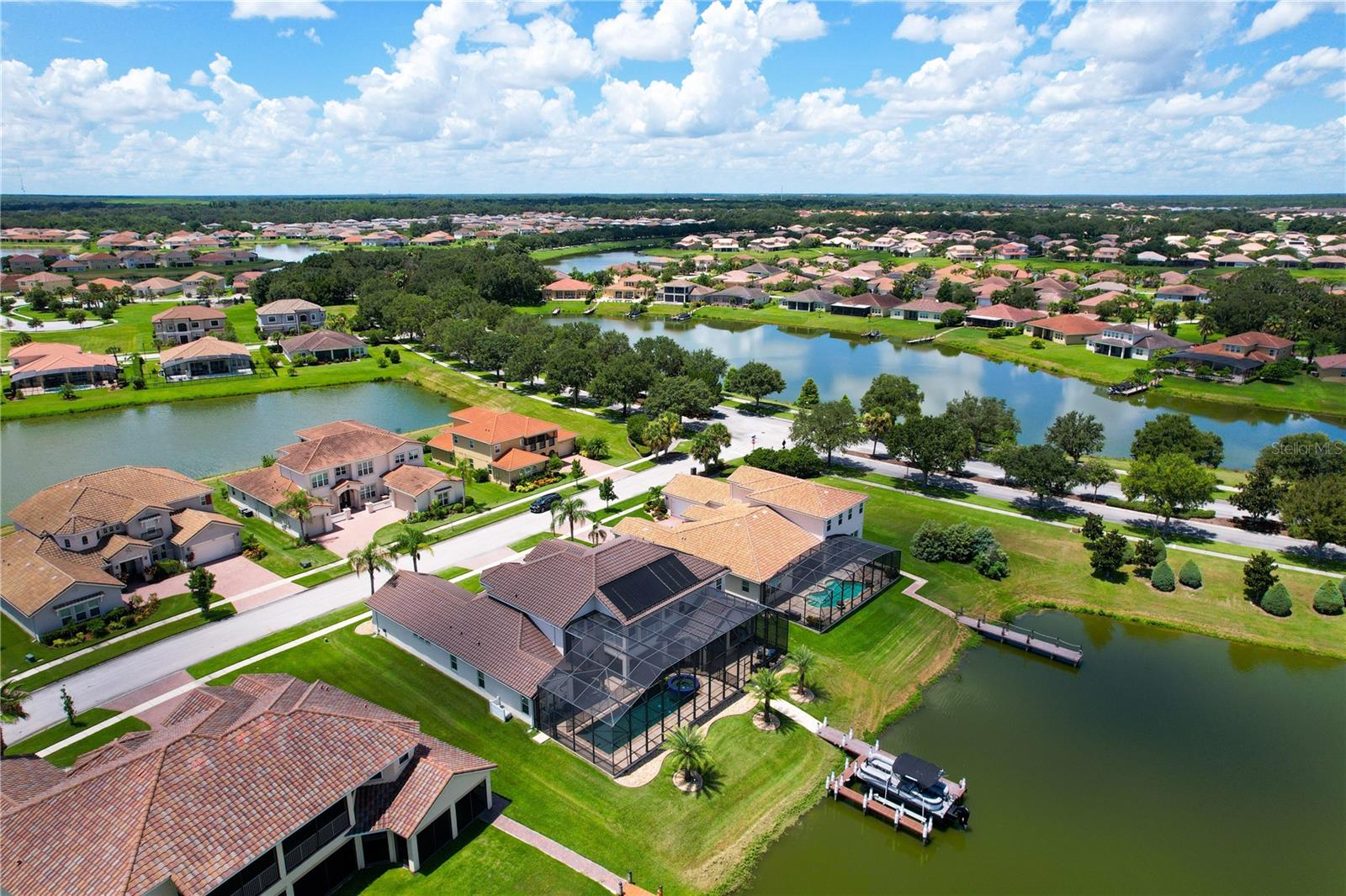 Come home to your exquisite Lakefront paradise that offers elegance and sophistication. This luxurious property is found in the renowned guard-gated community of Bellalago in Kissimmee, Florida. The home sits on a dead-end cul-de-sac street on a peninsula surrounded by beautiful water that leads directly into Lake Toho. The property is strategically designed to create an atmosphere that exudes splendor, caters to the family comfort, and hosts the most distinguished guests. As you step into the grand foyer, you'll be captivated by the spacious, two-story, soaring 20-foot ceilings and be immediately fascinated by the spaciousness and natural light that fills the open floor plan. The main living area is adorned with high-end finishes, including designer laminate flooring, a state-of-the-art surround sound system, lighting, and rounded walls, enhancing the overall luxury. A chef's dream kitchen has premium stainless-steel appliances, 42-inch cabinetry, exquisite granite countertops and backsplash, and spacious walking and butler pantries. The center island with a breakfast bar is a focal point and is perfect for casual dining or entertainment. The primary suite on the first floor boasts a magnificent en-suite bathroom and modern quartz countertops, as in the other 4 ½ bathrooms. The 9ft. 3-panel sliding glass doors open to a spacious 2-story screened patio, complete with a fully equipped summer kitchen, saltwater pool, and spa heated by solar and gas heating features. Enhance your waterfront living experience with direct access to Lake Taho from your backyard, allowing you to enjoy boating, fishing, and other water activities while utilizing the 11-seater Regency 230 DL3 Pontoon boat docked at your private boat dock (BOAT CONVEYED WITH THE PURCHASE). Relax and enjoy the expansive lake views, birds chirping, the starry nights, and the pool's synchronized light show. This is not just a home; it's a lifestyle! Conveniently located near schools, parks, golf courses, shopping centers, Celebration, Disney, Universal Studios, Orlando International Airport, and much more!