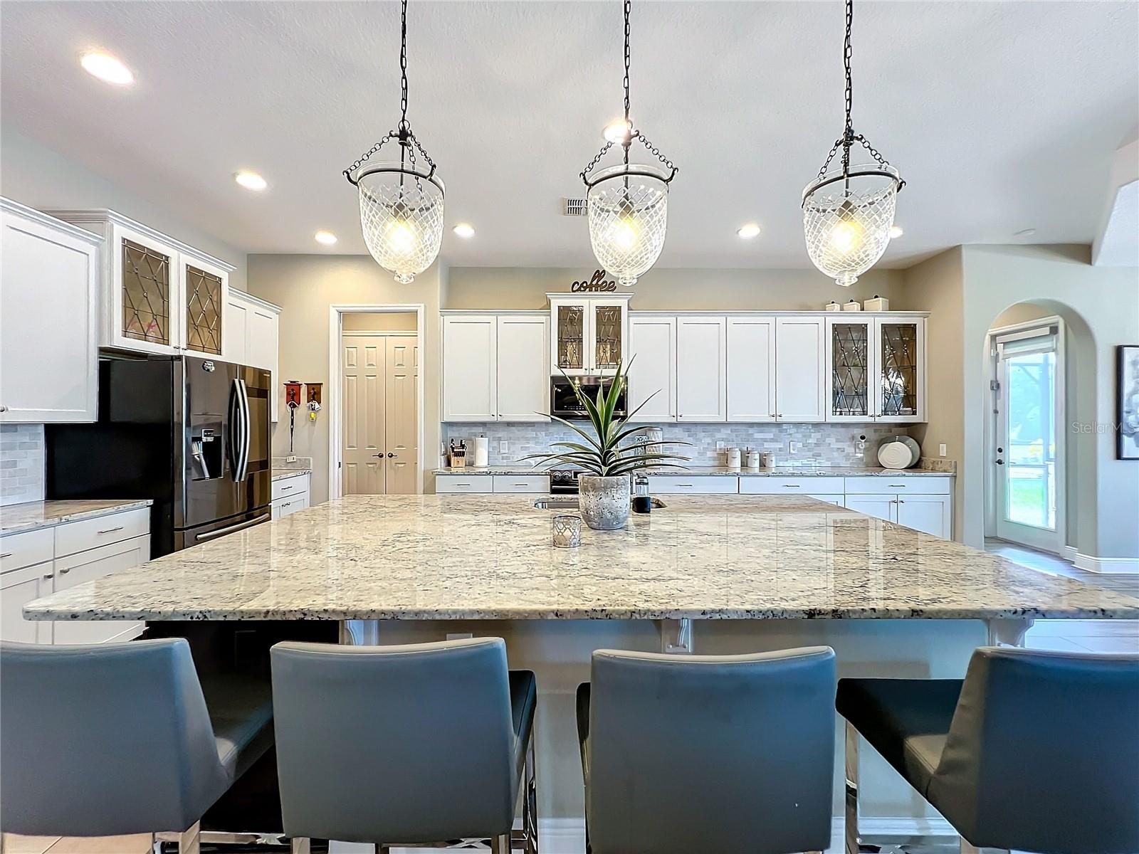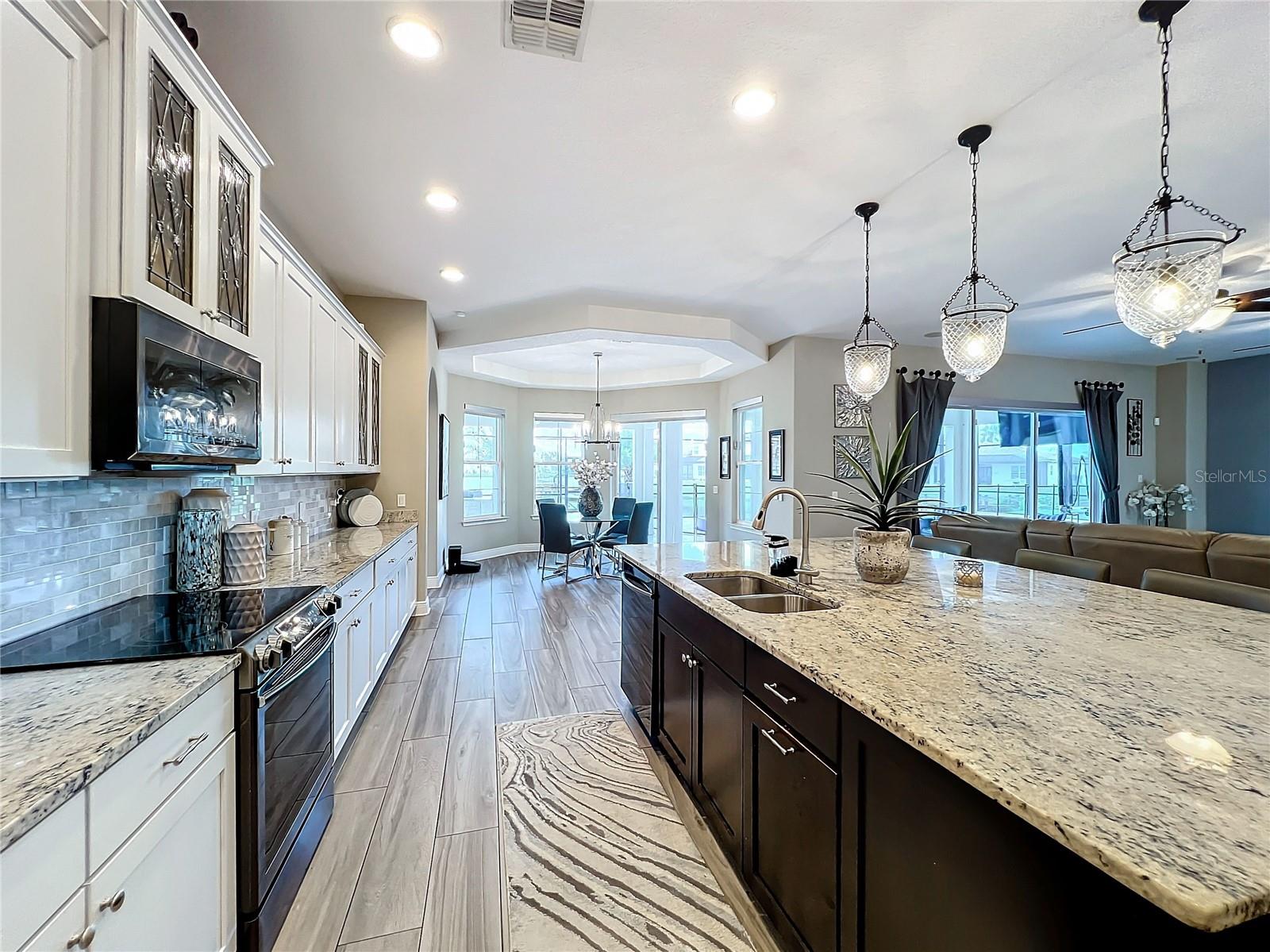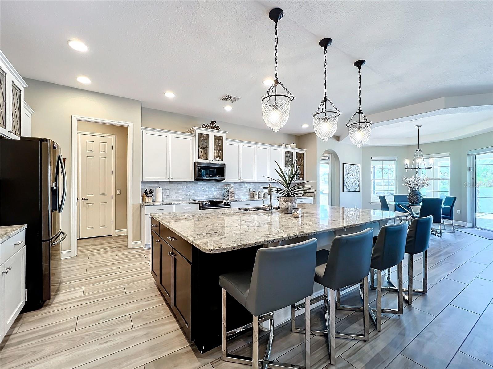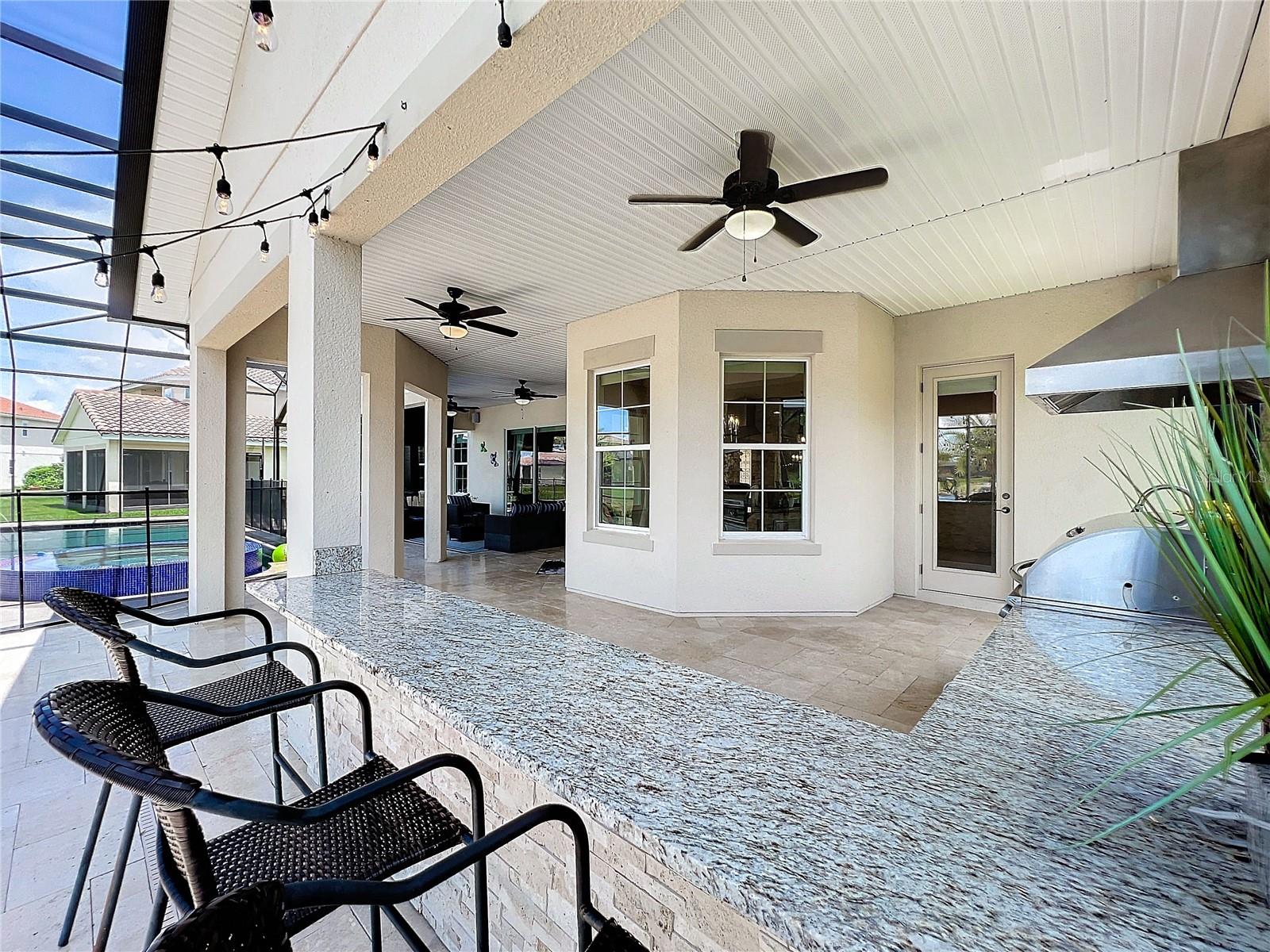 Come home to your exquisite Lakefront paradise that offers elegance and sophistication. This luxurious property is found in the renowned guard-gated community of Bellalago in Kissimmee, Florida. The home sits on a dead-end cul-de-sac street on a peninsula surrounded by beautiful water that leads directly into Lake Toho. The property is strategically designed to create an atmosphere that exudes splendor, caters to the family comfort, and hosts the most distinguished guests. As you step into the grand foyer, you'll be captivated by the spacious, two-story, soaring 20-foot ceilings and be immediately fascinated by the spaciousness and natural light that fills the open floor plan. The main living area is adorned with high-end finishes, including designer laminate flooring, a state-of-the-art surround sound system, lighting, and rounded walls, enhancing the overall luxury. A chef's dream kitchen has premium stainless-steel appliances, 42-inch cabinetry, exquisite granite countertops and backsplash, and spacious walking and butler pantries. The center island with a breakfast bar is a focal point and is perfect for casual dining or entertainment. The primary suite on the first floor boasts a magnificent en-suite bathroom and modern quartz countertops, as in the other 4 ½ bathrooms. The 9ft. 3-panel sliding glass doors open to a spacious 2-story screened patio, complete with a fully equipped summer kitchen, saltwater pool, and spa heated by solar and gas heating features. Enhance your waterfront living experience with direct access to Lake Taho from your backyard, allowing you to enjoy boating, fishing, and other water activities while utilizing the 11-seater Regency 230 DL3 Pontoon boat docked at your private boat dock (BOAT CONVEYED WITH THE PURCHASE). Relax and enjoy the expansive lake views, birds chirping, the starry nights, and the pool's synchronized light show. This is not just a home; it's a lifestyle! Conveniently located near schools, parks, golf courses, shopping centers, Celebration, Disney, Universal Studios, Orlando International Airport, and much more!
