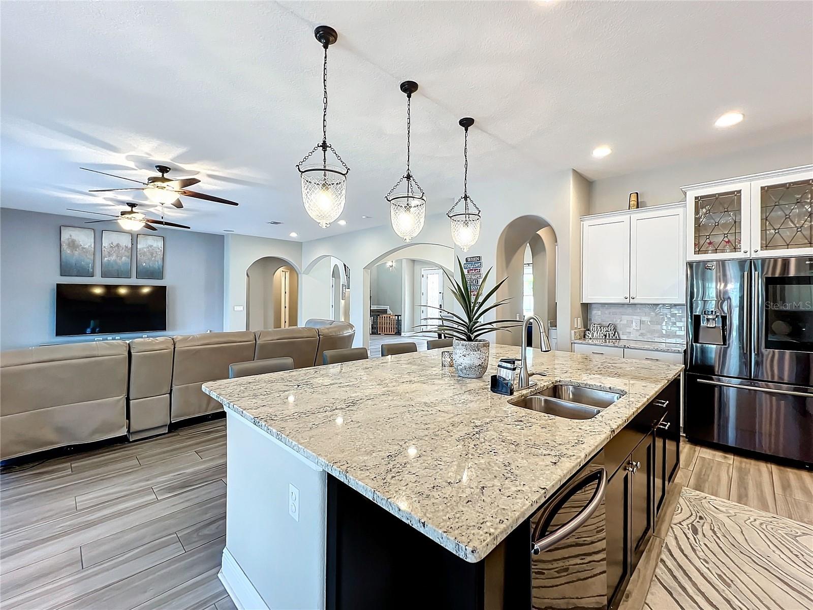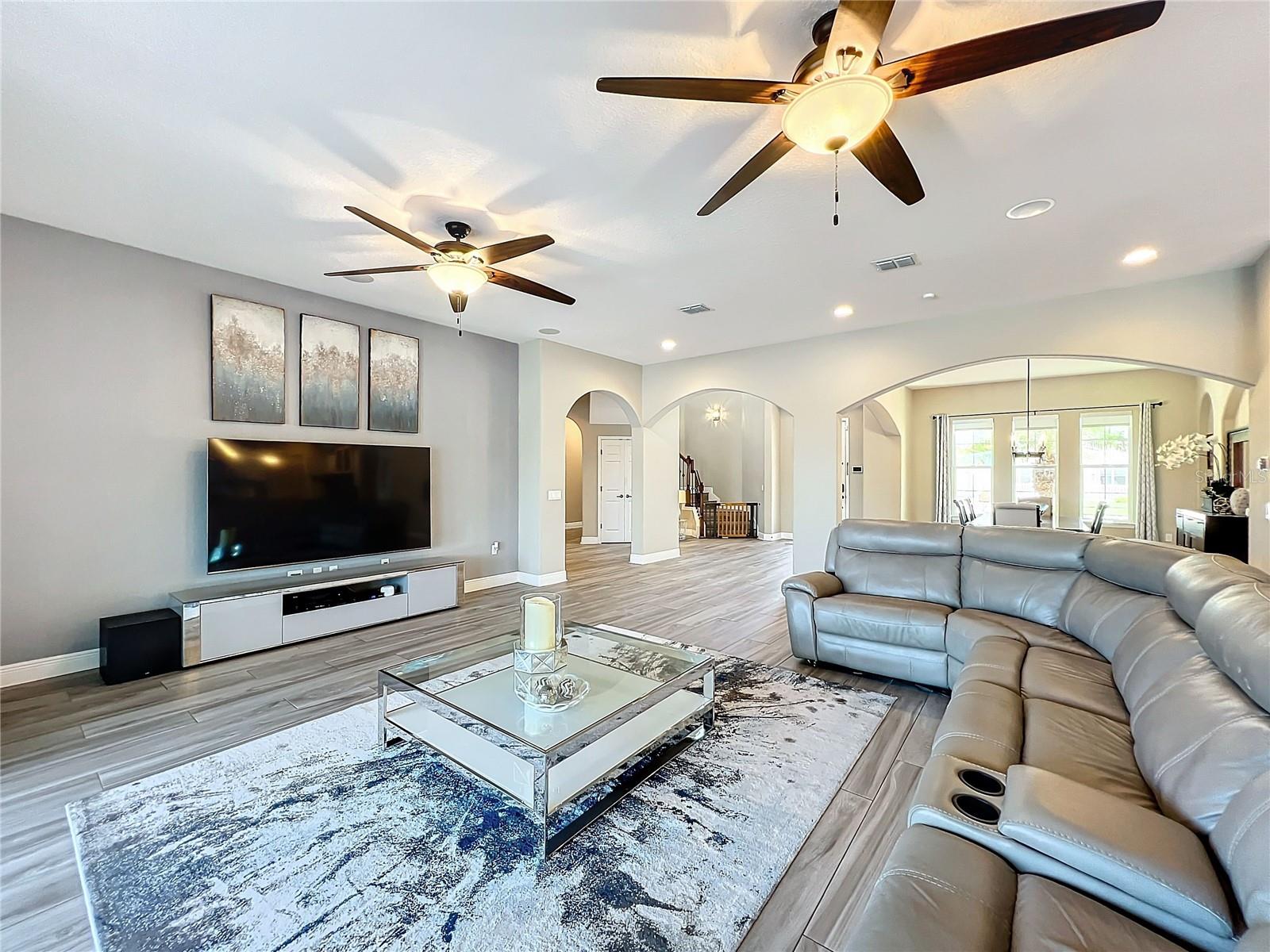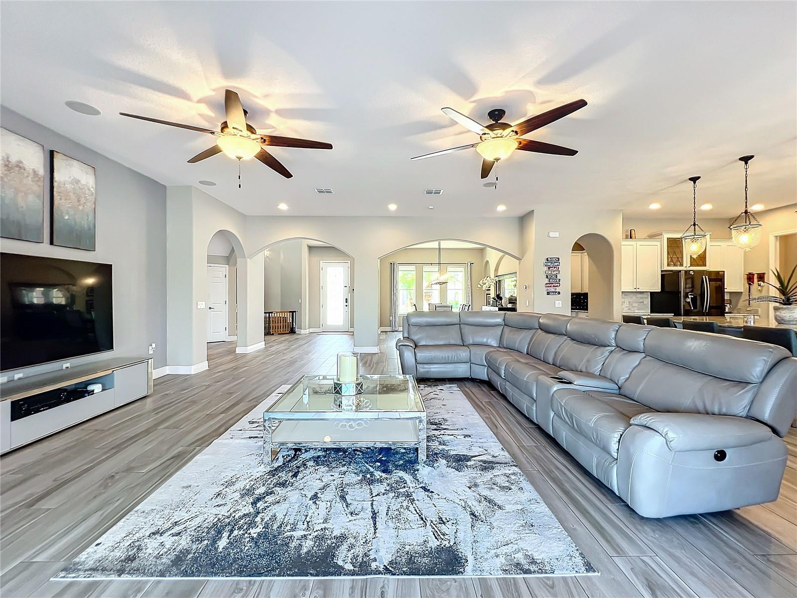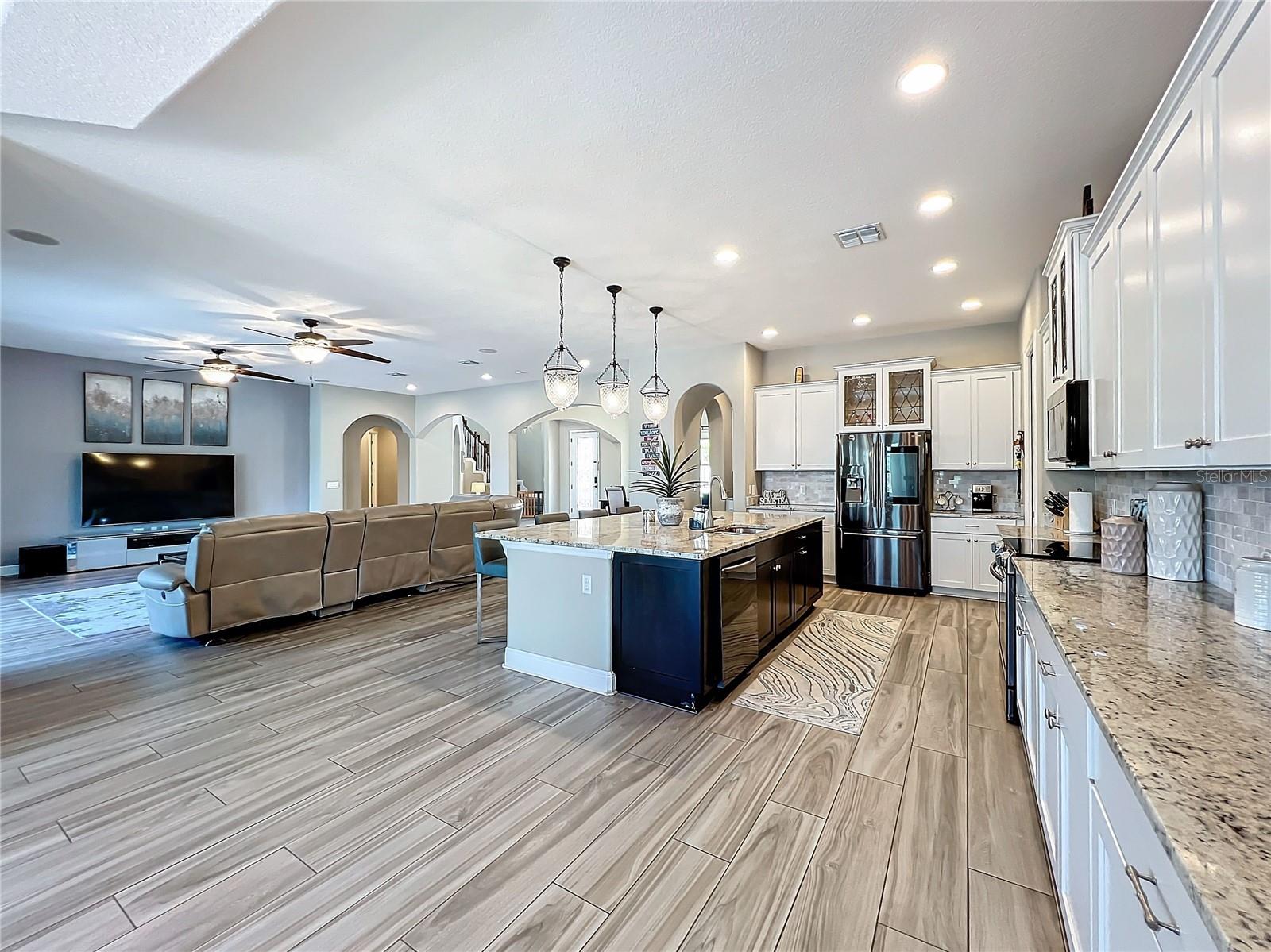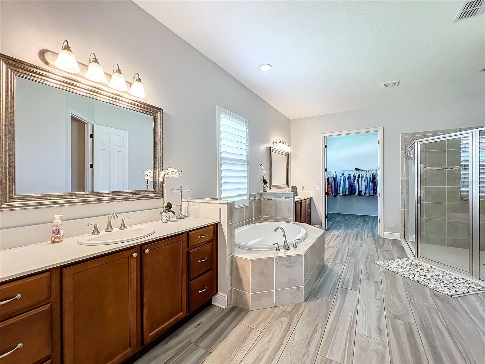 Come home to your exquisite Lakefront paradise that offers elegance and sophistication. This luxurious property is found in the renowned guard-gated community of Bellalago in Kissimmee, Florida. The home sits on a dead-end cul-de-sac street on a peninsula surrounded by beautiful water that leads directly into Lake Toho. The property is strategically designed to create an atmosphere that exudes splendor, caters to the family comfort, and hosts the most distinguished guests. As you step into the grand foyer, you'll be captivated by the spacious, two-story, soaring 20-foot ceilings and be immediately fascinated by the spaciousness and natural light that fills the open floor plan. The main living area is adorned with high-end finishes, including designer laminate flooring, a state-of-the-art surround sound system, lighting, and rounded walls, enhancing the overall luxury. A chef's dream kitchen has premium stainless-steel appliances, 42-inch cabinetry, exquisite granite countertops and backsplash, and spacious walking and butler pantries. The center island with a breakfast bar is a focal point and is perfect for casual dining or entertainment. The primary suite on the first floor boasts a magnificent en-suite bathroom and modern quartz countertops, as in the other 4 ½ bathrooms. The 9ft. 3-panel sliding glass doors open to a spacious 2-story screened patio, complete with a fully equipped summer kitchen, saltwater pool, and spa heated by solar and gas heating features. Enhance your waterfront living experience with direct access to Lake Taho from your backyard, allowing you to enjoy boating, fishing, and other water activities while utilizing the 11-seater Regency 230 DL3 Pontoon boat docked at your private boat dock (BOAT CONVEYED WITH THE PURCHASE). Relax and enjoy the expansive lake views, birds chirping, the starry nights, and the pool's synchronized light show. This is not just a home; it's a lifestyle! Conveniently located near schools, parks, golf courses, shopping centers, Celebration, Disney, Universal Studios, Orlando International Airport, and much more!