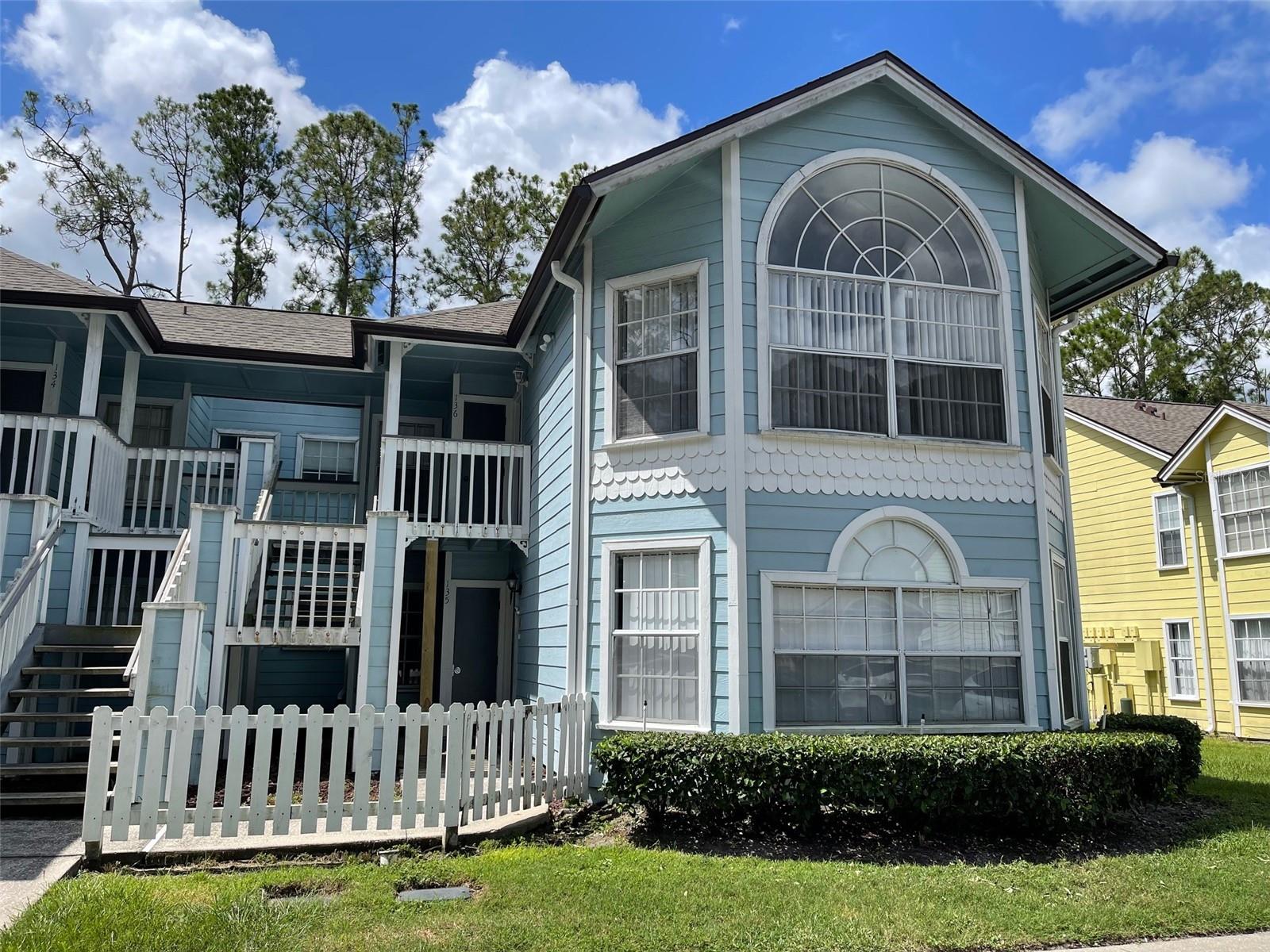 LOCATION! LOCATION! LOCATION! Updated Disney-area condo that backs up to small wooded area! Spacious second floor with large windows Laminate floor throughout. Generous living and dining areas. Large master bedroom with patio and privacy view. Walk to amenities which include clubhouse w/fitness & sauna, community pool and spa, tennis, volleyball, shuffleboard courts and playground. Just minutes from theme parks, shopping, restaurants, golf courses ….great opportunity for investment, vacation home or residence or airbnb short rentals with high return…..