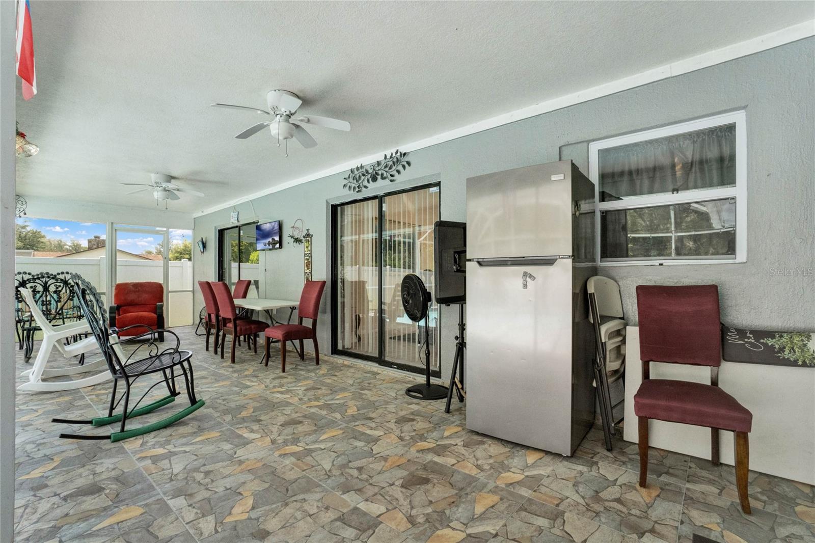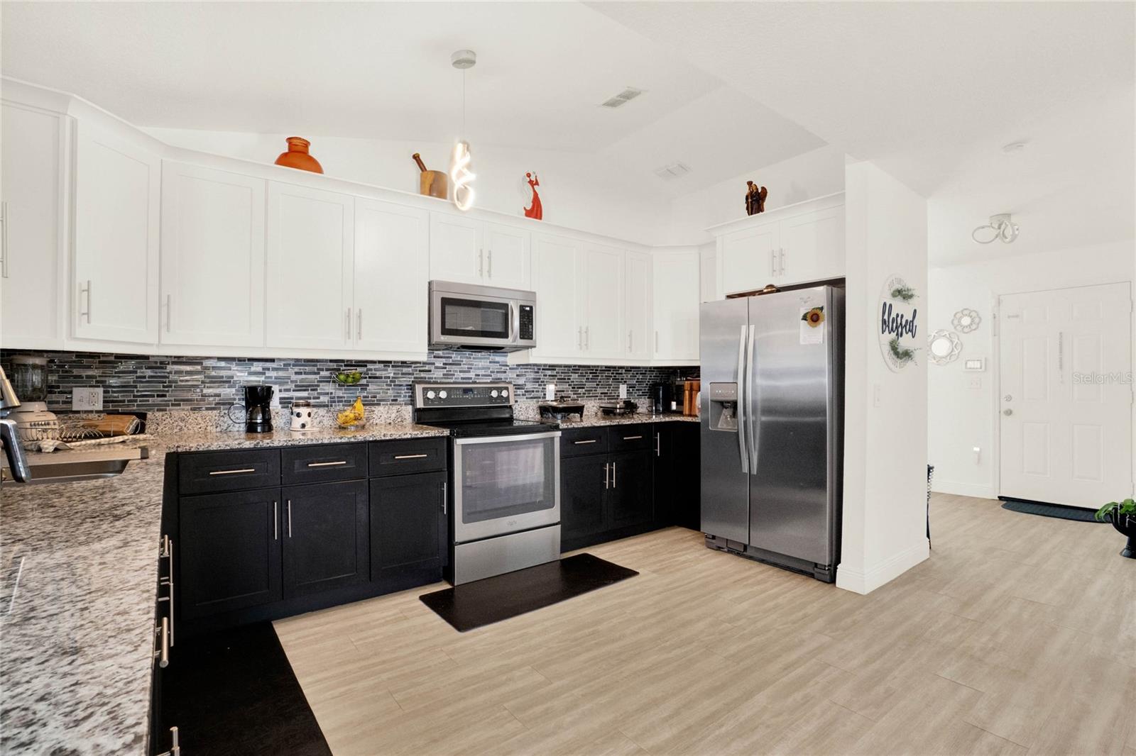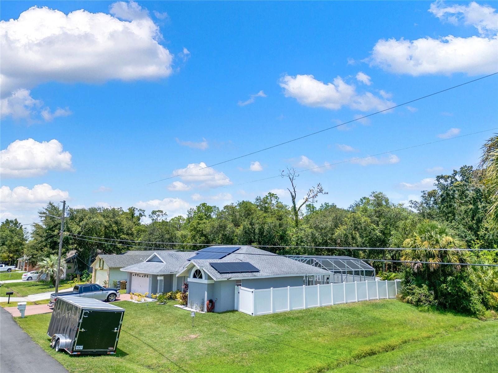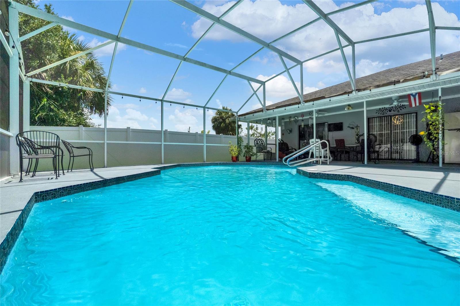 Enjoy the Florida lifestyle in this charming beautiful 3-bedroon, 2 bath home with pool, new terrazzo, screened enclosure and no rear neighbors that has so much to offer! As you drive up to the home you immediately will be impressed with the curb appeal, beautiful landscaping, and new exterior paint. Inside the home you will notice the new laminate flooring, fresh interior paint, high ceilings, and split layout concept offering plenty of open space to entertain family and friends or just to relax. The completely remodeled kitchen overlooks the spacious family room and has new cabinets, new granite countertops, and closed pantry. The bathrooms have been tastefully updated, AC replaced in 2020, hot water heater tank replaced 2022, solar panels were installed in 2020 and are paid for. HOA includes internet and cable and is still at a very low cost! This fantastic home is located in a highly sought after community in a great location with the hospital close by and just minutes to shopping, dining, and entertainment. With Poinciana Parkway just a few miles away you are just a short drive to Disney and all that Central Florida has to offer. Schedule a private tour today and don't miss the opportunity to own this fantastic property.