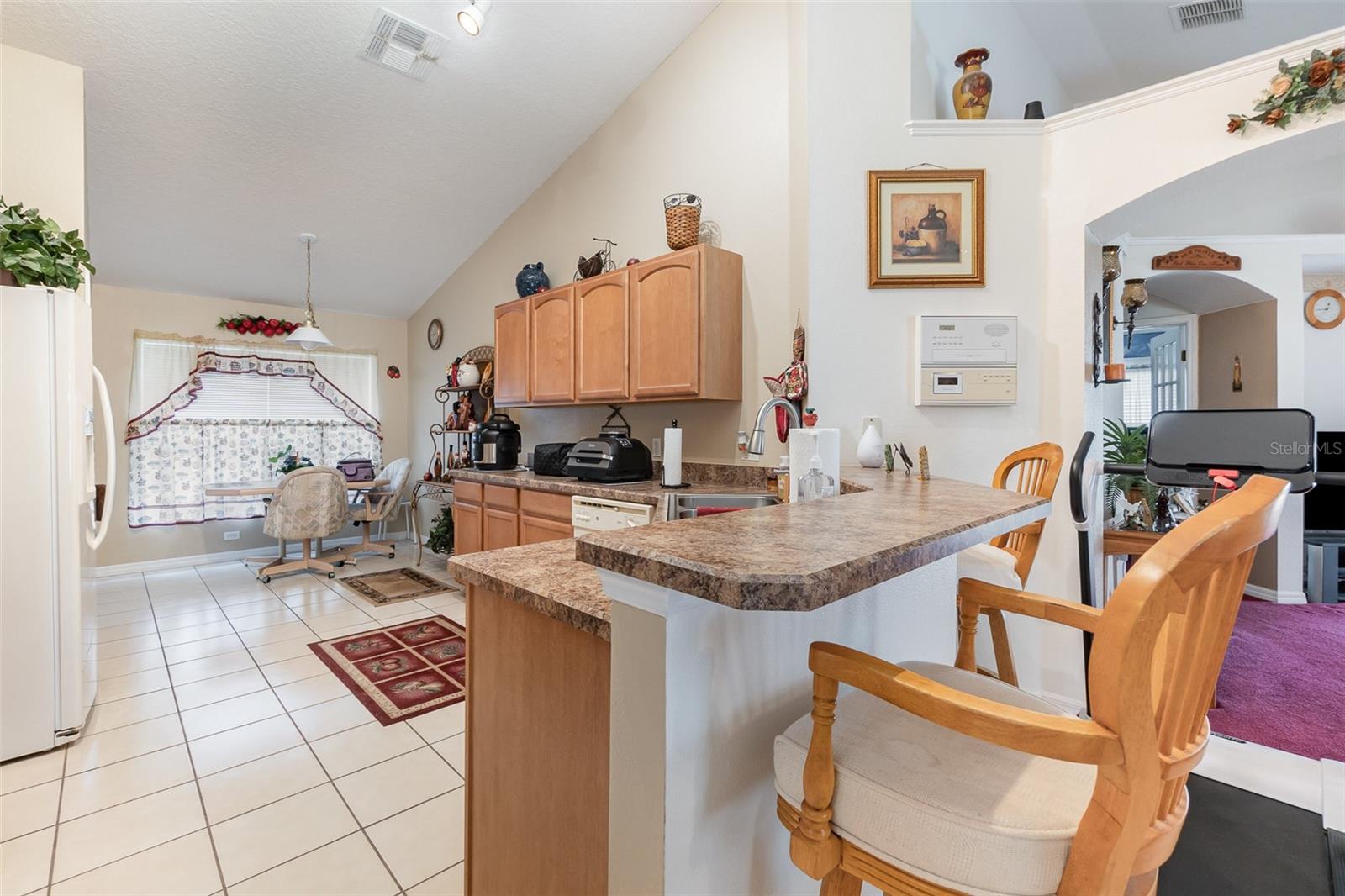 Welcome to this immaculate home, located in the golf gated community of Remington. This move-in ready home features 4 bedrms., 2 baths, 2 car garage. Enjoy the open concept living space with vaulted ceilings, ideal to entertain family and friends. The fully equipped kitchen features a breakfast bar and granite countertops. You can access the back yard from the sliding glass doors in the living room. The 4th bedroom was converted to an office with sliding glass doors - perfect if you work from home. HVAC was installed in 2017, roof in 2021, and water heater in 2023. You will be just steps from Prairie Lake Park and you can drive just minutes to shopping, dining, medical/hospital, and FL Turnpike offering easy access to anywhere is Central Florida and beyond. Don't miss this one, see it today!