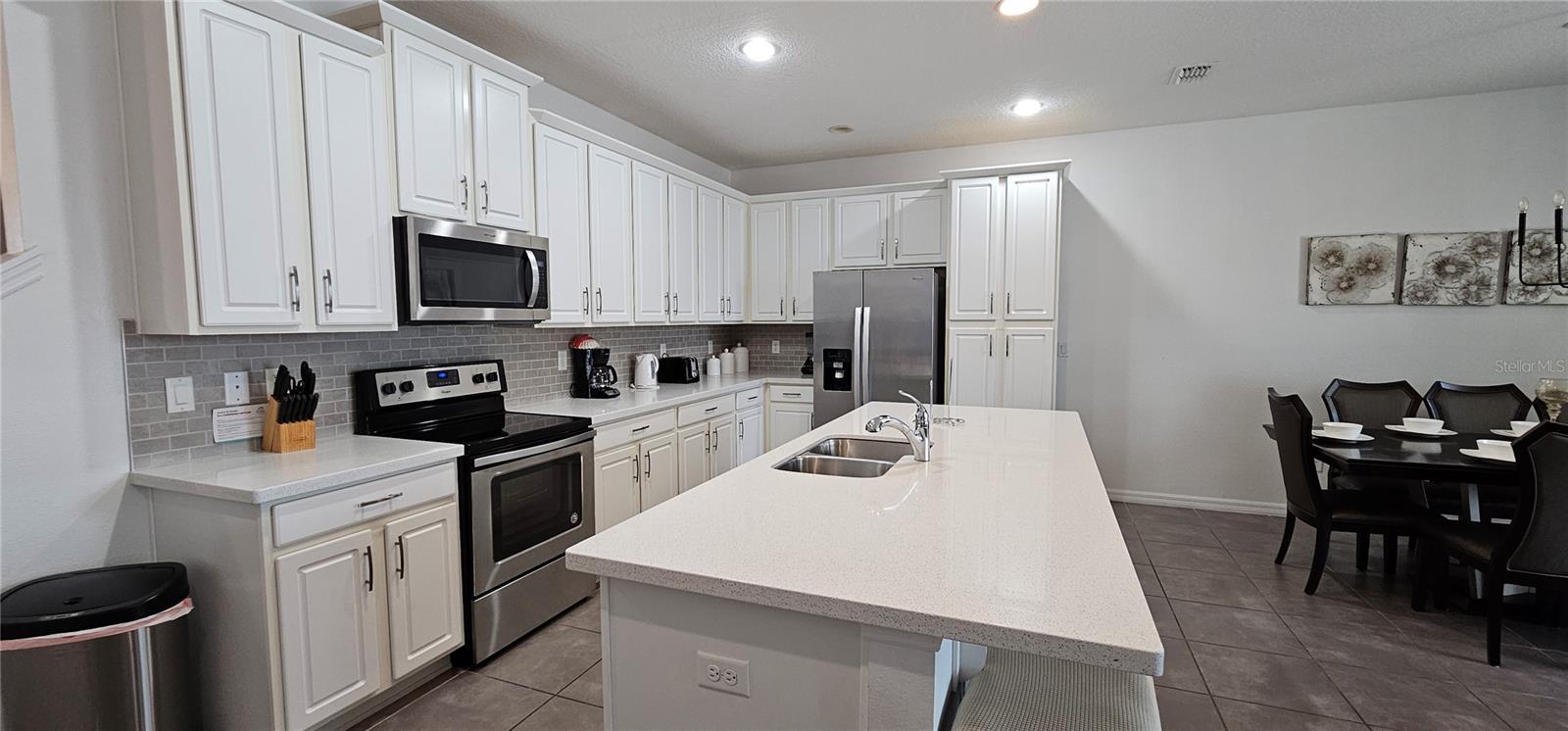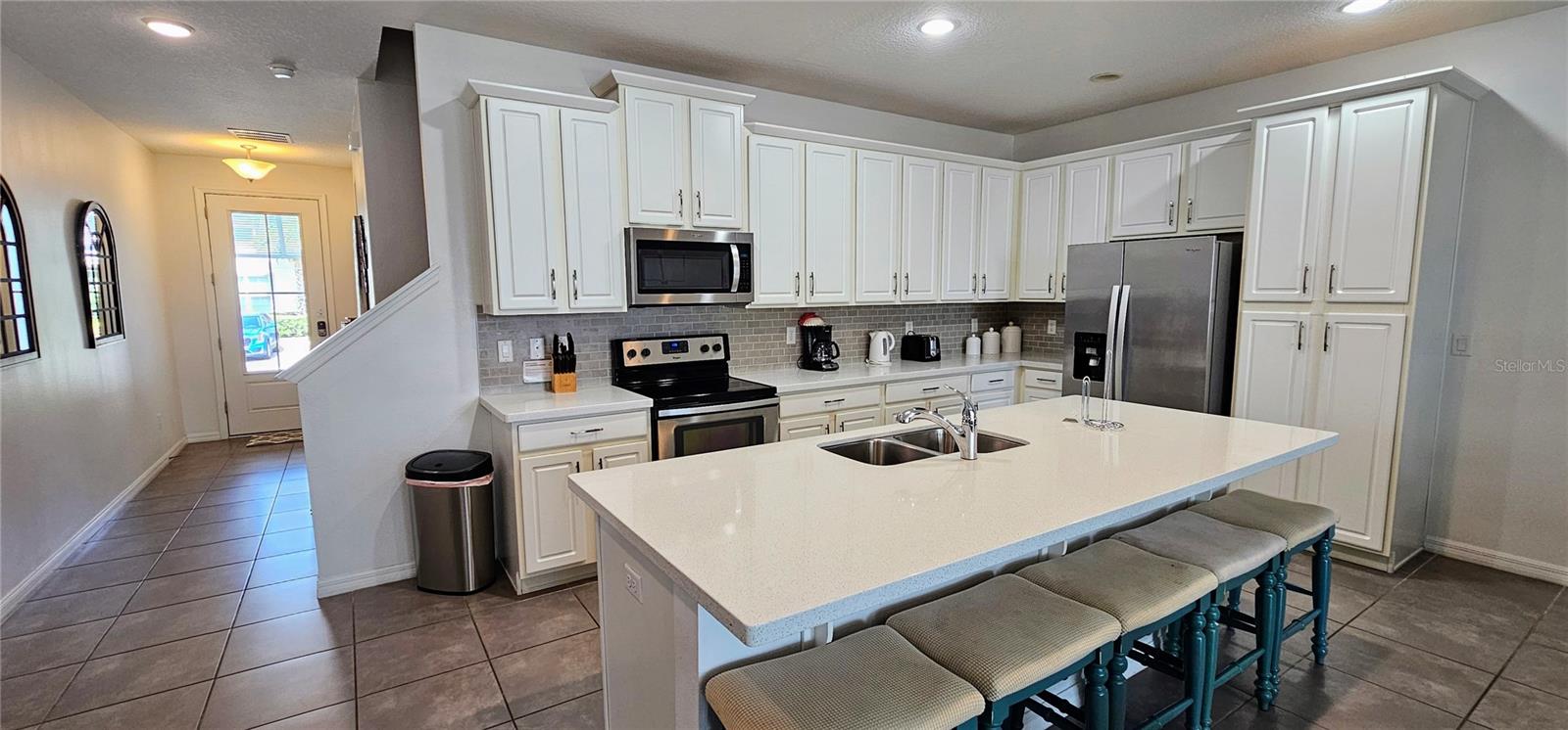 Welcome to your dream vacation home in the heart of Solara Resort! This stunning 5-bedroom, 4.5-bathroom townhouse offers 2,294 sqft of contemporary living space, perfect for short-term rentals. The open-plan living room, dining area, and kitchen overlook a private pool and outdoor living space, featuring granite countertops, stainless steel appliances, and beautiful modern furnishings. High ceilings and 8ft tall doors add to the home's airy and upscale feel. With a primary bedroom on both levels, plus three additional bedrooms and a loft area upstairs, this home ensures comfort and privacy for all guests. Located just one short block from the clubhouse without crossing any streets, it provides easy access to Solara Resort's exceptional amenities, including a Bar & Grill Restaurant, Flow Rider Surfer & Wave Simulator, pools, splash pads, water slide, fitness room, teen hangout, soccer field, playground, ice cream parlor, workstations, basketball and volleyball areas, and more. Just 20 minutes from Disney World, this townhouse is an ideal investment opportunity in a highly sought-after location known for high occupancy throughout the year. Don't miss the chance to own a piece of paradise in Solara Resort. Contact us today to schedule a viewing!