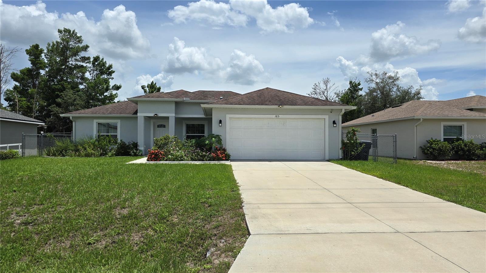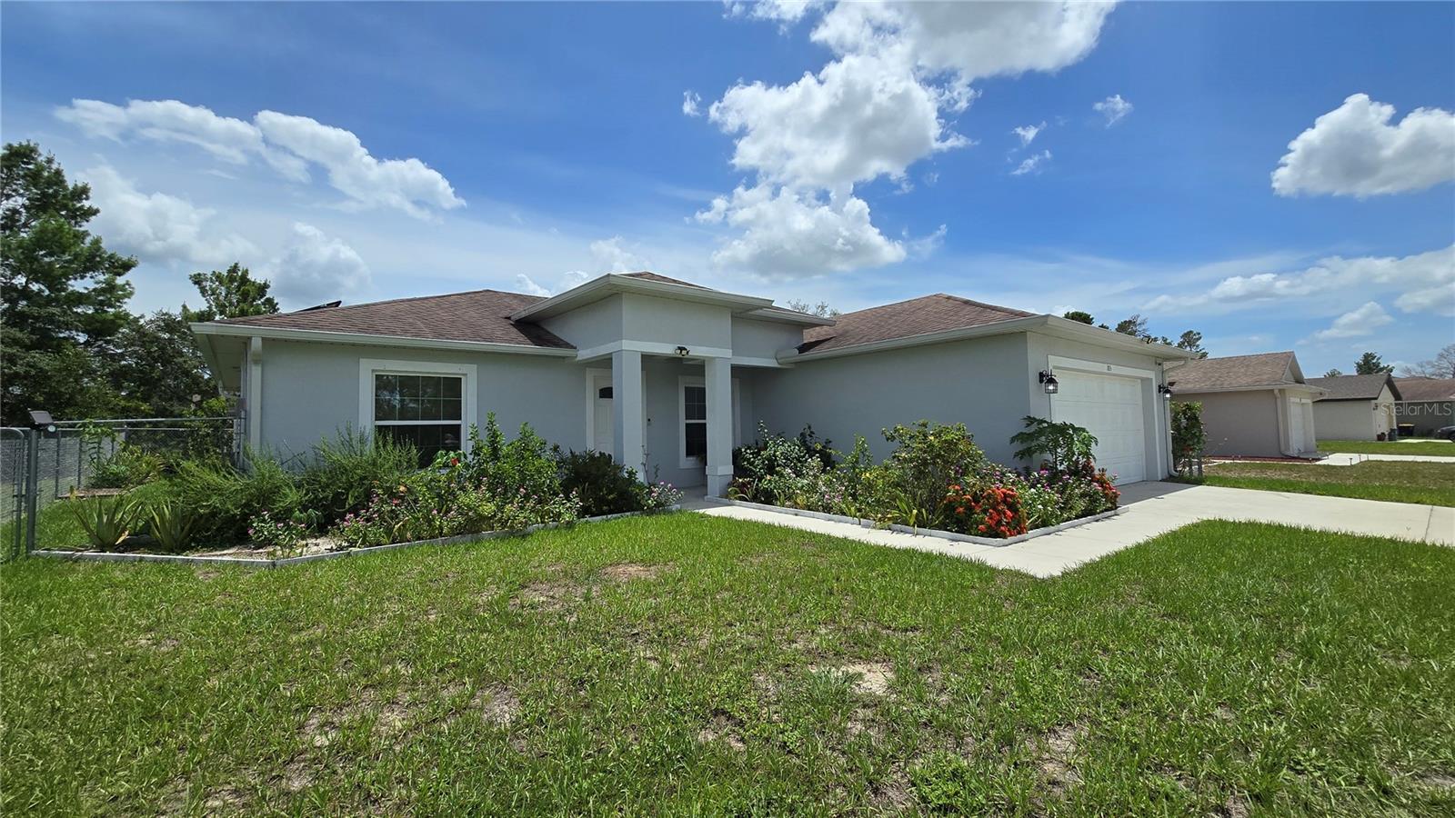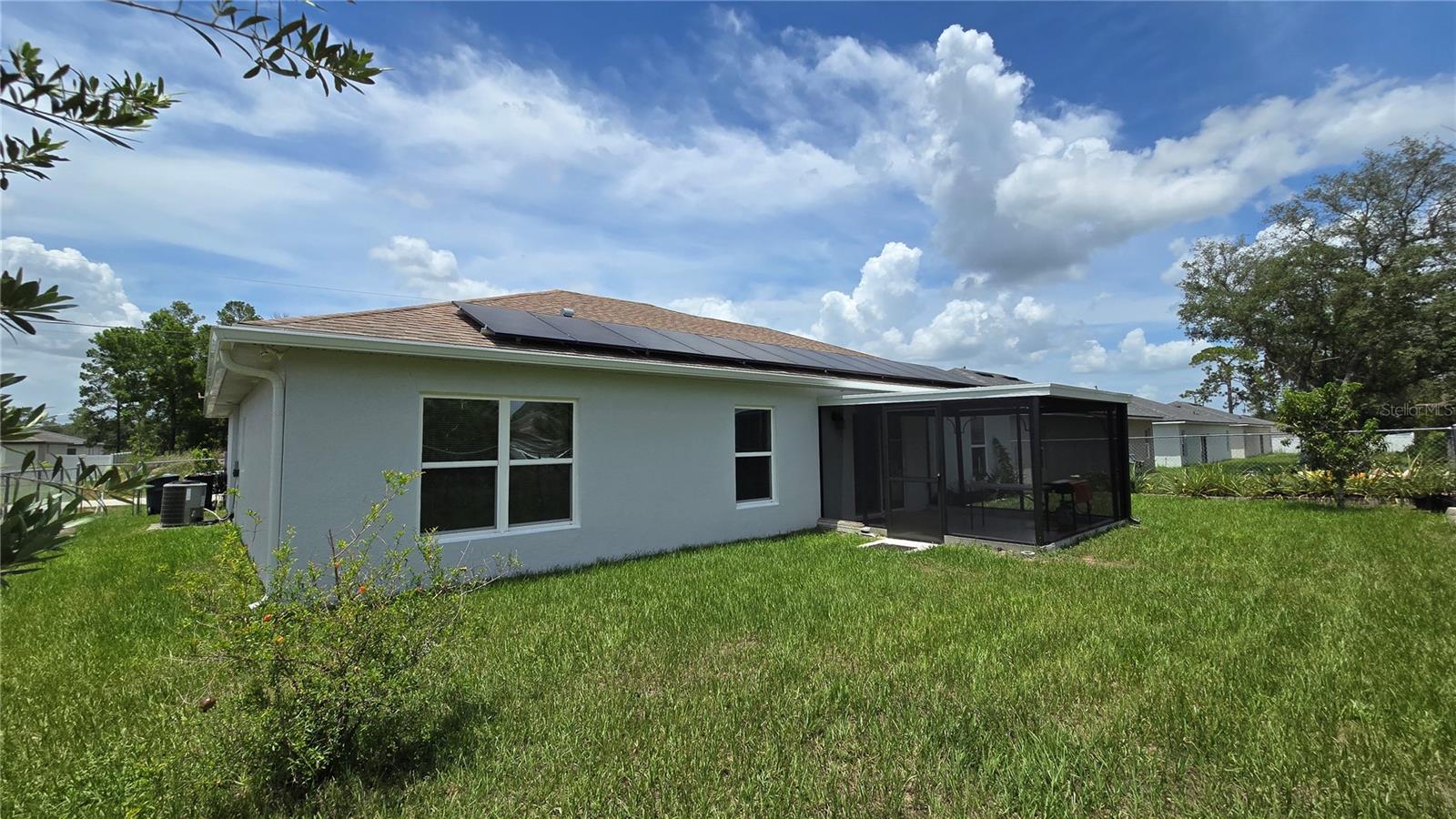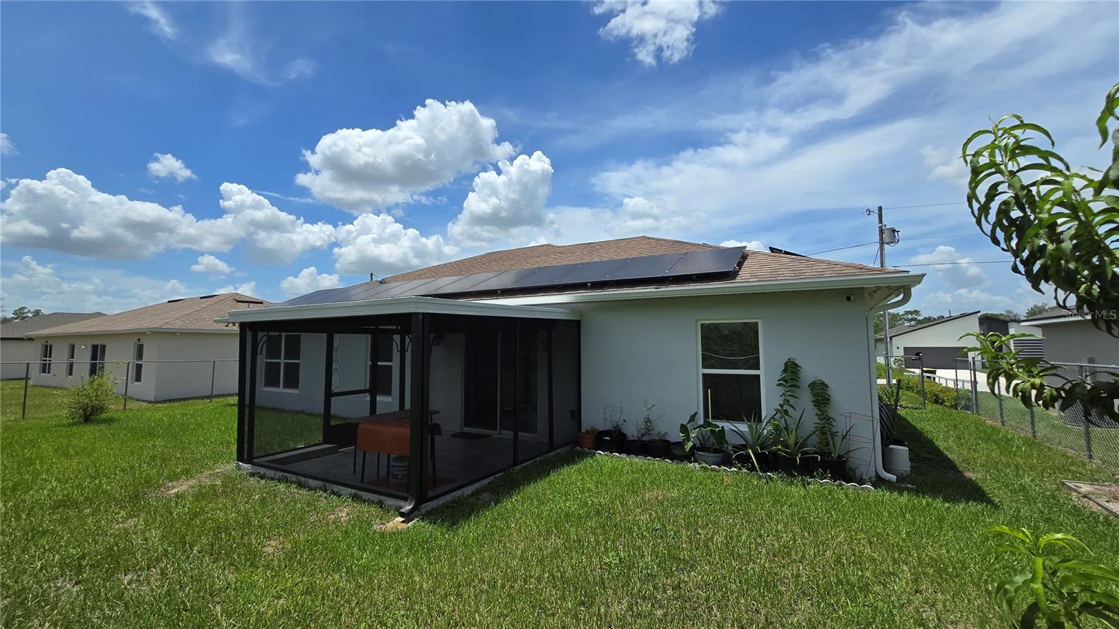 Welcome home to this immaculate, beautiful, and upgraded residential property boasting solar panels, a huge granite kitchen island, and dark wood cabinets. As you walk up to this home you are greeted with gorgeous flowers and impressive greenery that lead you to the covered front porch and through your front door into the foyer and dining room. As you walk inside, you quickly feel comfortable in this home's spacious and inviting open concept layout overlooking the conservation in the backyard. Continue the tour through the arched hallway to the large owner's suite, featuring elegant tray ceilings, dual vanities, his and her walk-in closets, and a separate standing shower and garden tub. Additional beauty lies in the vaulted ceilings, ceramic tile flooring throughout entire house, a large family room, and a grandiose kitchen great for cooking and entertaining. The yard is completely fenced and has mature landscaping including tons of pineapple trees, an olive tree, peach tree, and other herbal plants. Great location in Poinciana near schools, medical centers, hospital, shopping, plus easy access to Haines City and Davenport. With the solar powered low electric cost of only about $40 per month and being constructed only 7 years ago, this home is sure to be energy efficient and low maintenance for many years, saving the new homeowner a lot of money! The rear cozy screened in porch, rain gutters, sprinkler system, and long driveway make this home complete and move in ready! Additionally, the HOA is low and has cable and internet included, plus association amenities such as beautiful pools, tennis courts, clubhouse and so much more! Great primary home or rental investment! Ask about special financing opportunities available. Call to inquire and see this gem for yourself today! “This home can be purchased with no money down”.