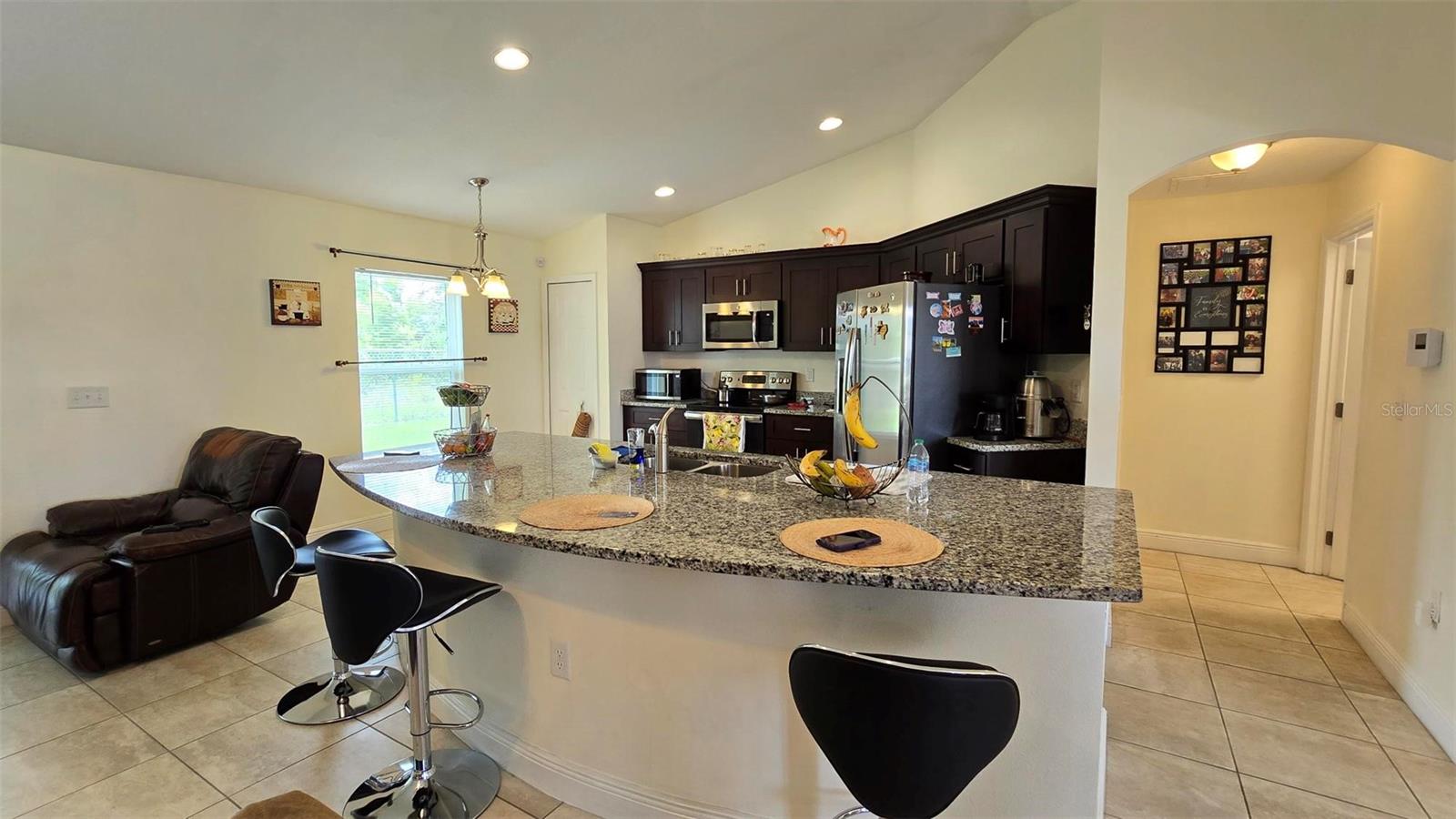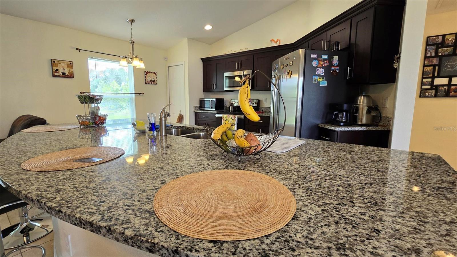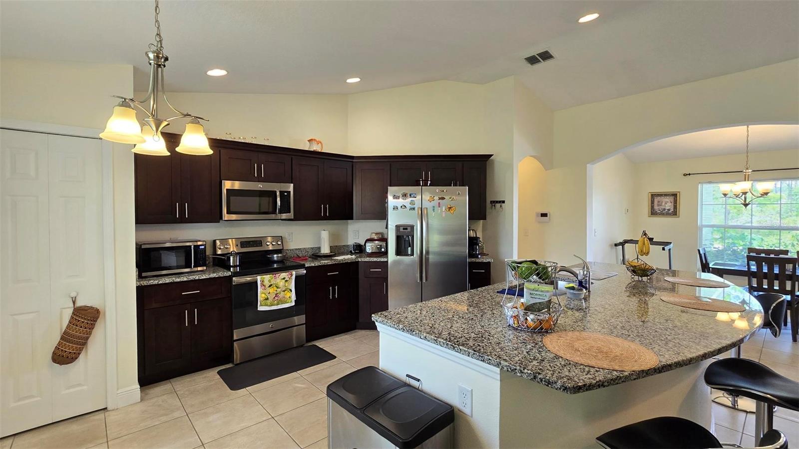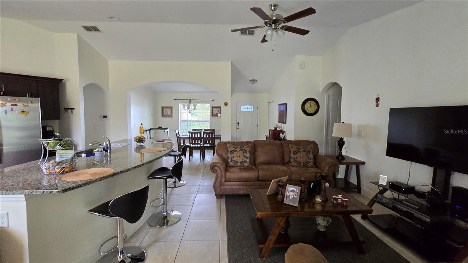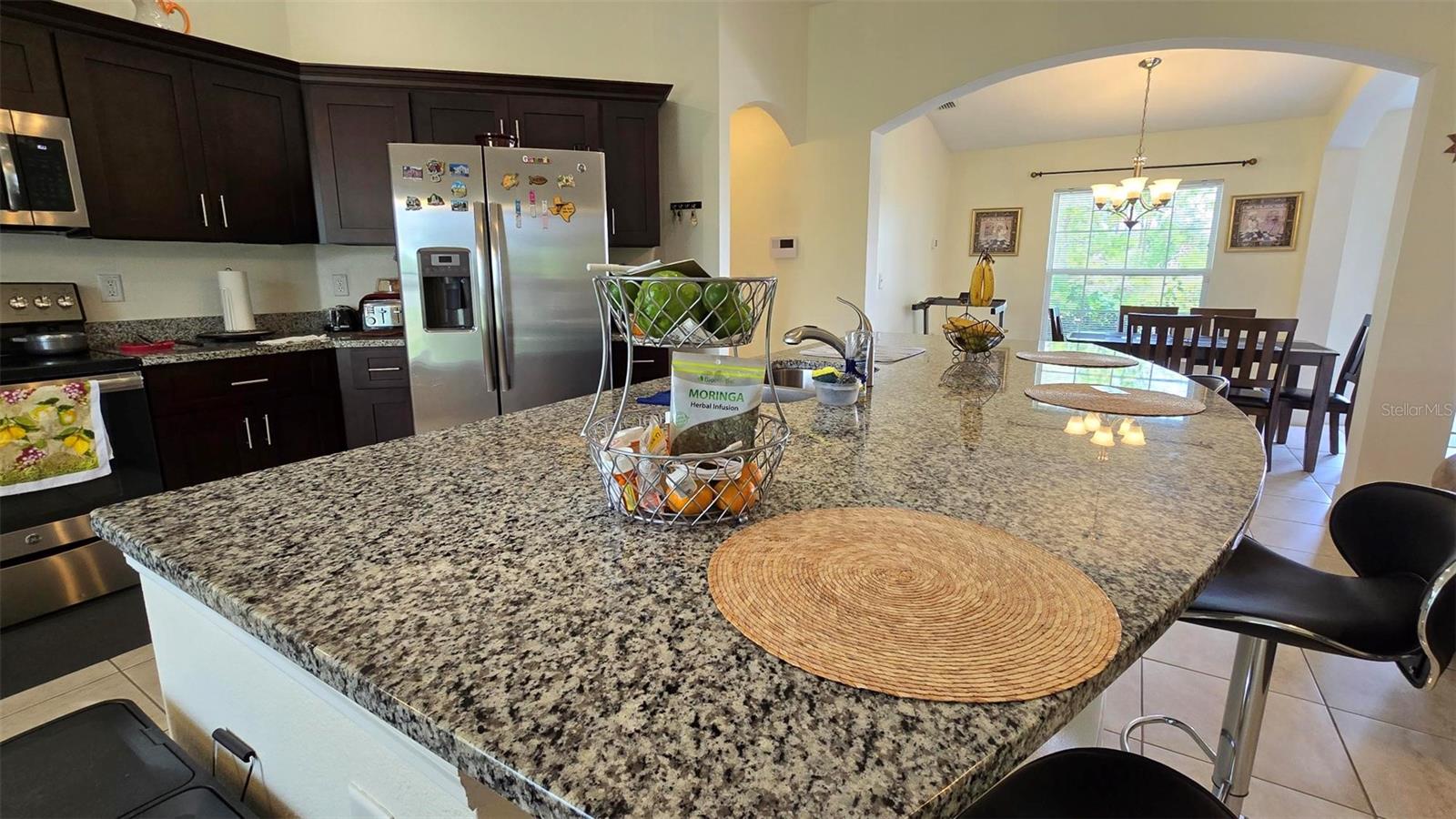 Welcome home to this immaculate, beautiful, and upgraded residential property boasting solar panels, a huge granite kitchen island, and dark wood cabinets. As you walk up to this home you are greeted with gorgeous flowers and impressive greenery that lead you to the covered front porch and through your front door into the foyer and dining room. As you walk inside, you quickly feel comfortable in this home's spacious and inviting open concept layout overlooking the conservation in the backyard. Continue the tour through the arched hallway to the large owner's suite, featuring elegant tray ceilings, dual vanities, his and her walk-in closets, and a separate standing shower and garden tub. Additional beauty lies in the vaulted ceilings, ceramic tile flooring throughout entire house, a large family room, and a grandiose kitchen great for cooking and entertaining. The yard is completely fenced and has mature landscaping including tons of pineapple trees, an olive tree, peach tree, and other herbal plants. Great location in Poinciana near schools, medical centers, hospital, shopping, plus easy access to Haines City and Davenport. With the solar powered low electric cost of only about $40 per month and being constructed only 7 years ago, this home is sure to be energy efficient and low maintenance for many years, saving the new homeowner a lot of money! The rear cozy screened in porch, rain gutters, sprinkler system, and long driveway make this home complete and move in ready! Additionally, the HOA is low and has cable and internet included, plus association amenities such as beautiful pools, tennis courts, clubhouse and so much more! Great primary home or rental investment! Ask about special financing opportunities available. Call to inquire and see this gem for yourself today! “This home can be purchased with no money down”.
