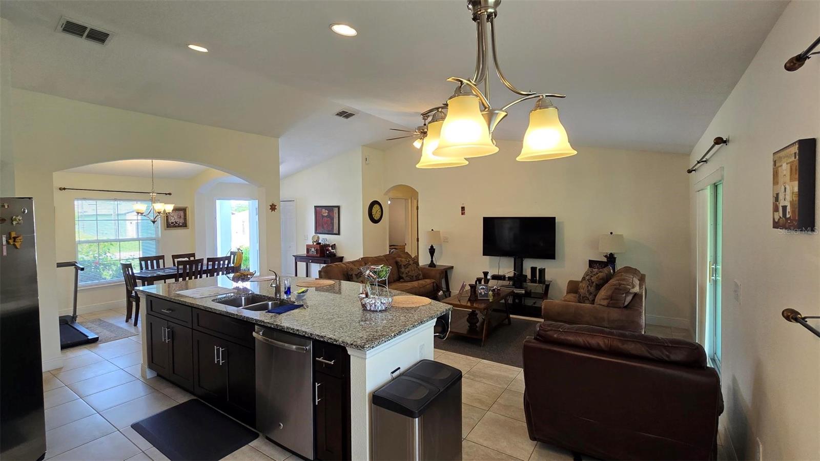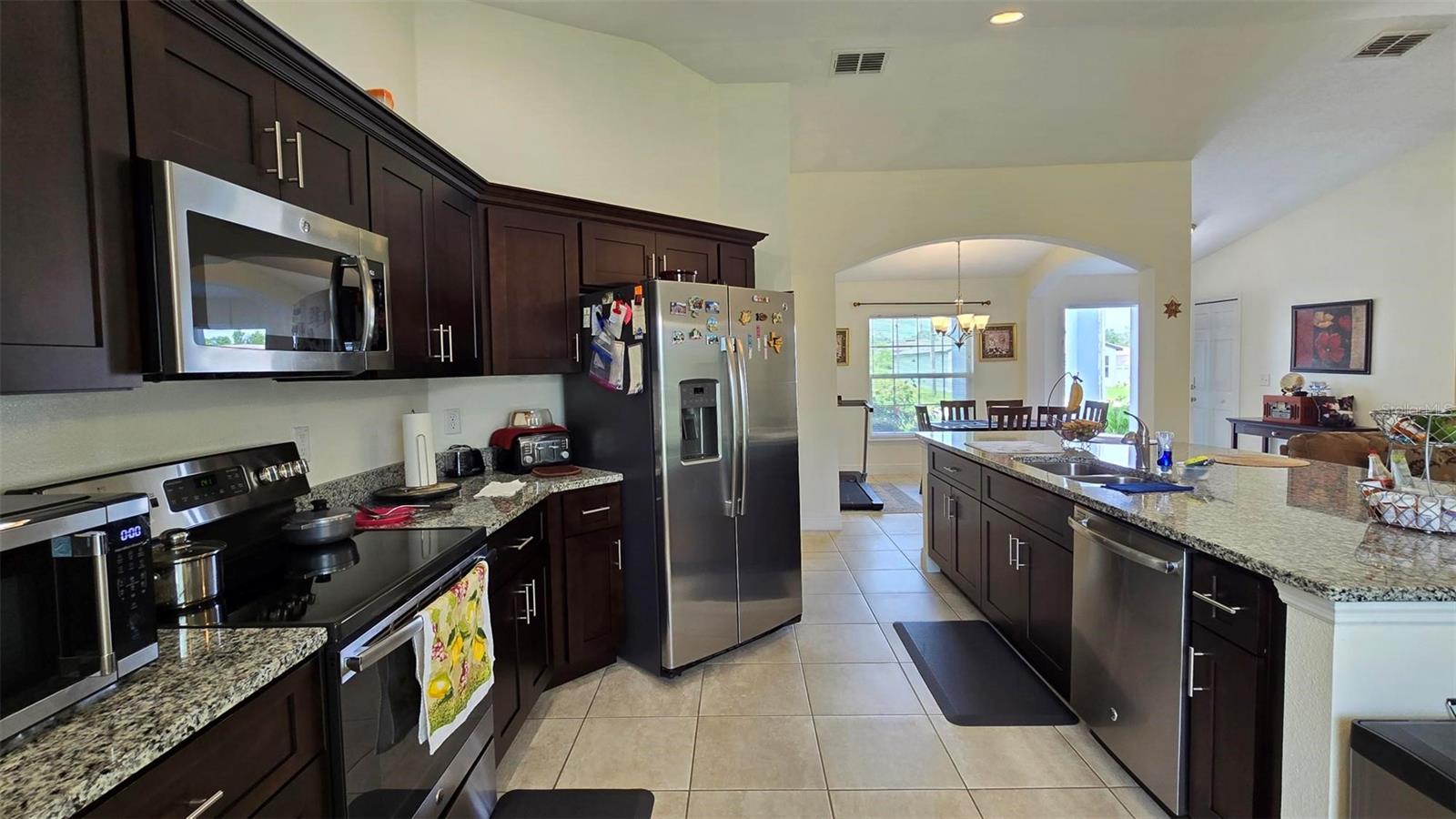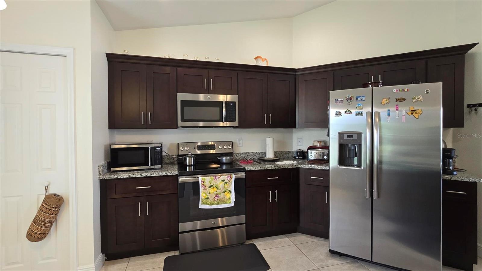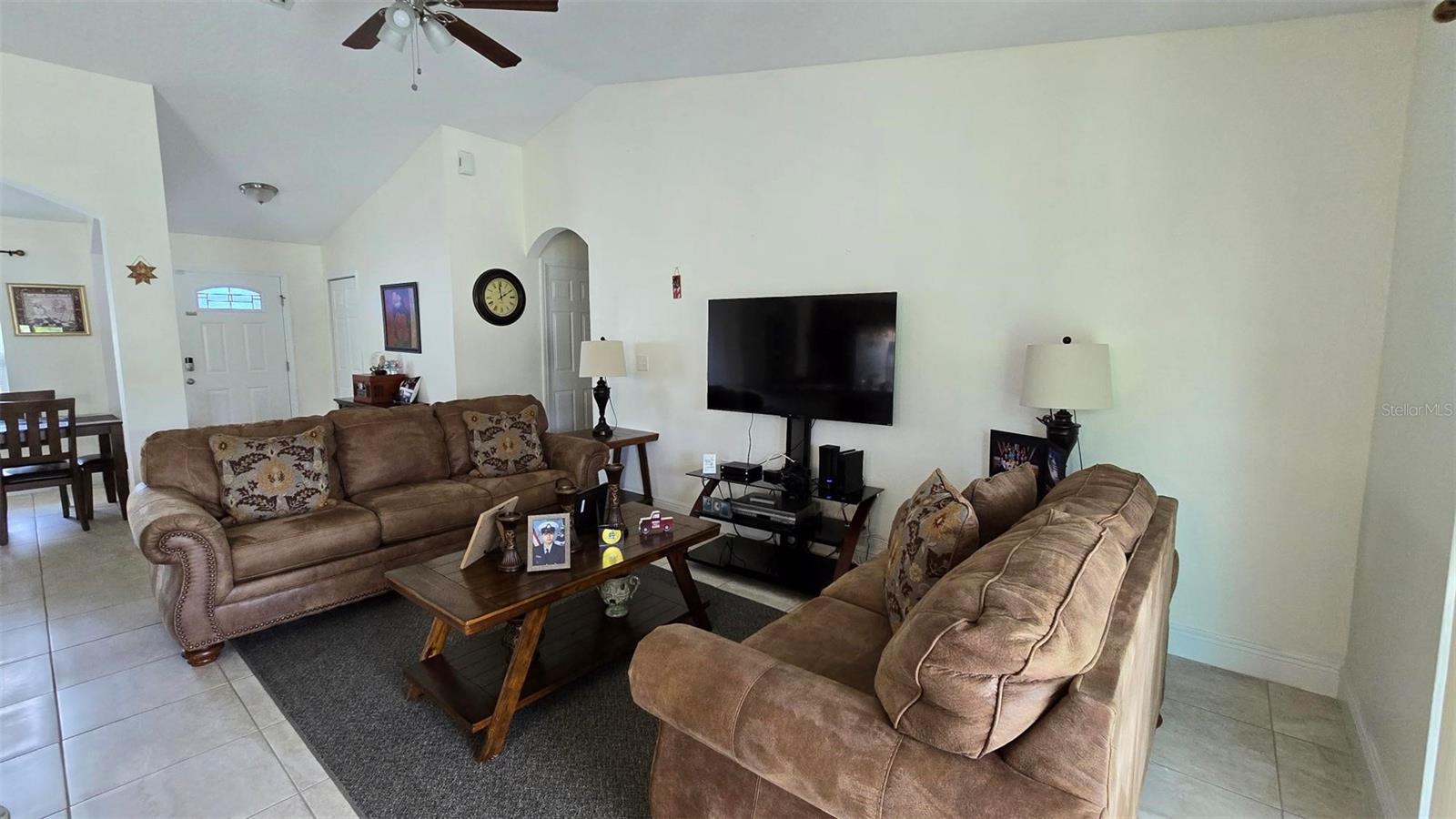 Welcome home to this immaculate, beautiful, and upgraded residential property boasting solar panels, a huge granite kitchen island, and dark wood cabinets. As you walk up to this home you are greeted with gorgeous flowers and impressive greenery that lead you to the covered front porch and through your front door into the foyer and dining room. As you walk inside, you quickly feel comfortable in this home's spacious and inviting open concept layout overlooking the conservation in the backyard. Continue the tour through the arched hallway to the large owner's suite, featuring elegant tray ceilings, dual vanities, his and her walk-in closets, and a separate standing shower and garden tub. Additional beauty lies in the vaulted ceilings, ceramic tile flooring throughout entire house, a large family room, and a grandiose kitchen great for cooking and entertaining. The yard is completely fenced and has mature landscaping including tons of pineapple trees, an olive tree, peach tree, and other herbal plants. Great location in Poinciana near schools, medical centers, hospital, shopping, plus easy access to Haines City and Davenport. With the solar powered low electric cost of only about $40 per month and being constructed only 7 years ago, this home is sure to be energy efficient and low maintenance for many years, saving the new homeowner a lot of money! The rear cozy screened in porch, rain gutters, sprinkler system, and long driveway make this home complete and move in ready! Additionally, the HOA is low and has cable and internet included, plus association amenities such as beautiful pools, tennis courts, clubhouse and so much more! Great primary home or rental investment! Ask about special financing opportunities available. Call to inquire and see this gem for yourself today! “This home can be purchased with no money down”.