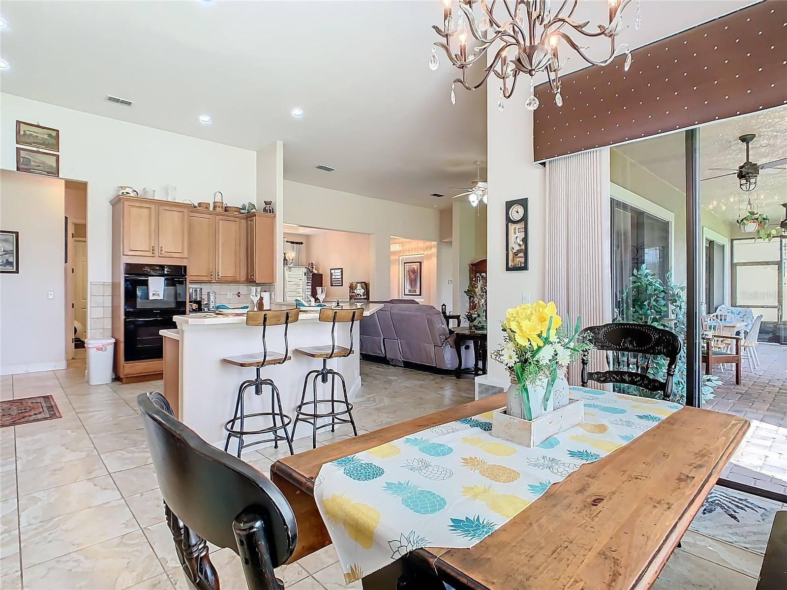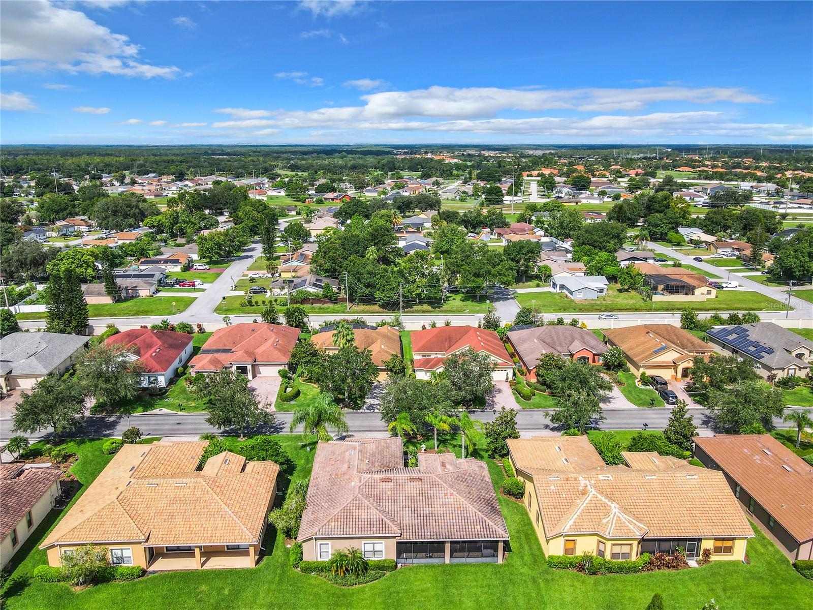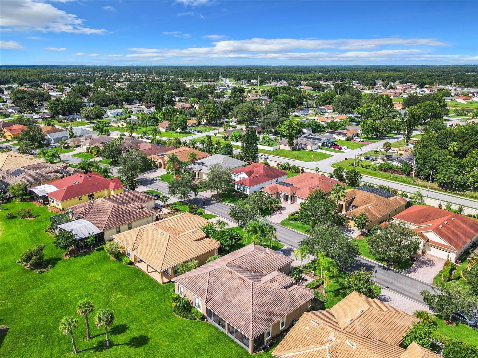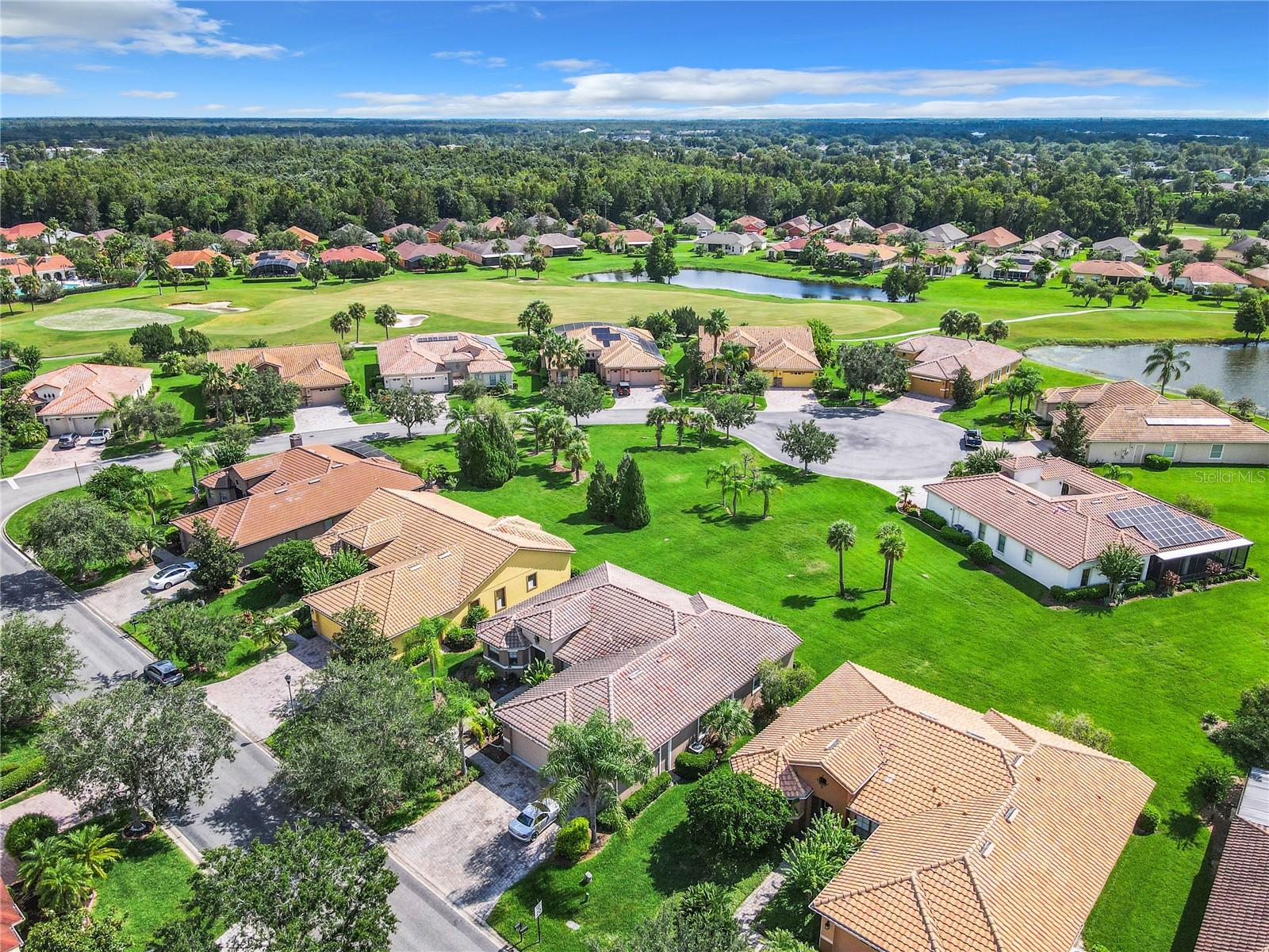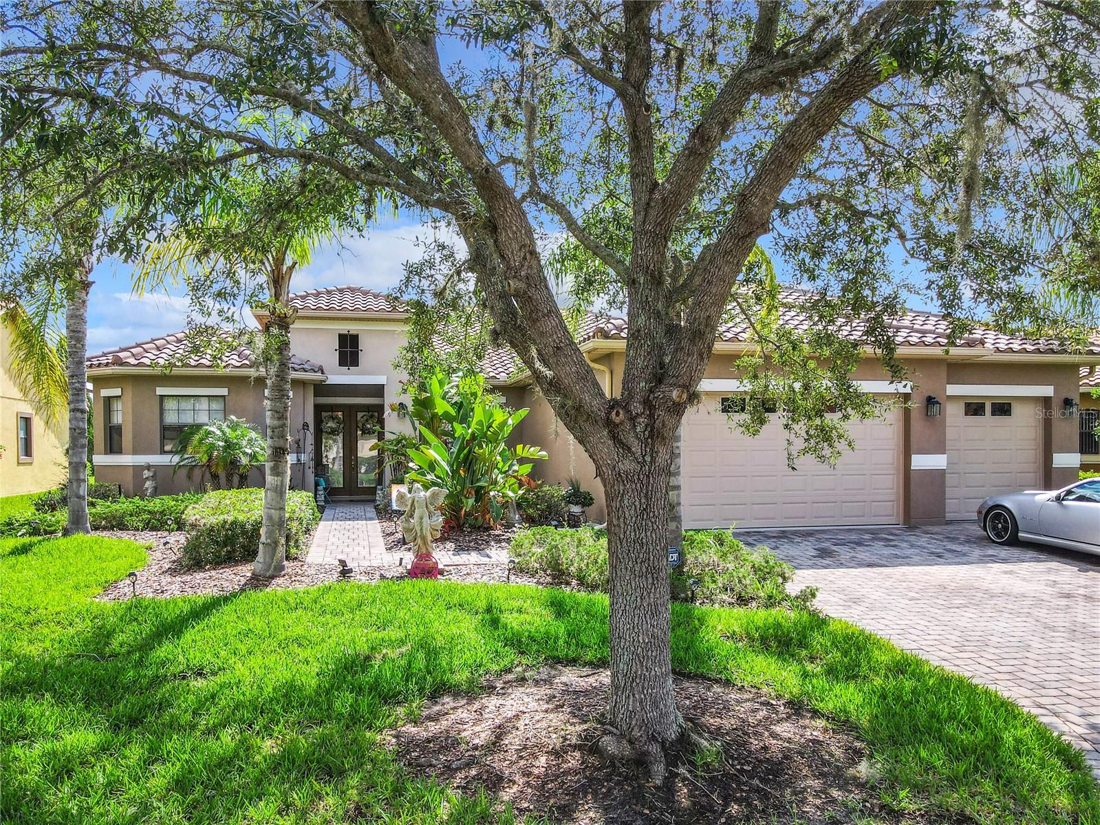 MOST POPULAR VENETIAN MODEL, located in the Bella Viana Neighborhood of Solivita. This LARGE, lovely, open concept floor plan, with 2580 air conditioned sq ft, has 3 Bedrooms plus Den, 3.5 baths, OVERSIZED 3 CAR GARAGE and overlooks a palm tree landscaped grassy area! This home welcomes you with double glass insert French doors. Once inside, you’ll love the open concept! Large Gourmet Kitchen features double oven and cooktop, 42” cabinets with lower pullouts, Corian counters and tile backsplash. Lots of cabinets for storage!!! Breakfast Bar plus Large Breakfast Nook. Separate Dining Room with tray ceiling and chair rail. The Primary Bedroom features a tray ceiling and blackout shades. The Ensuite Bath has dual vanities, a walk in shower with separate tub, linen closet and dual custom designed closets. Sliding glass doors from the Nook and Great Room lead to the covered, screened Lanai. The laundry room has a built-in sink, cabinets, and shelves for extra storage. Upgraded lighting throughout. The two Guest Bedrooms have private baths and the Powder Room is conveniently located off the living areas. The garage has side entry door and includes 2 refrigerators. Some wonderful options are 8’ doors, rounded corners, 5 ¼” baseboards, tile floors in the main living areas with carpeting in the bedrooms and den. Plantation shutters throughout the home. There is a Whole House Water Softener. The exterior of the home was painted in April 2021. 6 month home warranty included. Solivita is an Award Winning, Master Planned and Gated 55 Plus Golf Cart Community in Central Florida. 4,300 acres of pure luxury with ponds, conservation, 2 18 Hole PGA Golf Courses, tennis and pickleball courts, 14 temperature controlled pools, 2 State of the Art Amenity Centers complete with trainers, classes and the latest equipment. Play softball, horseshoes or bocce ball. Solivita has something for everyone! A downtown Village Center with restaurants, activities, a hometown pharmacy/sundries store, library, art studio, meeting rooms, and a pro shop. Enjoy top notch entertainment in the ballroom or take a class or a seminar at Solivita University. Ride your golf cart to the park, enjoy the butterfly garden or grow veggies in the community garden. You can take at golf lesson at Stonegate Golf Club, drive balls at our aquatic driving range or take your “best friend” to the dog park. Join any of over 200 clubs, visit with friends and neighbors. Solivita is convenient to shopping, houses of worship and a great place to live. Don’t wait…schedule an appointment to see this home today and start enjoying the Solivita Lifestyle!