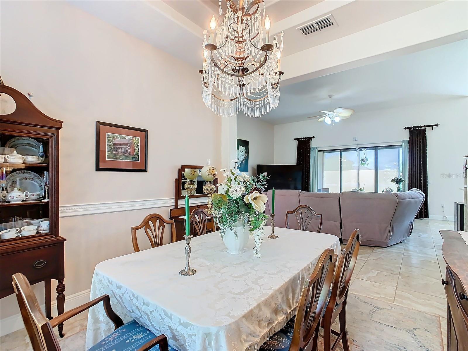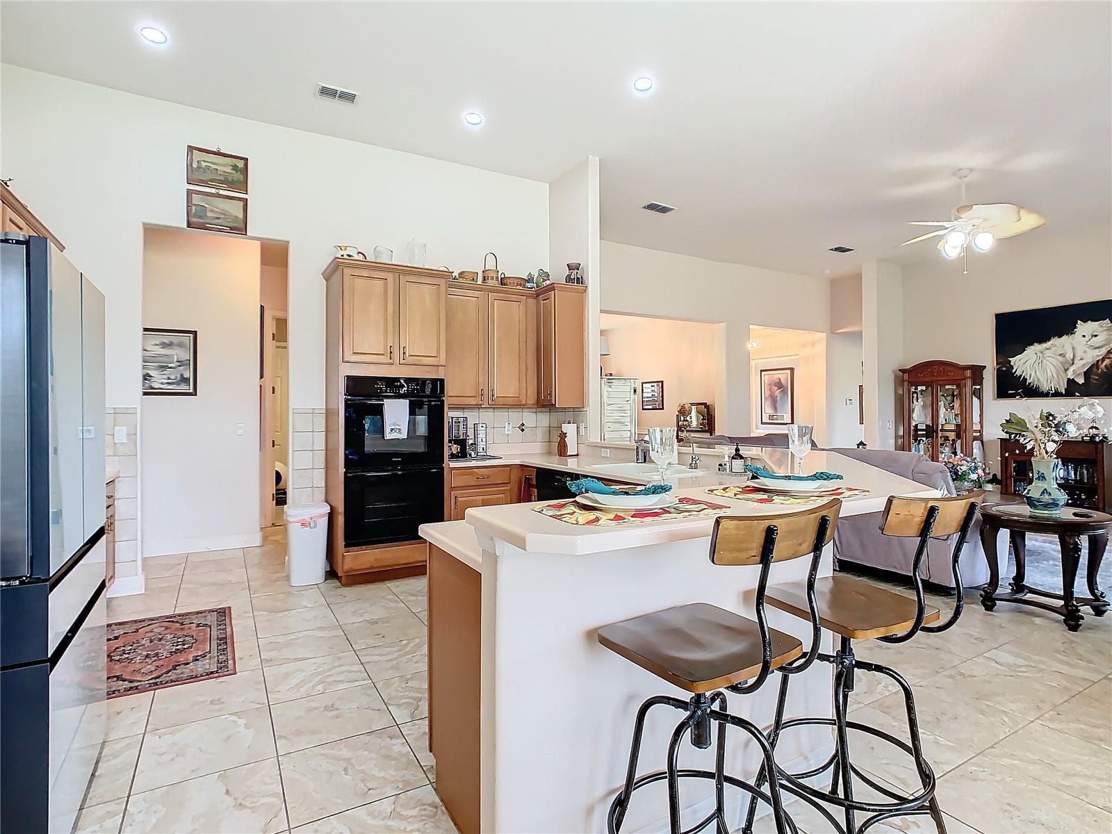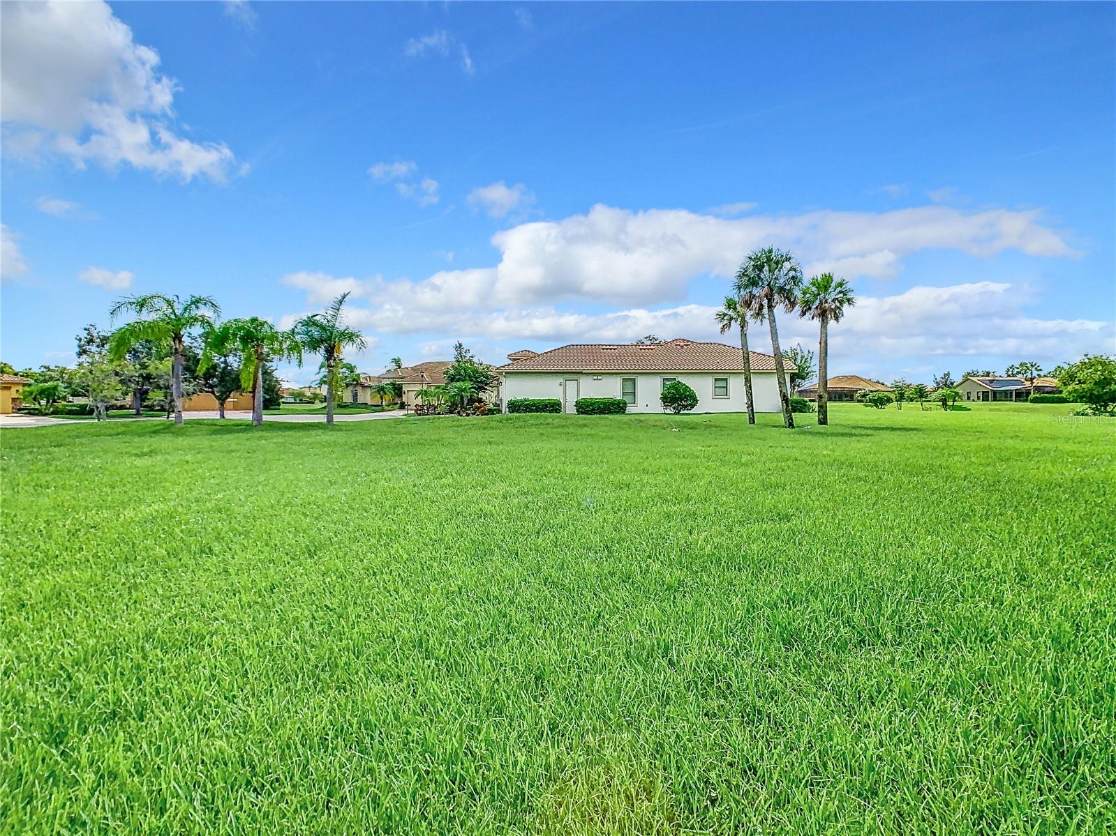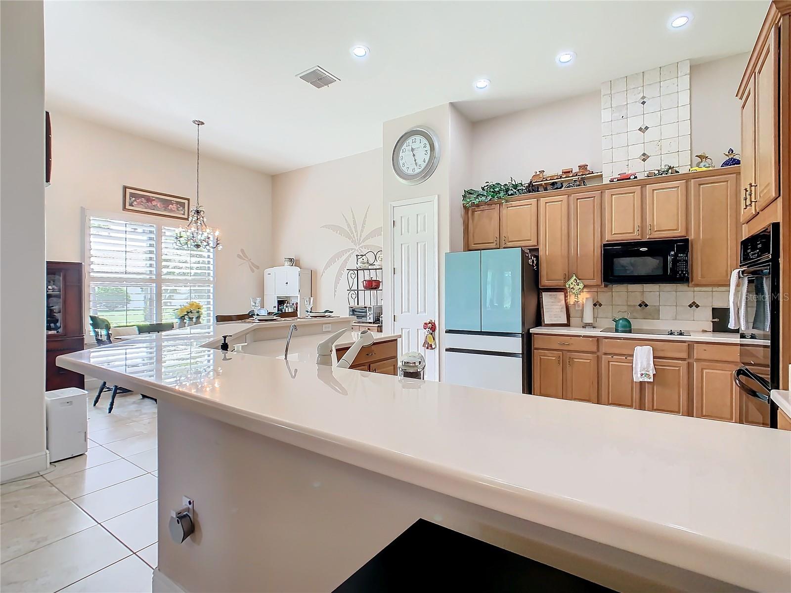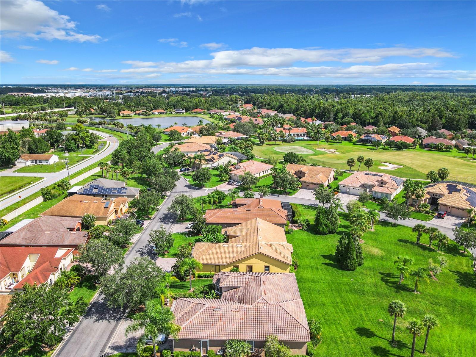 MOST POPULAR VENETIAN MODEL, located in the Bella Viana Neighborhood of Solivita. This LARGE, lovely, open concept floor plan, with 2580 air conditioned sq ft, has 3 Bedrooms plus Den, 3.5 baths, OVERSIZED 3 CAR GARAGE and overlooks a palm tree landscaped grassy area! This home welcomes you with double glass insert French doors. Once inside, you’ll love the open concept! Large Gourmet Kitchen features double oven and cooktop, 42” cabinets with lower pullouts, Corian counters and tile backsplash. Lots of cabinets for storage!!! Breakfast Bar plus Large Breakfast Nook. Separate Dining Room with tray ceiling and chair rail. The Primary Bedroom features a tray ceiling and blackout shades. The Ensuite Bath has dual vanities, a walk in shower with separate tub, linen closet and dual custom designed closets. Sliding glass doors from the Nook and Great Room lead to the covered, screened Lanai. The laundry room has a built-in sink, cabinets, and shelves for extra storage. Upgraded lighting throughout. The two Guest Bedrooms have private baths and the Powder Room is conveniently located off the living areas. The garage has side entry door and includes 2 refrigerators. Some wonderful options are 8’ doors, rounded corners, 5 ¼” baseboards, tile floors in the main living areas with carpeting in the bedrooms and den. Plantation shutters throughout the home. There is a Whole House Water Softener. The exterior of the home was painted in April 2021. 6 month home warranty included. Solivita is an Award Winning, Master Planned and Gated 55 Plus Golf Cart Community in Central Florida. 4,300 acres of pure luxury with ponds, conservation, 2 18 Hole PGA Golf Courses, tennis and pickleball courts, 14 temperature controlled pools, 2 State of the Art Amenity Centers complete with trainers, classes and the latest equipment. Play softball, horseshoes or bocce ball. Solivita has something for everyone! A downtown Village Center with restaurants, activities, a hometown pharmacy/sundries store, library, art studio, meeting rooms, and a pro shop. Enjoy top notch entertainment in the ballroom or take a class or a seminar at Solivita University. Ride your golf cart to the park, enjoy the butterfly garden or grow veggies in the community garden. You can take at golf lesson at Stonegate Golf Club, drive balls at our aquatic driving range or take your “best friend” to the dog park. Join any of over 200 clubs, visit with friends and neighbors. Solivita is convenient to shopping, houses of worship and a great place to live. Don’t wait…schedule an appointment to see this home today and start enjoying the Solivita Lifestyle!