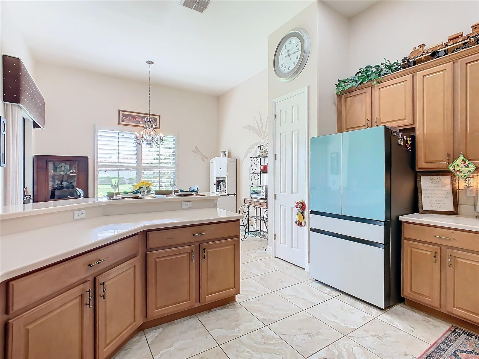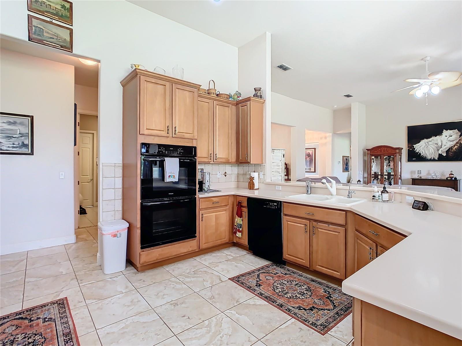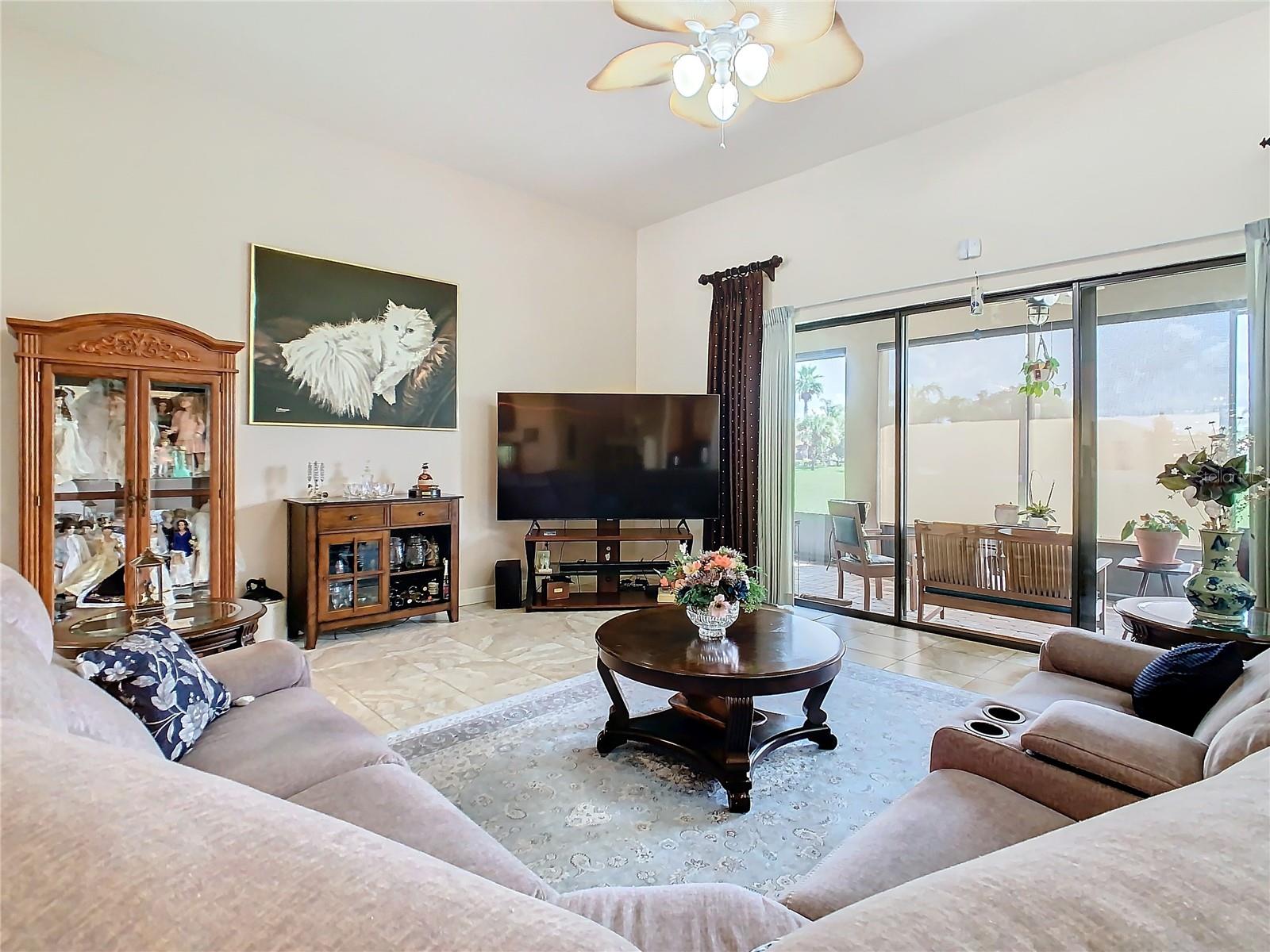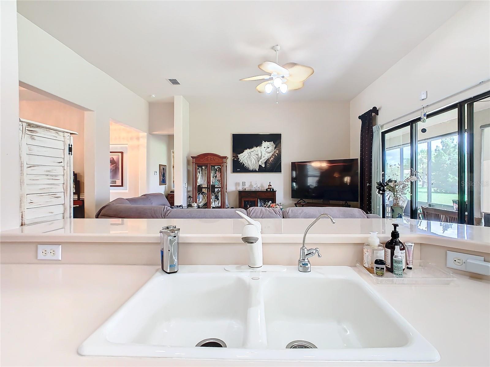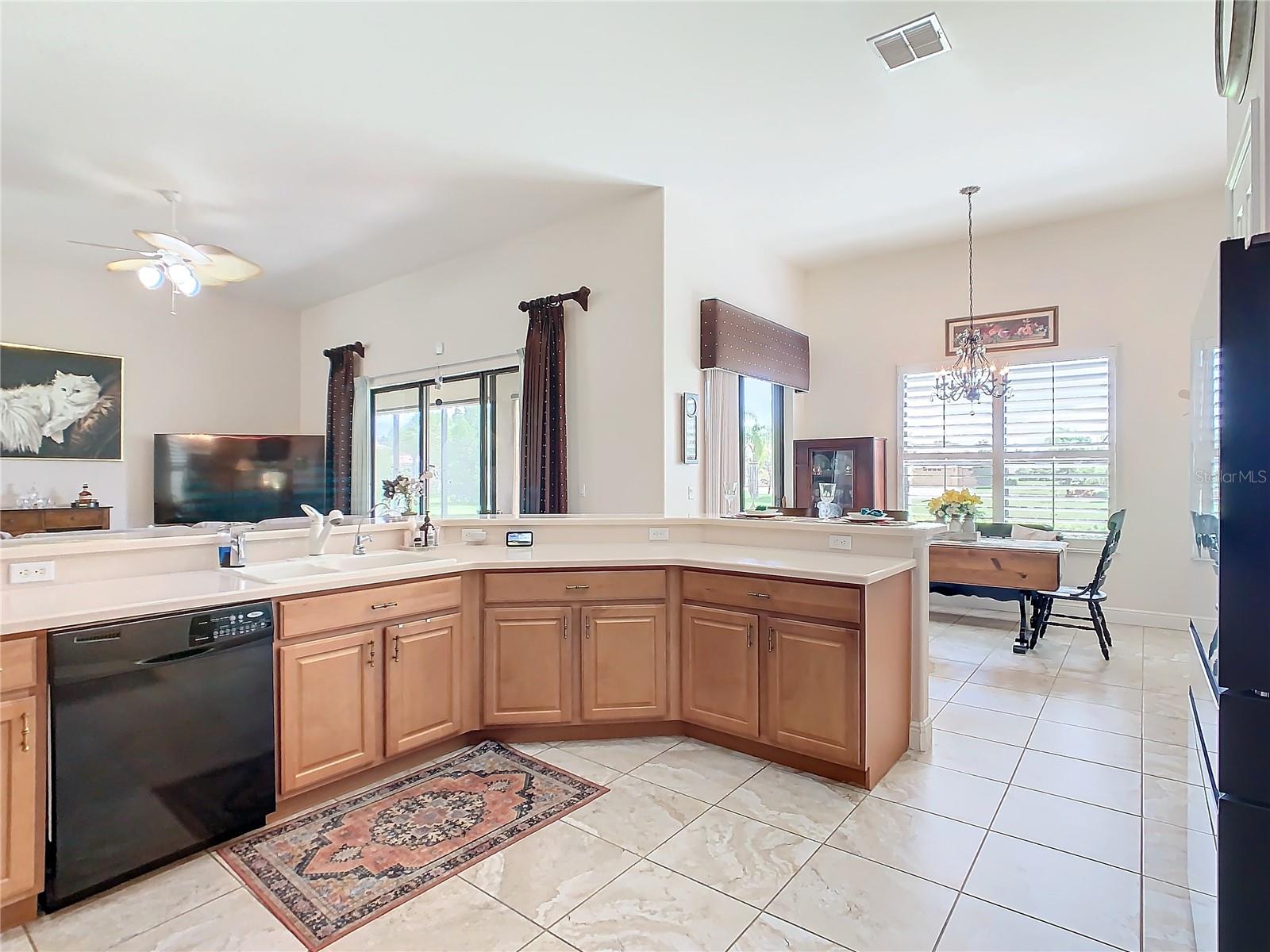 MOST POPULAR VENETIAN MODEL, located in the Bella Viana Neighborhood of Solivita. This LARGE, lovely, open concept floor plan, with 2580 air conditioned sq ft, has 3 Bedrooms plus Den, 3.5 baths, OVERSIZED 3 CAR GARAGE and overlooks a palm tree landscaped grassy area! This home welcomes you with double glass insert French doors. Once inside, you’ll love the open concept! Large Gourmet Kitchen features double oven and cooktop, 42” cabinets with lower pullouts, Corian counters and tile backsplash. Lots of cabinets for storage!!! Breakfast Bar plus Large Breakfast Nook. Separate Dining Room with tray ceiling and chair rail. The Primary Bedroom features a tray ceiling and blackout shades. The Ensuite Bath has dual vanities, a walk in shower with separate tub, linen closet and dual custom designed closets. Sliding glass doors from the Nook and Great Room lead to the covered, screened Lanai. The laundry room has a built-in sink, cabinets, and shelves for extra storage. Upgraded lighting throughout. The two Guest Bedrooms have private baths and the Powder Room is conveniently located off the living areas. The garage has side entry door and includes 2 refrigerators. Some wonderful options are 8’ doors, rounded corners, 5 ¼” baseboards, tile floors in the main living areas with carpeting in the bedrooms and den. Plantation shutters throughout the home. There is a Whole House Water Softener. The exterior of the home was painted in April 2021. 6 month home warranty included. Solivita is an Award Winning, Master Planned and Gated 55 Plus Golf Cart Community in Central Florida. 4,300 acres of pure luxury with ponds, conservation, 2 18 Hole PGA Golf Courses, tennis and pickleball courts, 14 temperature controlled pools, 2 State of the Art Amenity Centers complete with trainers, classes and the latest equipment. Play softball, horseshoes or bocce ball. Solivita has something for everyone! A downtown Village Center with restaurants, activities, a hometown pharmacy/sundries store, library, art studio, meeting rooms, and a pro shop. Enjoy top notch entertainment in the ballroom or take a class or a seminar at Solivita University. Ride your golf cart to the park, enjoy the butterfly garden or grow veggies in the community garden. You can take at golf lesson at Stonegate Golf Club, drive balls at our aquatic driving range or take your “best friend” to the dog park. Join any of over 200 clubs, visit with friends and neighbors. Solivita is convenient to shopping, houses of worship and a great place to live. Don’t wait…schedule an appointment to see this home today and start enjoying the Solivita Lifestyle!