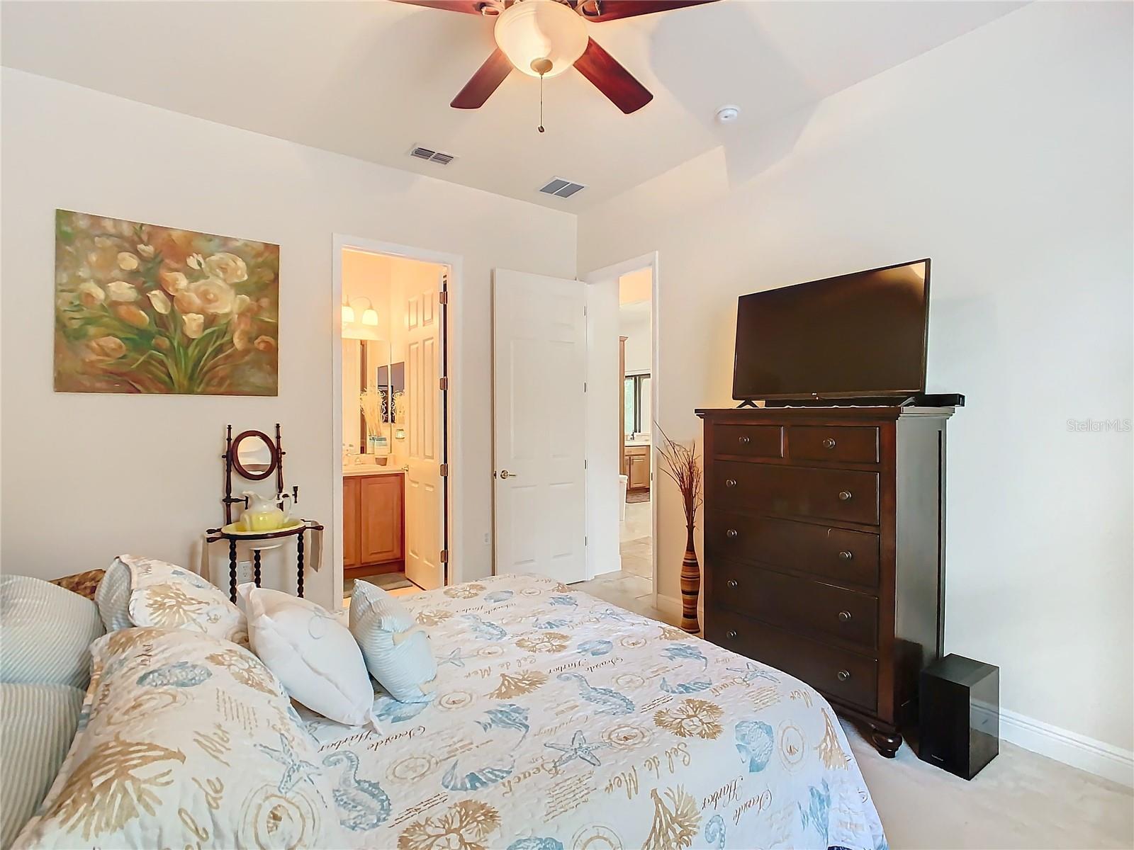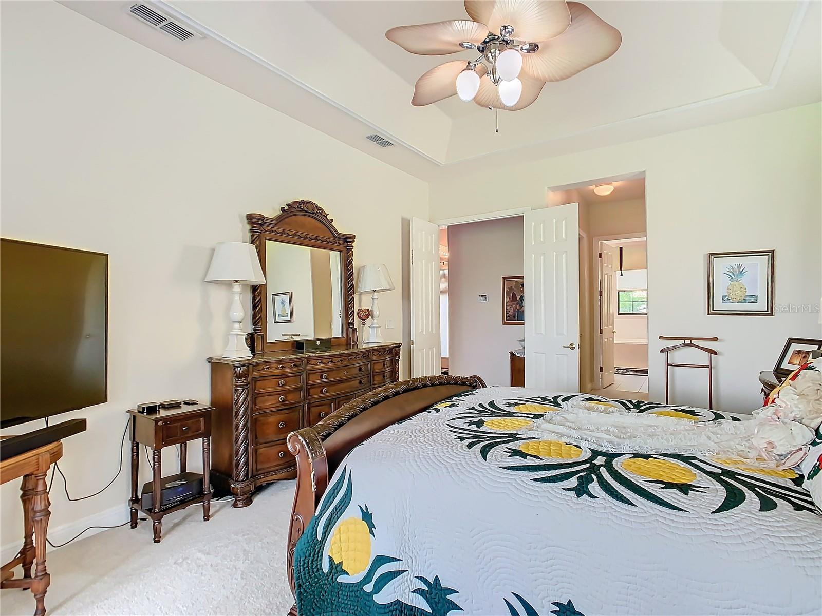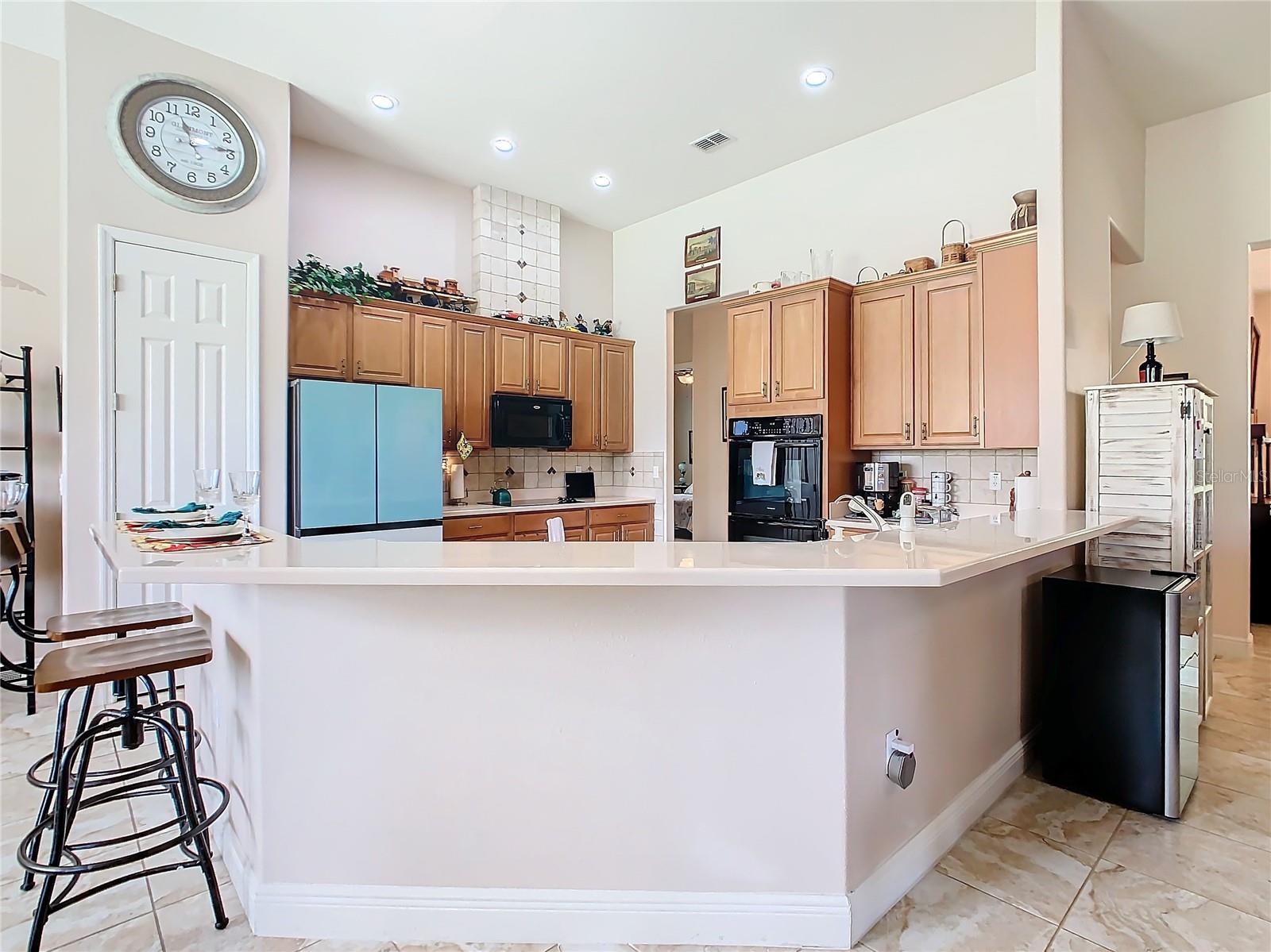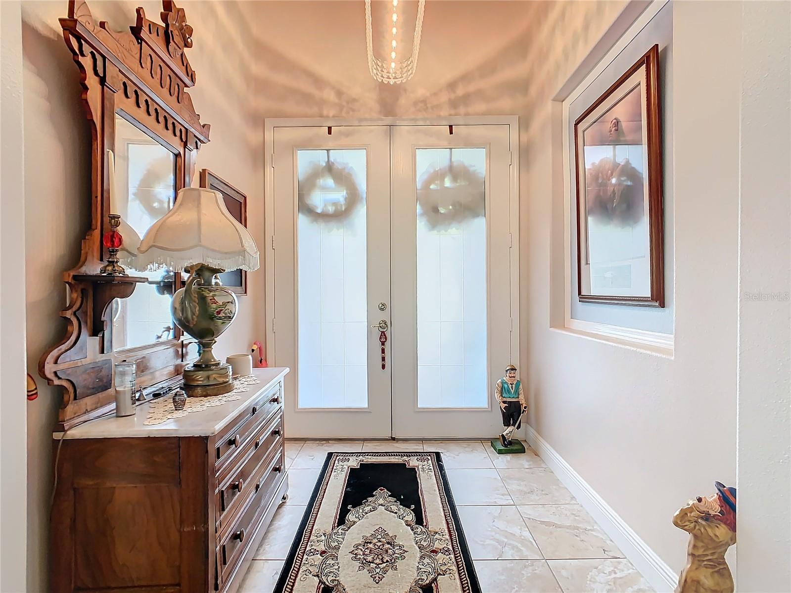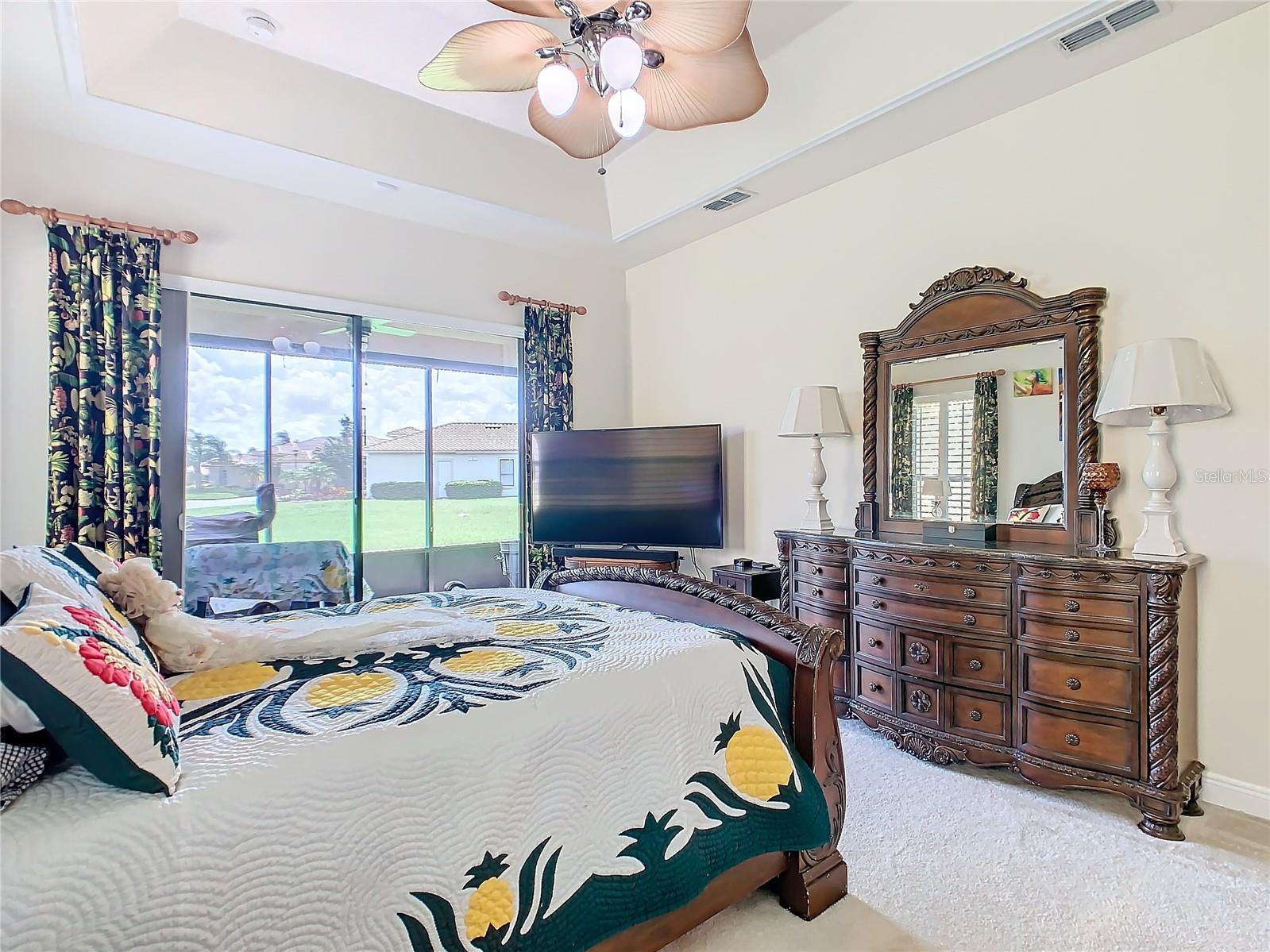MOST POPULAR VENETIAN MODEL, located in the Bella Viana Neighborhood of Solivita. This LARGE, lovely, open concept floor plan, with 2580 air conditioned sq ft, has 3 Bedrooms plus Den, 3.5 baths, OVERSIZED 3 CAR GARAGE and overlooks a palm tree landscaped grassy area! This home welcomes you with double glass insert French doors. Once inside, you’ll love the open concept! Large Gourmet Kitchen features double oven and cooktop, 42” cabinets with lower pullouts, Corian counters and tile backsplash. Lots of cabinets for storage!!! Breakfast Bar plus Large Breakfast Nook. Separate Dining Room with tray ceiling and chair rail. The Primary Bedroom features a tray ceiling and blackout shades. The Ensuite Bath has dual vanities, a walk in shower with separate tub, linen closet and dual custom designed closets. Sliding glass doors from the Nook and Great Room lead to the covered, screened Lanai. The laundry room has a built-in sink, cabinets, and shelves for extra storage. Upgraded lighting throughout. The two Guest Bedrooms have private baths and the Powder Room is conveniently located off the living areas. The garage has side entry door and includes 2 refrigerators. Some wonderful options are 8’ doors, rounded corners, 5 ¼” baseboards, tile floors in the main living areas with carpeting in the bedrooms and den. Plantation shutters throughout the home. There is a Whole House Water Softener. The exterior of the home was painted in April 2021. 6 month home warranty included. Solivita is an Award Winning, Master Planned and Gated 55 Plus Golf Cart Community in Central Florida. 4,300 acres of pure luxury with ponds, conservation, 2 18 Hole PGA Golf Courses, tennis and pickleball courts, 14 temperature controlled pools, 2 State of the Art Amenity Centers complete with trainers, classes and the latest equipment. Play softball, horseshoes or bocce ball. Solivita has something for everyone! A downtown Village Center with restaurants, activities, a hometown pharmacy/sundries store, library, art studio, meeting rooms, and a pro shop. Enjoy top notch entertainment in the ballroom or take a class or a seminar at Solivita University. Ride your golf cart to the park, enjoy the butterfly garden or grow veggies in the community garden. You can take at golf lesson at Stonegate Golf Club, drive balls at our aquatic driving range or take your “best friend” to the dog park. Join any of over 200 clubs, visit with friends and neighbors. Solivita is convenient to shopping, houses of worship and a great place to live. Don’t wait…schedule an appointment to see this home today and start enjoying the Solivita Lifestyle!