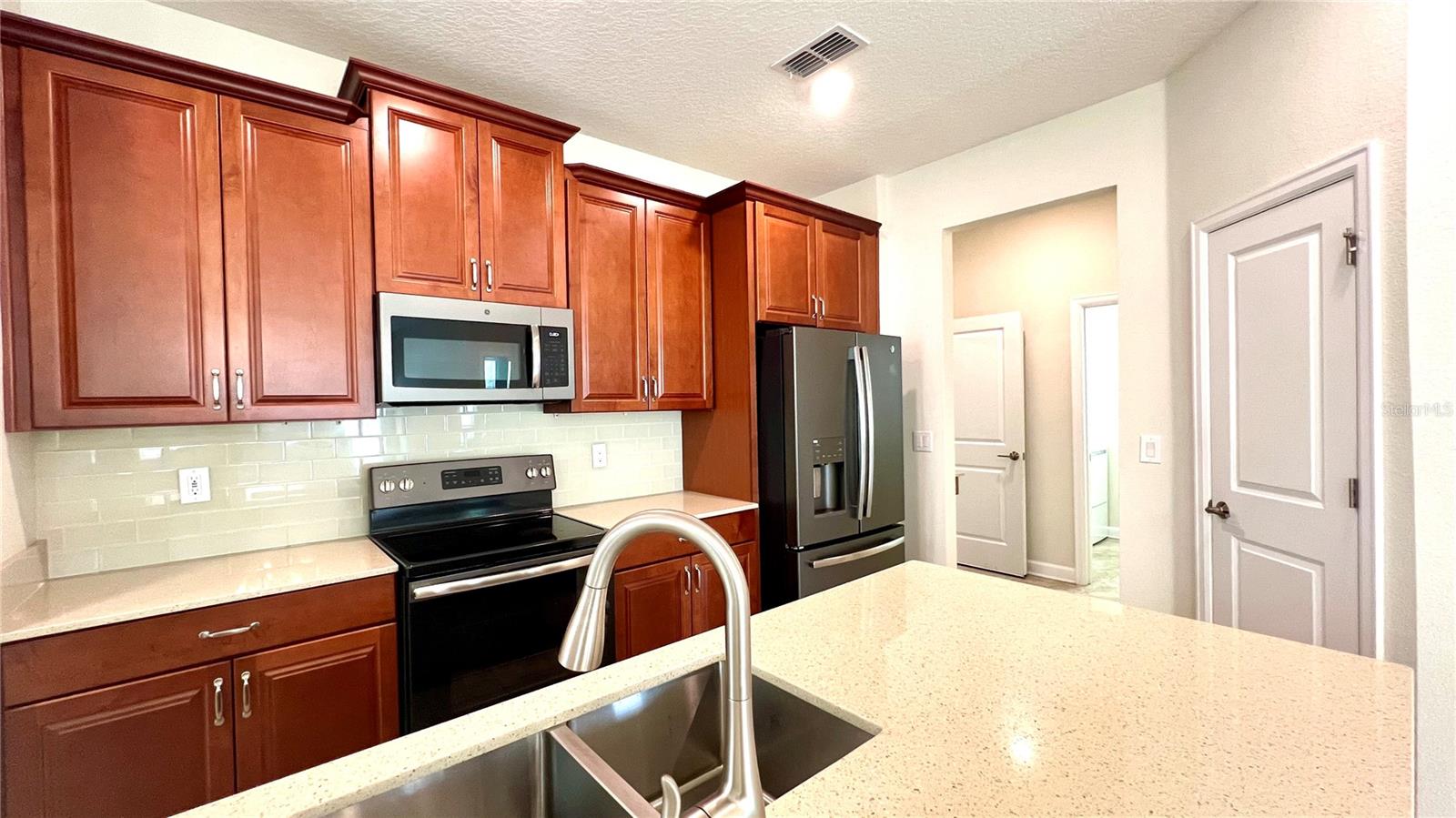 Motivated seller. 3 bedrooms, 2.5 bathrooms, 2 car garage, with a covered lanai on the back. Quartz countertops in kitchen and bathrooms, plus stainless appliances. The master bedroom is downstairs, 2 beds and small loft upstairs. Storey Lake community is less than 10 minutes away from Disney. Walking distance to Super Target shopping center, a few minutes drive to Sam's Club, Walmart Supercenter, Publix shopping center and The Loop Mall, very close to main roads(Osceola Parkway, US 192, 535, 417, the Turnpike, and I-4). Tons of restaurants, shops and convenient stores close by, and many local attractions at your fingertips. The Storey Lake community is gated and offers Hideaway Club and an abundance of amenities. From a fitness center and a beautiful resort-style swimming pool to a full-service restaurant and bar, they're extensions of your living space. This home is beautiful and ready for you! Please press the virtual tour button for your video viewing and the showing button to schedule your showing today!