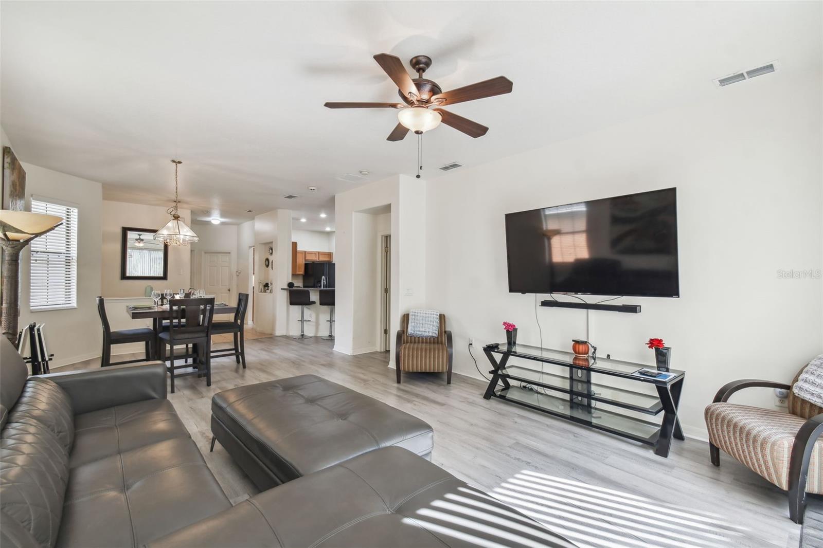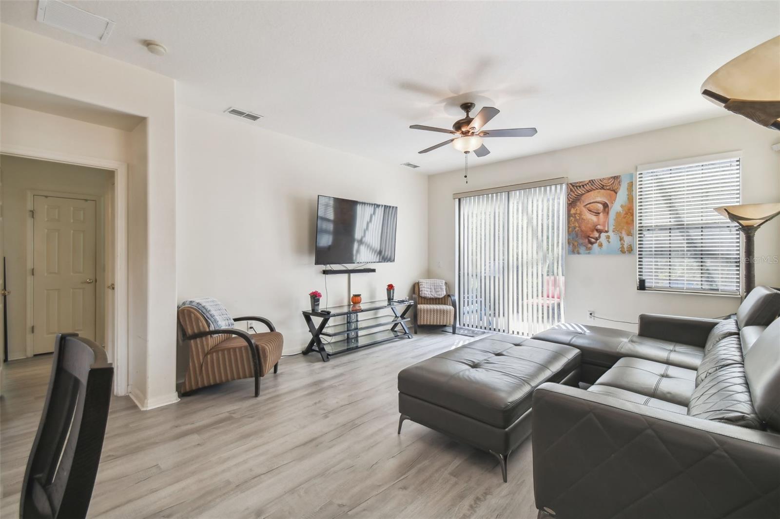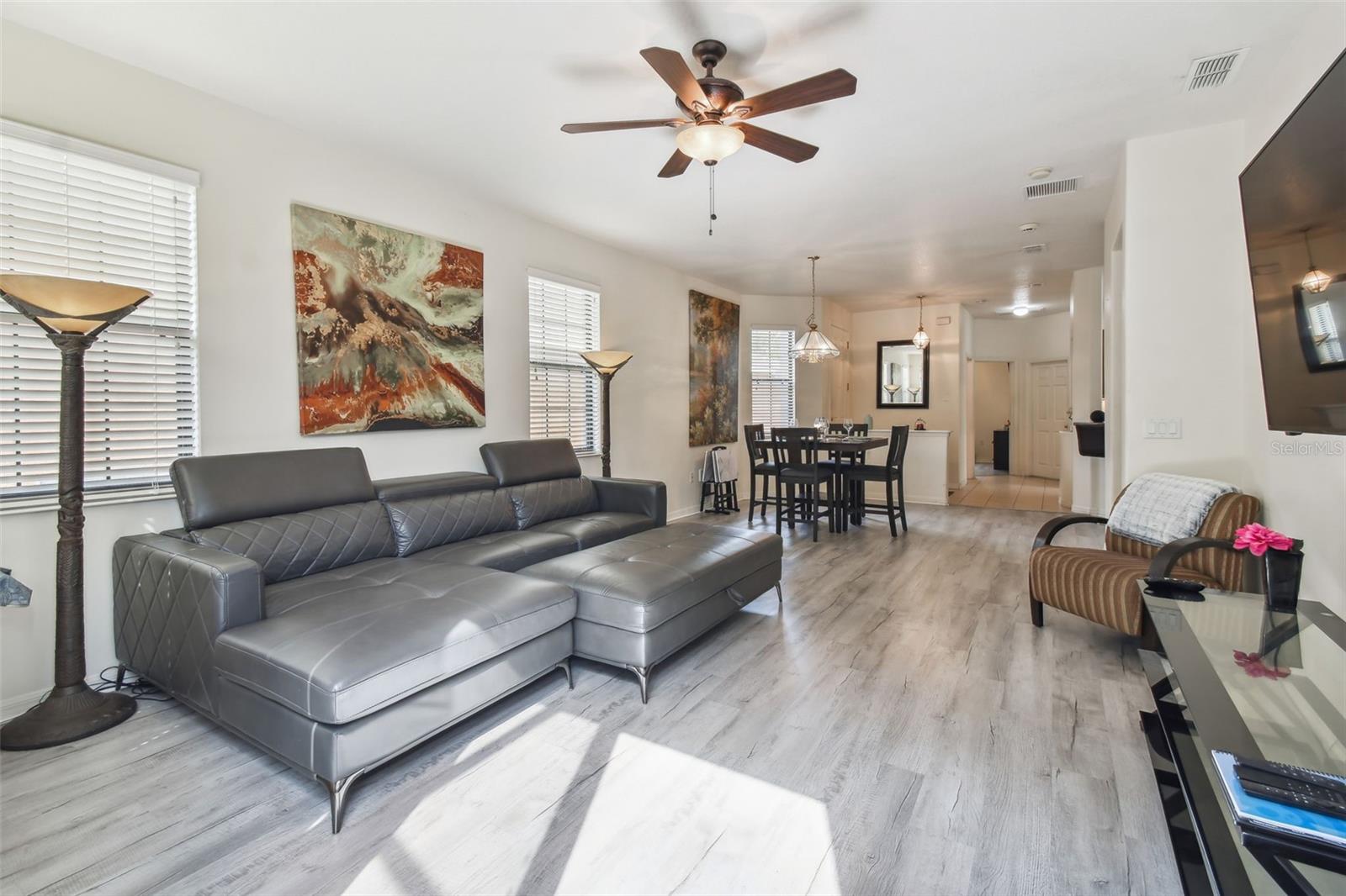 Welcome to a home in Solivita, where the charm of Tuscany meets the tranquility of a 55+ community designed for relaxation and leisure. This delightful 2-bedroom, 2-bath residence offers a serene retreat where, from the moment you walk in, you’ll appreciate the seamless flow of high-end, scratch-resistant vinyl planks throughout the main living areas and bedrooms—both stylish and practical for everyday living. The generous kitchen boasts pull-out shelves for easy access, ample storage, and extensive counter space. Its cozy nook is ideal for casual dining or enjoying a quiet morning coffee. A pass-through seamlessly connects the kitchen to the living and dining areas, streamlining both entertaining and meal preparation. The Primary Bedroom features an ensuite bathroom and a walk-in closet, while the second bedroom, located on the opposite end of the home, includes a Murphy bed and is adjacent to the full guest bathroom. All counters throughout the home are Corian, offering both durability and ease of maintenance. Step outside to the screened-in lanai, where you'll find a private haven overlooking a tranquil canal and lush conservation area beyond. It’s an ideal spot to relax and enjoy the peaceful surroundings, whether you're unwinding after a long day or hosting friends. This home offers more than just a living space—it’s a chance to embrace a lifestyle of calm and comfort. Experience it for yourself and see how this special property can become your perfect retreat. Solivita boasts over 200 clubs and a wide array of amenities to enrich your days. Dive into relaxation at one of the 14 sparkling swimming pools, challenge friends to a game of pickleball or softball, or enjoy a casual round of horseshoes; the possibilities are endless. With such a diverse range of activities and social opportunities, you’re sure to find joy and fulfillment in every corner of this active community. Experience the perfect blend of relaxation and active living in your personal retreat at Solivita. Welcome home to your personal slice of paradise. As per seller requests, no verbal offers will be considered, to include texts, emails, phone calls, as well as any investor offers coming in well below fair market value.