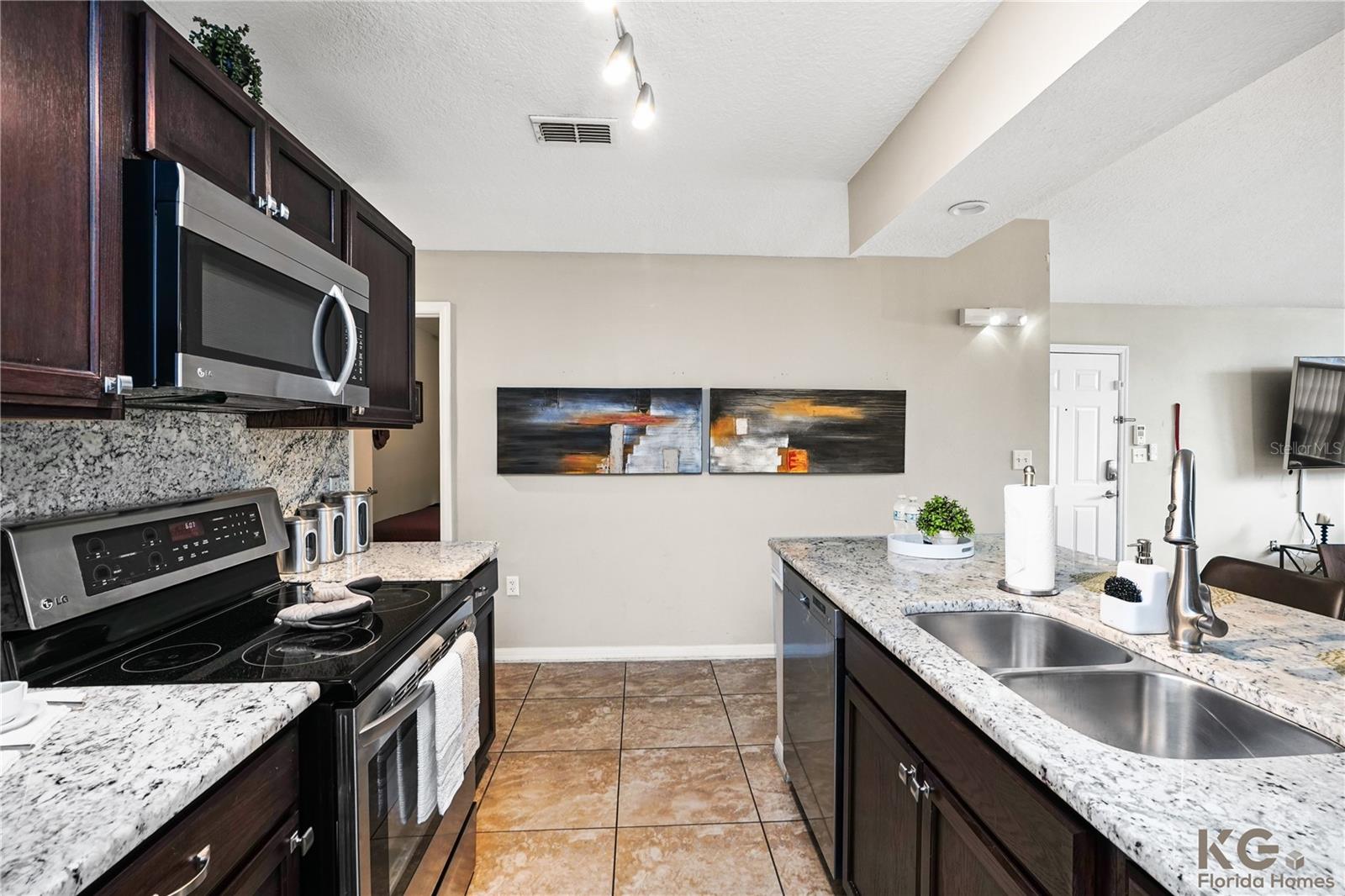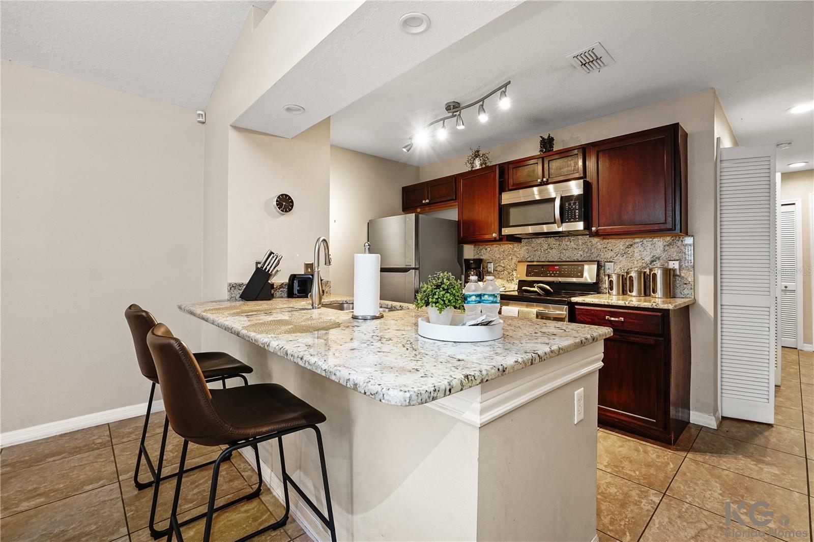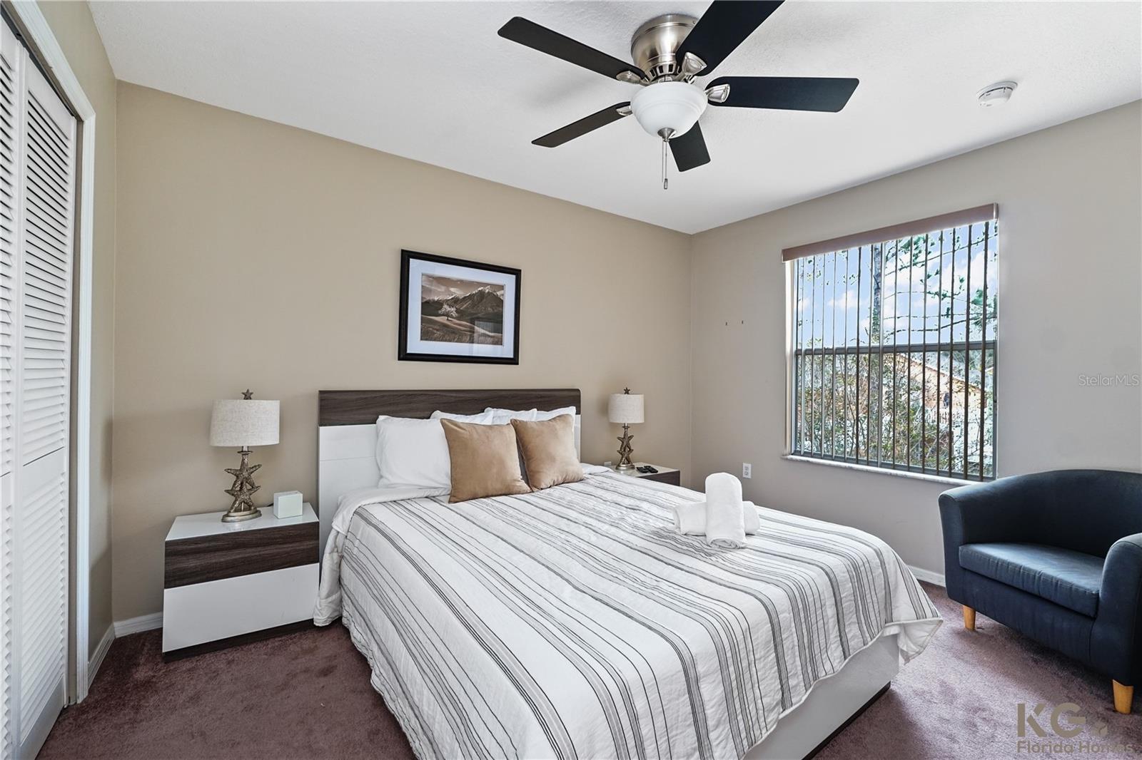 ATTENTION INVESTORS GREAT OPPORTUNITY!!!!! Experience the charm of this beautifully upgraded condo located in a secure gated community, just a short 10-minute drive from the magic of Disney World. This versatile home is ideal for Airbnb, VRBO, or year-round living! Upon entering, you'll be welcomed by impressive high ceilings and a private outdoor deck accessible from the master bedroom on the second floor. The open floor plan features ceramic tile flooring in the living areas and bathrooms, while the bedrooms are adorned with soft, upgraded carpeting. Enjoy the luxurious upgrades in both the master bathroom and kitchen, which have been carefully modernized. The kitchen is equipped with sleek stainless steel appliances, stylish granite countertops, and a filtered water system at the sink. This conveniently located unit offers quick access to all of Central Florida's attractions and major highways like the 429, yet is peacefully situated in a quiet part of the neighborhood. Within minutes, you can dive into the enchantment of Disney, with endless shopping and exciting activities right at your doorstep—all major shopping and dining options are within 10 minutes! Enjoy maintenance-free living, as the community handles exterior upkeep, allowing you to unwind in the community pool after a day of adventure. Don’t miss the opportunity to discover all that this home and community have for you. Call now to arrange your personal tour!