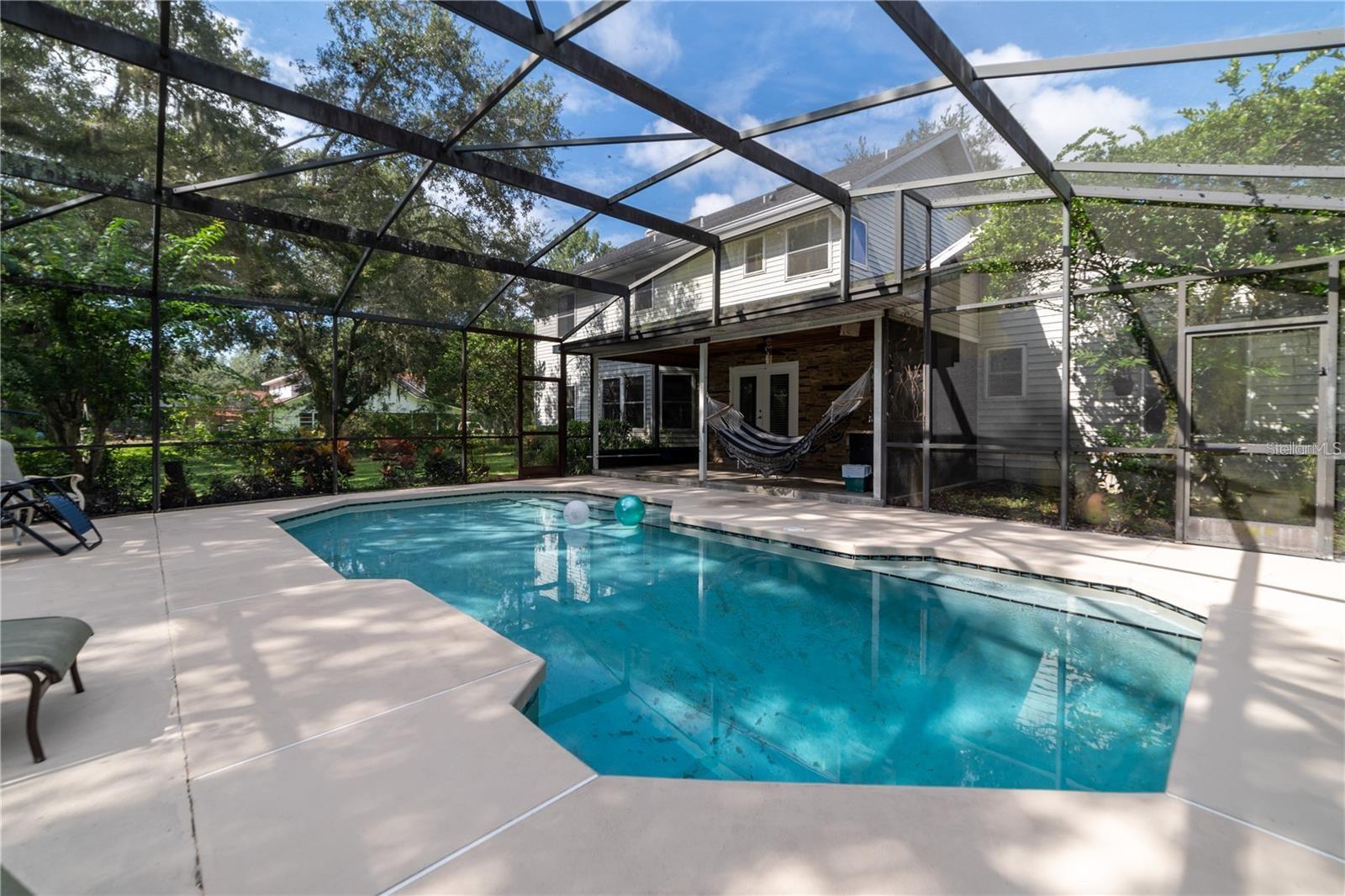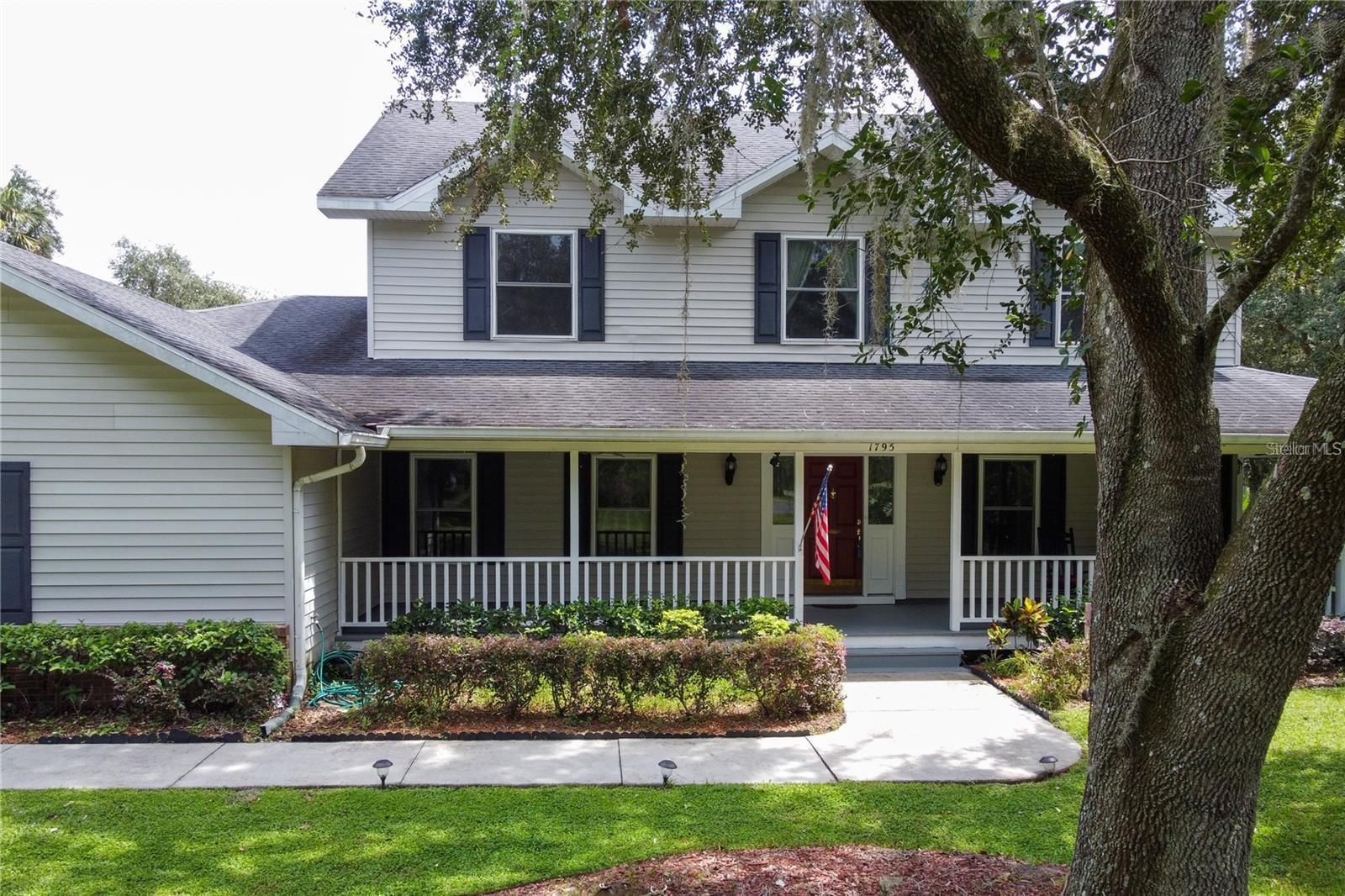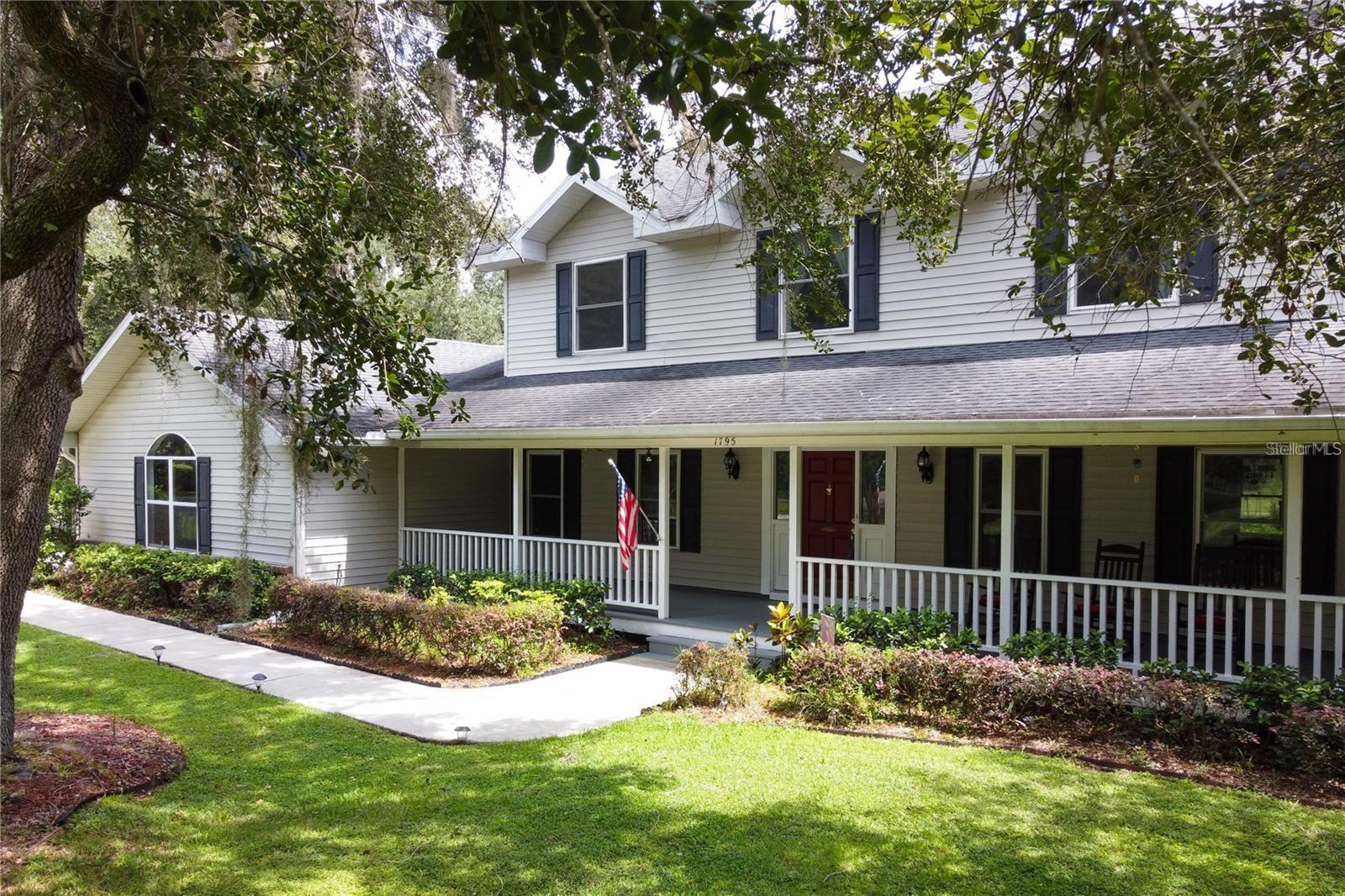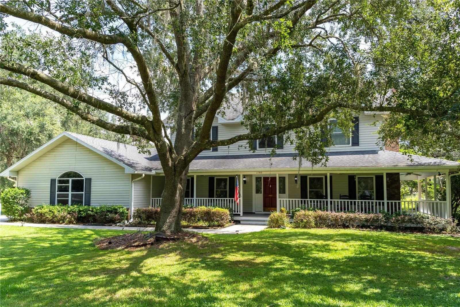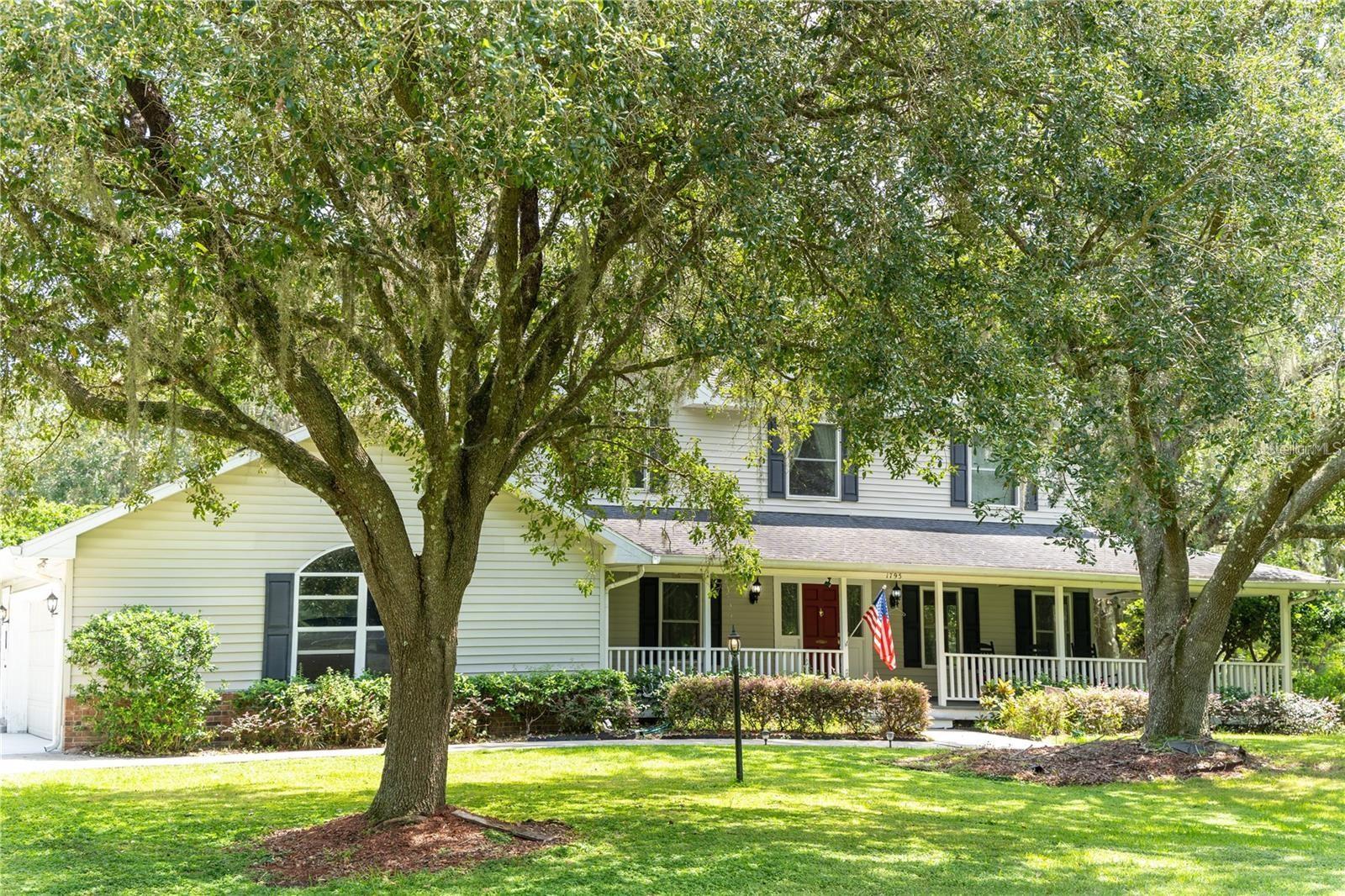 Welcome to your dream home in the heart of Kissimmee! This spacious 3,100 sq. ft. property is the perfect blend of modern comfort and traditional Southern charm, all set on a full acre lot. It offers the best of both worlds: the tranquility of a private community with the convenience of nearby shopping and major roads. Whether you’re seeking a generational home with room to grow or an income-producing investment, this property has limitless potential. Step inside from the impressive wrap-around porch, perfect for sipping lemonade on a sunny afternoon, and be greeted by the warmth of rich hardwood floors and elegant crown molding. The foyer leads you into cozy yet elegant spaces, including a living room with a fireplace, a formal dining room with ornately carved wood doors, and an office with built-in shelves. The kitchen is a chef's delight, featuring ample storage, spacious countertops, and a high bar for casual dining, along with a bright breakfast nook. Upstairs, you’ll find four spacious bedrooms, including a luxurious master suite and a renovated shared bathroom with walk-in tile showers and granite countertops. Downstairs, there's a fifth bedroom option, a great room off the kitchen, a laundry area, and a half bath. The home also features a workshop area off the oversized 2-car garage, perfect for craftsmen and hobbyists, with built-in storage units for easy organization. Outdoor living is just as inviting, with a covered pool, a back patio ideal for entertaining, and plenty of room for a vegetable garden or fruit trees. Embrace self-sufficiency while staying connected to modern amenities. This home has excellent bones and, with a little imagination, could become a true showpiece—all without the showpiece price tag.