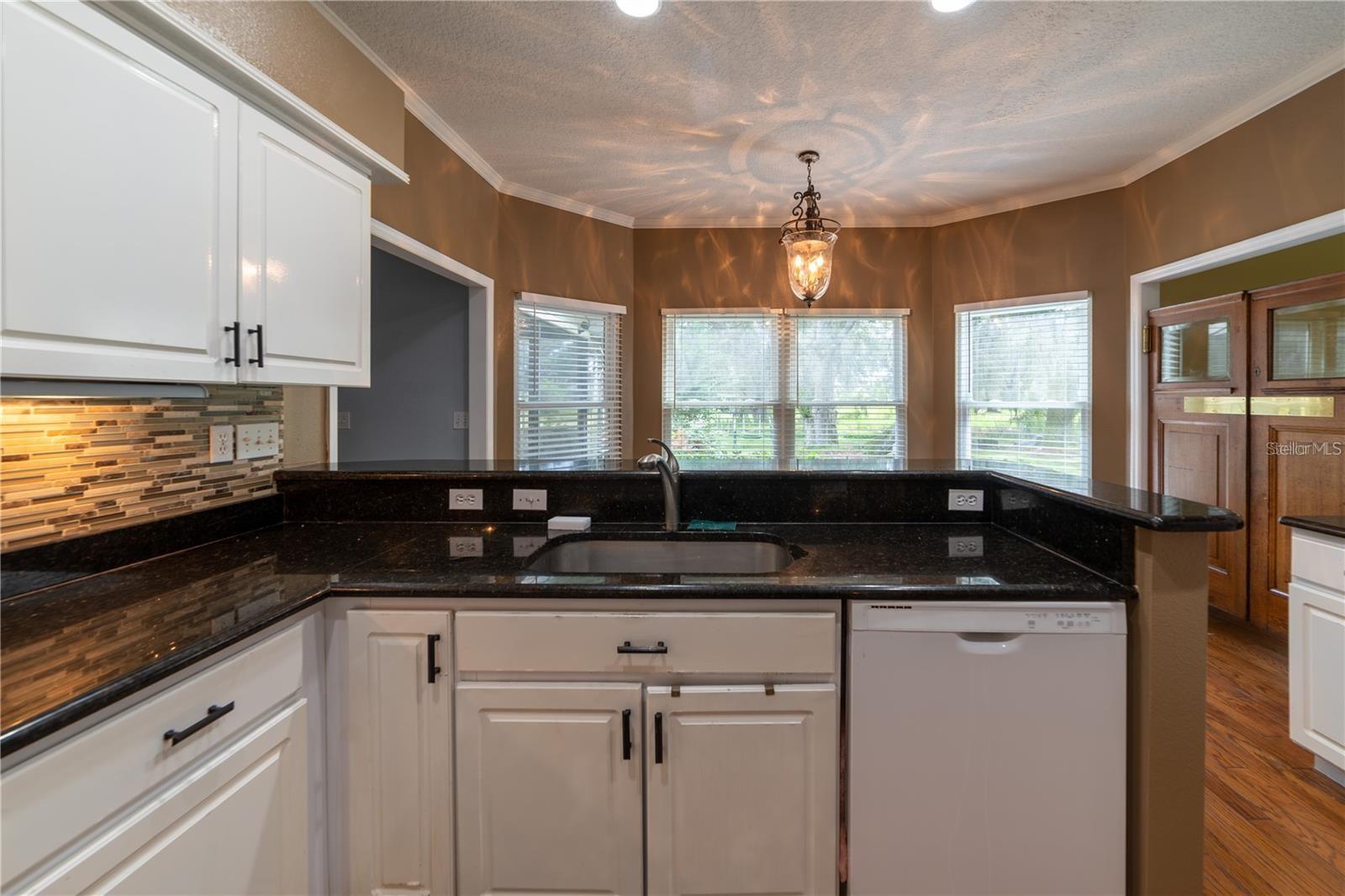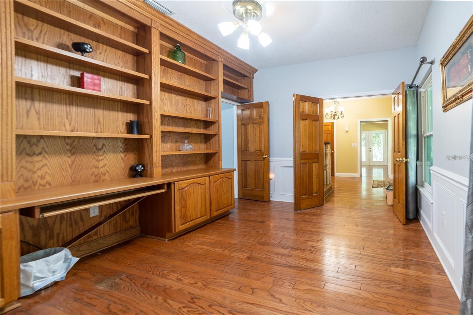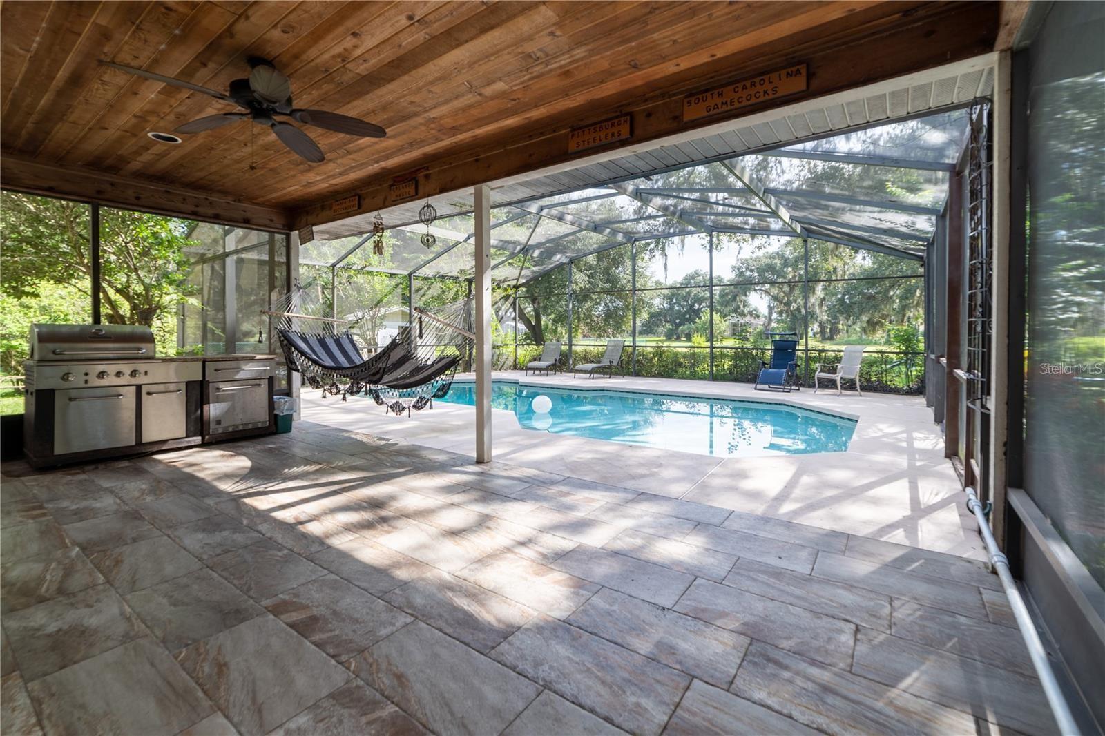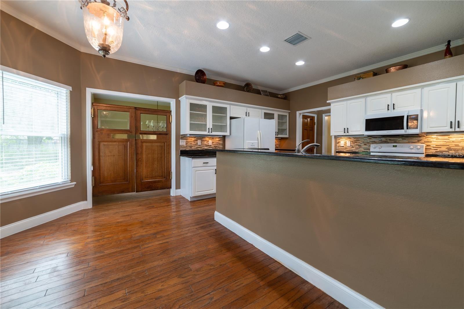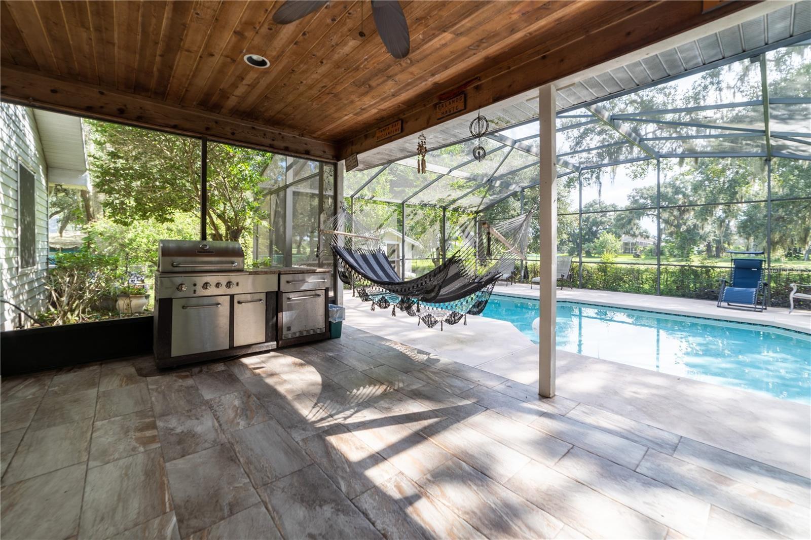 Welcome to your dream home in the heart of Kissimmee! This spacious 3,100 sq. ft. property is the perfect blend of modern comfort and traditional Southern charm, all set on a full acre lot. It offers the best of both worlds: the tranquility of a private community with the convenience of nearby shopping and major roads. Whether you’re seeking a generational home with room to grow or an income-producing investment, this property has limitless potential. Step inside from the impressive wrap-around porch, perfect for sipping lemonade on a sunny afternoon, and be greeted by the warmth of rich hardwood floors and elegant crown molding. The foyer leads you into cozy yet elegant spaces, including a living room with a fireplace, a formal dining room with ornately carved wood doors, and an office with built-in shelves. The kitchen is a chef's delight, featuring ample storage, spacious countertops, and a high bar for casual dining, along with a bright breakfast nook. Upstairs, you’ll find four spacious bedrooms, including a luxurious master suite and a renovated shared bathroom with walk-in tile showers and granite countertops. Downstairs, there's a fifth bedroom option, a great room off the kitchen, a laundry area, and a half bath. The home also features a workshop area off the oversized 2-car garage, perfect for craftsmen and hobbyists, with built-in storage units for easy organization. Outdoor living is just as inviting, with a covered pool, a back patio ideal for entertaining, and plenty of room for a vegetable garden or fruit trees. Embrace self-sufficiency while staying connected to modern amenities. This home has excellent bones and, with a little imagination, could become a true showpiece—all without the showpiece price tag.