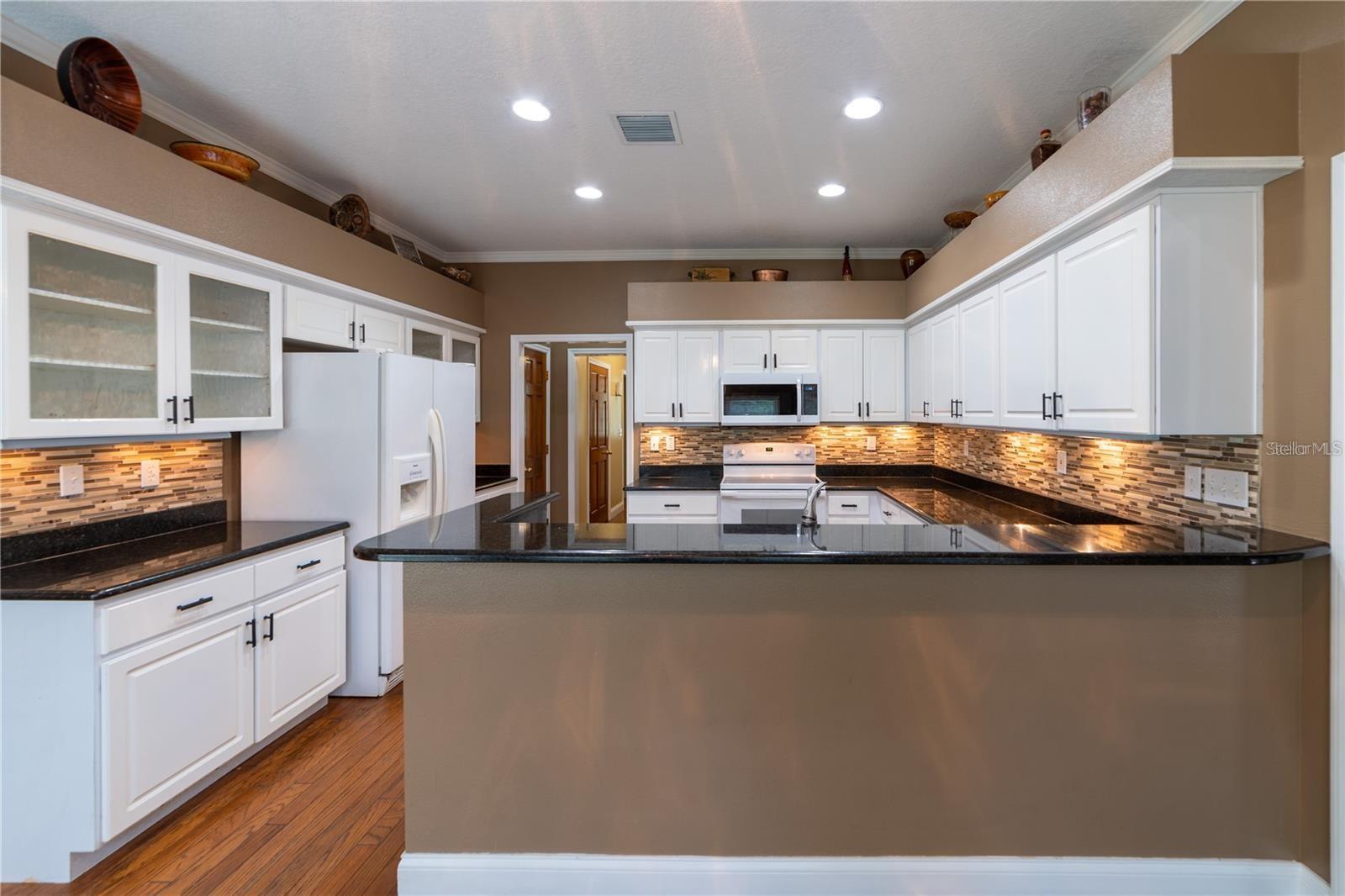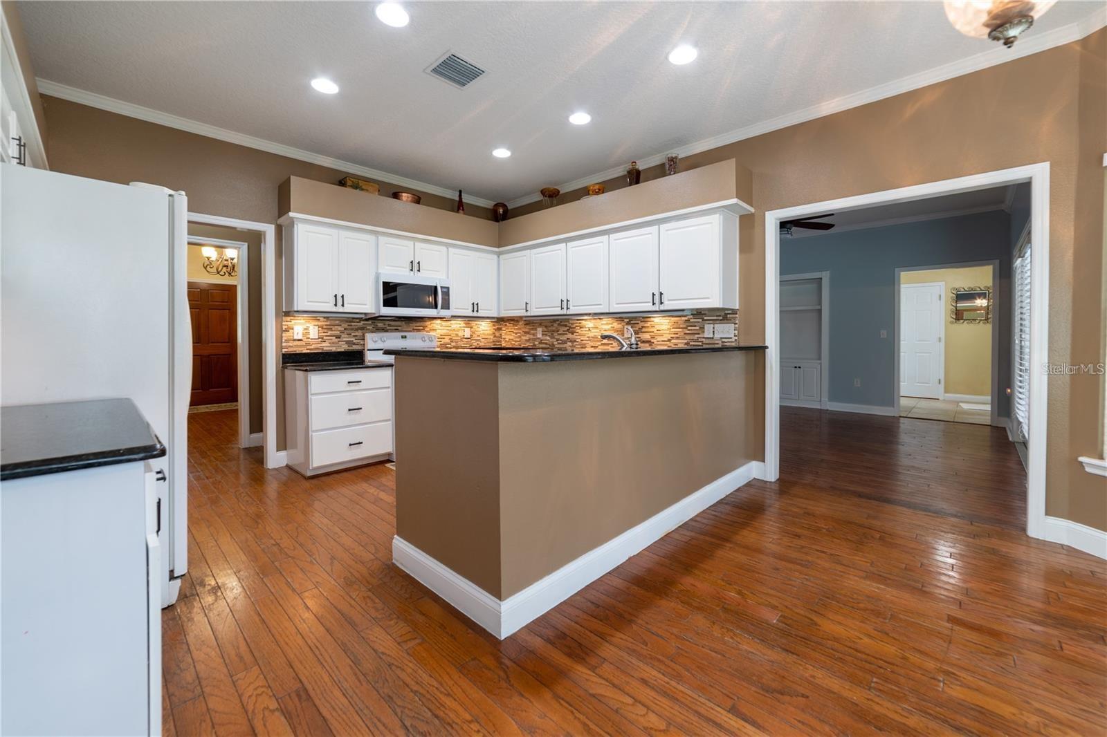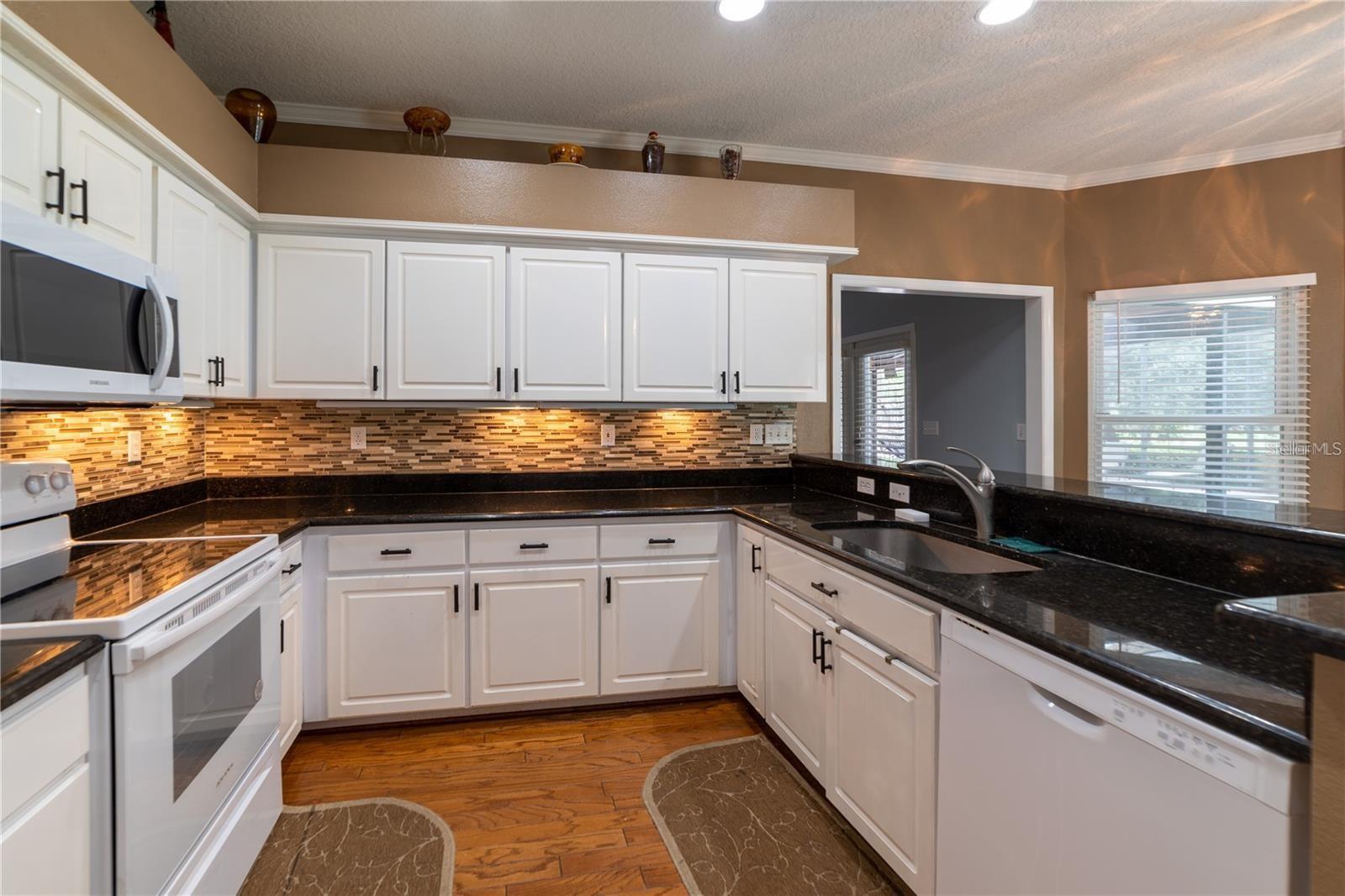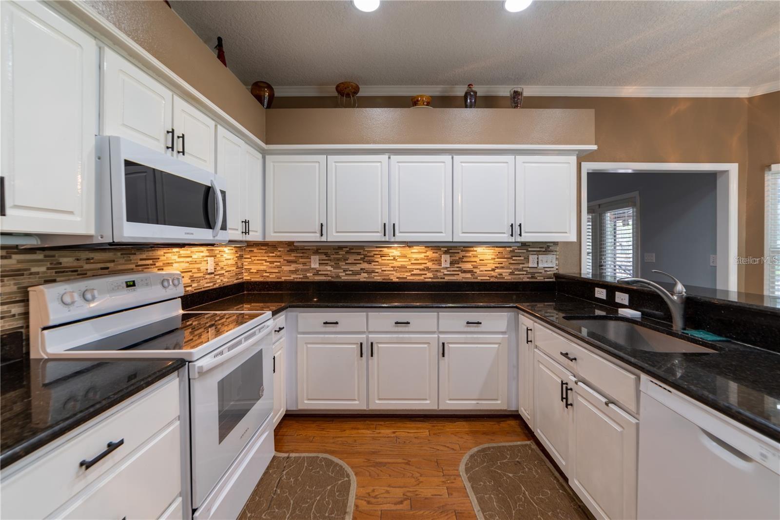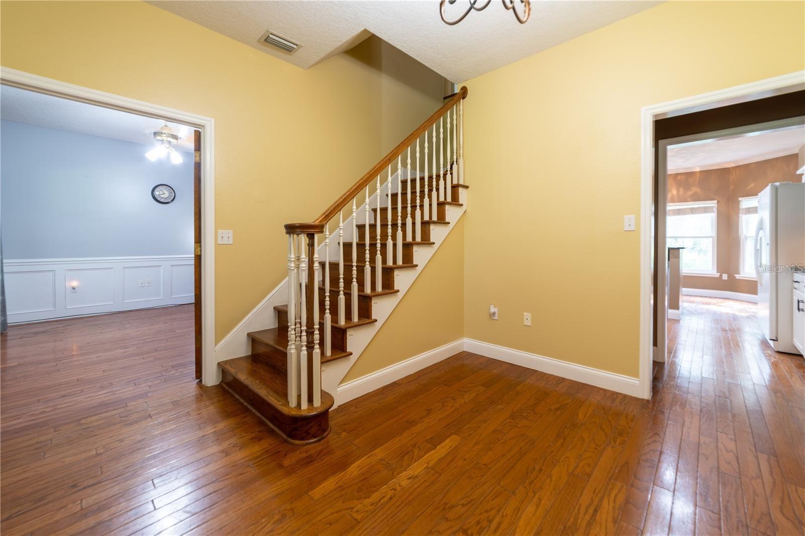 Welcome to your dream home in the heart of Kissimmee! This spacious 3,100 sq. ft. property is the perfect blend of modern comfort and traditional Southern charm, all set on a full acre lot. It offers the best of both worlds: the tranquility of a private community with the convenience of nearby shopping and major roads. Whether you’re seeking a generational home with room to grow or an income-producing investment, this property has limitless potential. Step inside from the impressive wrap-around porch, perfect for sipping lemonade on a sunny afternoon, and be greeted by the warmth of rich hardwood floors and elegant crown molding. The foyer leads you into cozy yet elegant spaces, including a living room with a fireplace, a formal dining room with ornately carved wood doors, and an office with built-in shelves. The kitchen is a chef's delight, featuring ample storage, spacious countertops, and a high bar for casual dining, along with a bright breakfast nook. Upstairs, you’ll find four spacious bedrooms, including a luxurious master suite and a renovated shared bathroom with walk-in tile showers and granite countertops. Downstairs, there's a fifth bedroom option, a great room off the kitchen, a laundry area, and a half bath. The home also features a workshop area off the oversized 2-car garage, perfect for craftsmen and hobbyists, with built-in storage units for easy organization. Outdoor living is just as inviting, with a covered pool, a back patio ideal for entertaining, and plenty of room for a vegetable garden or fruit trees. Embrace self-sufficiency while staying connected to modern amenities. This home has excellent bones and, with a little imagination, could become a true showpiece—all without the showpiece price tag.