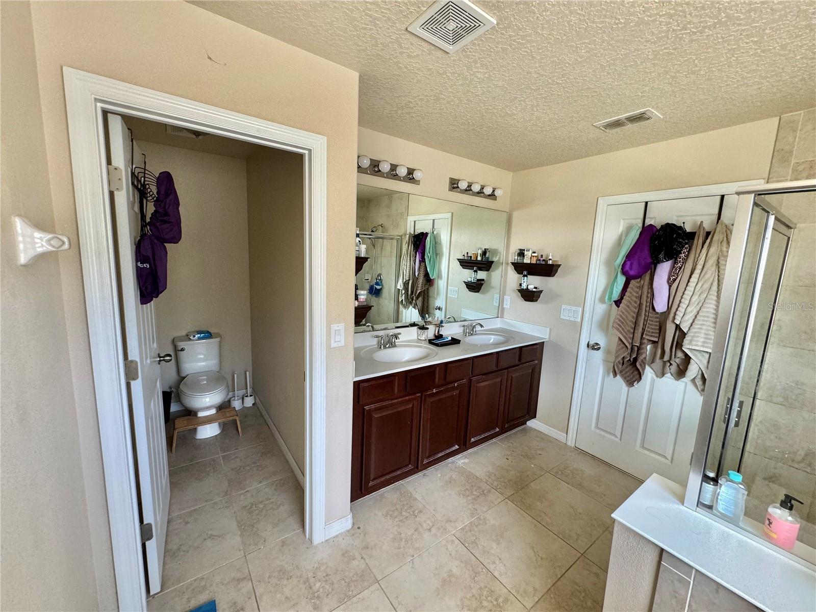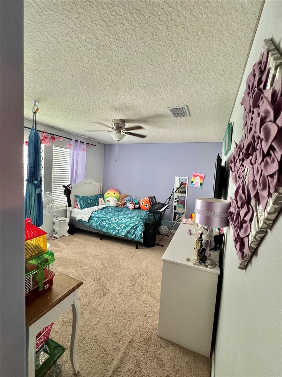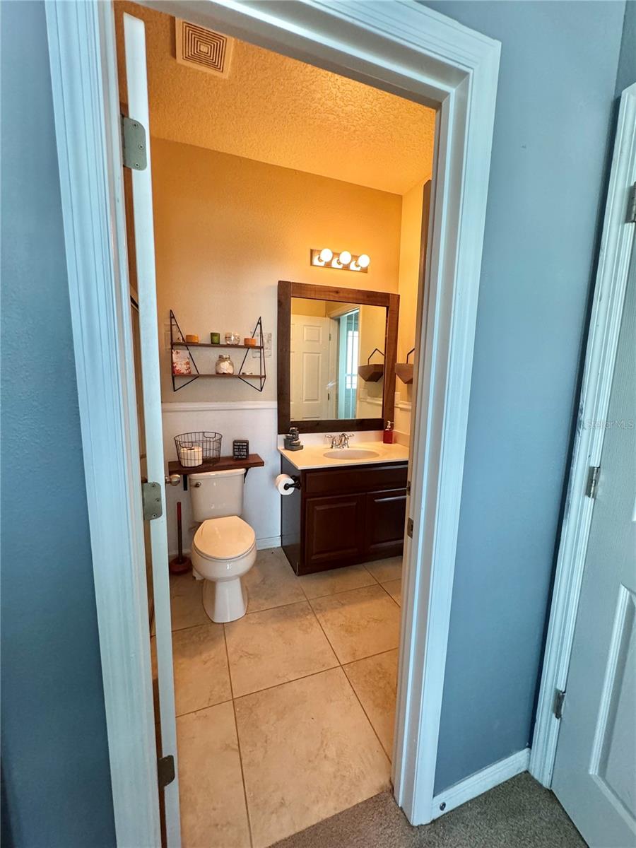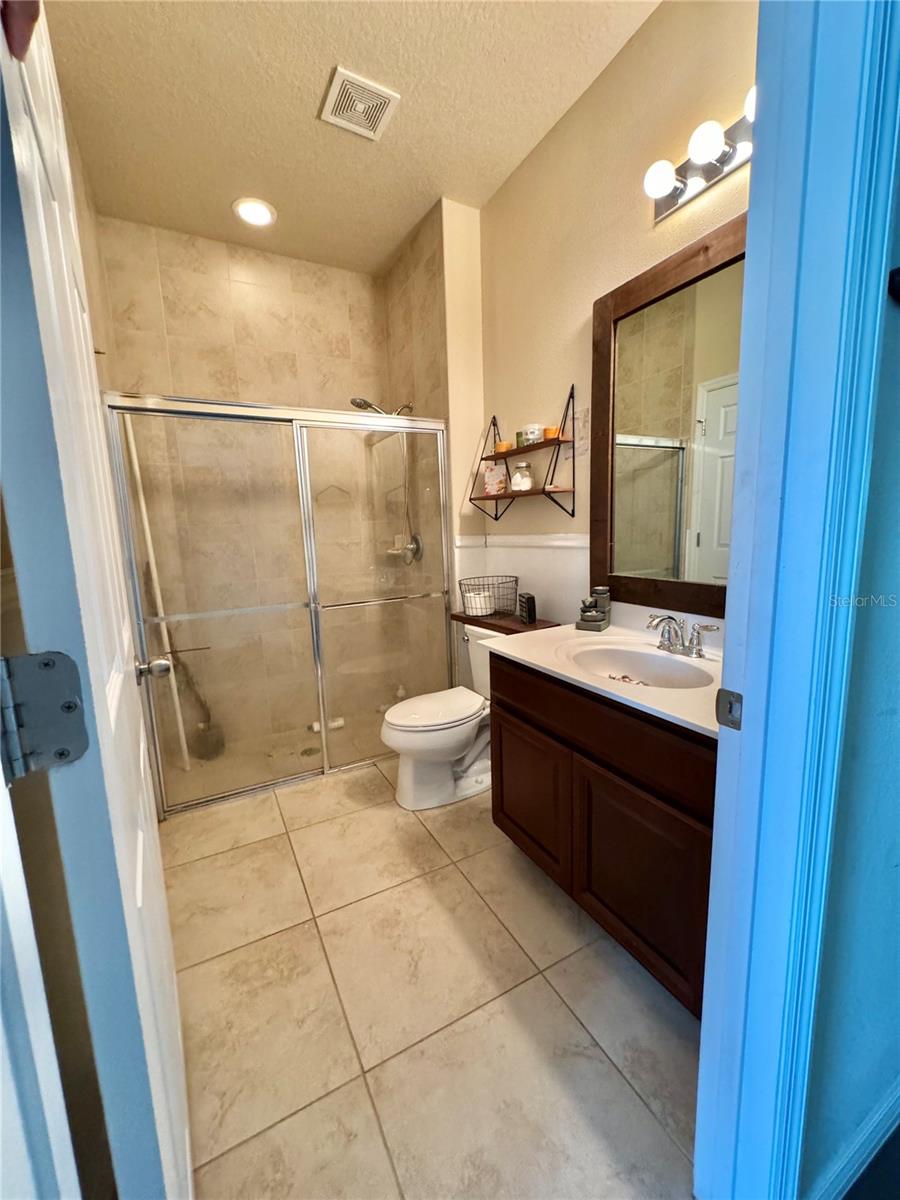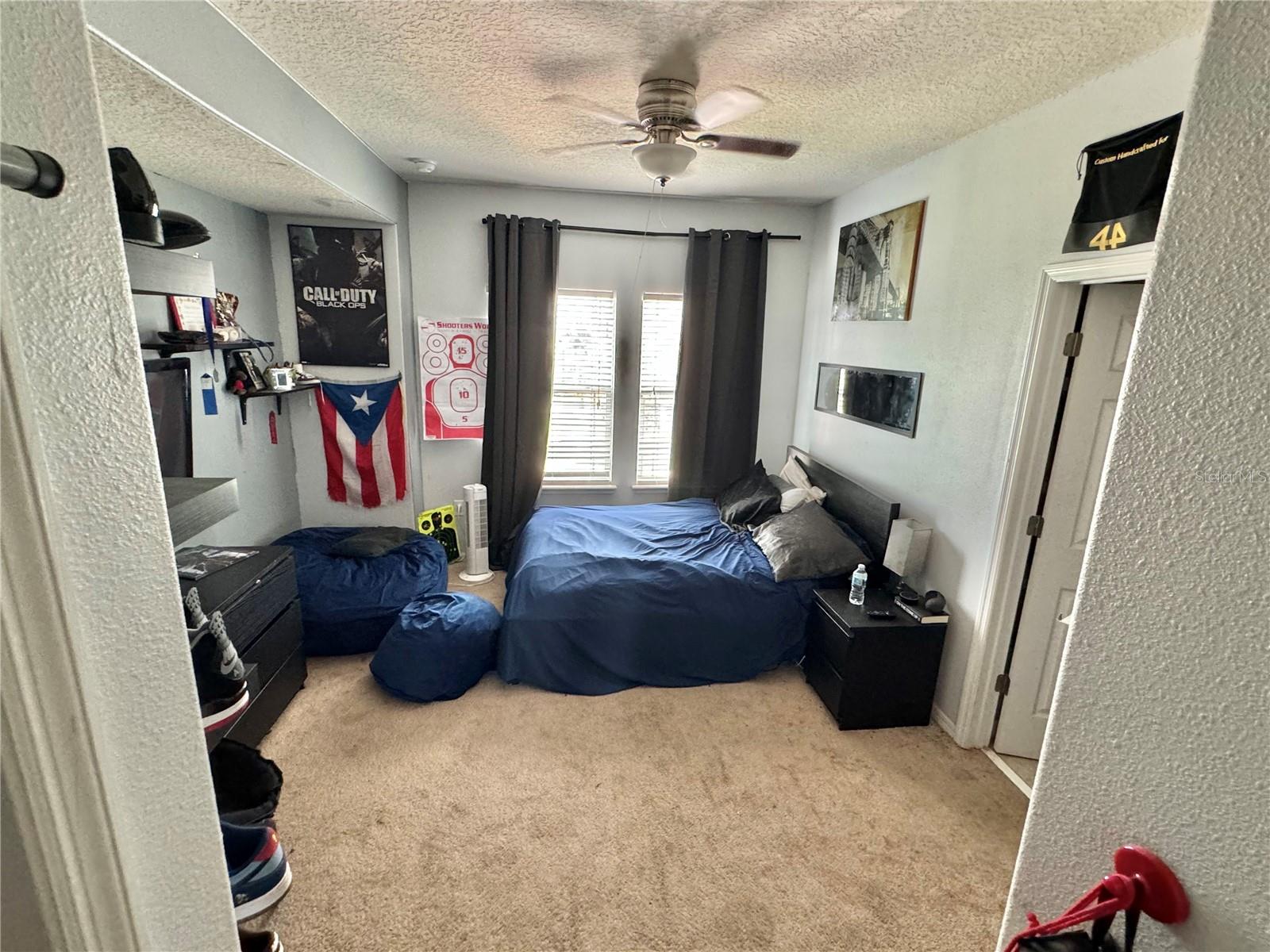 Welcome to this stunning 5-bedroom, 3-bathroom home nestled in the charming Sera Bella community. This spacious residence boasts a thoughtfully designed layout with tile flooring throughout the first floor, creating a seamless flow between the open kitchen, living room, and dining room combo. Perfect for entertaining, the first floor also features a private bedroom with its own bathroom, ideal for accommodating guests. Upstairs, you'll find four additional bedrooms, including a luxurious primary suite, along with a versatile loft area and a convenient laundry room. Step outside to the backyard, where a covered and screened patio invites you to relax and enjoy the serene outdoor space, perfect for gardening or outdoor activities. The Sera Bella community offers an array of amenities, including a refreshing pool, a playground for the little ones, and a community mailbox area. With only 99 homes in the neighborhood, you'll enjoy the close-knit atmosphere of this exclusive community. Seller is providing a $5000 credit for upstairs carpet and paint.
