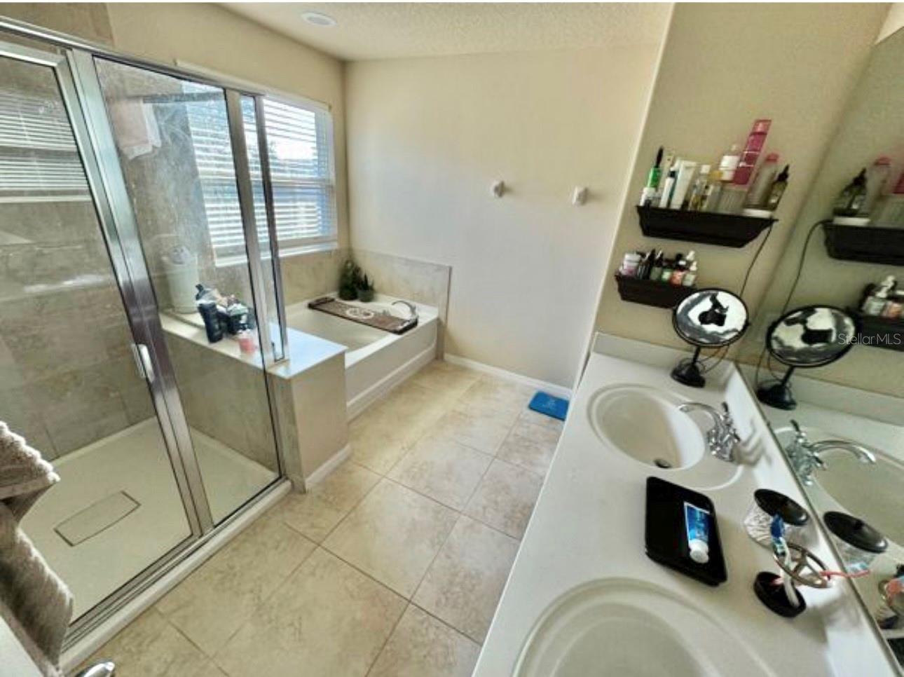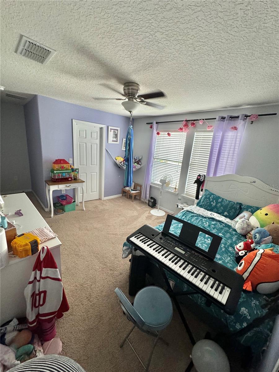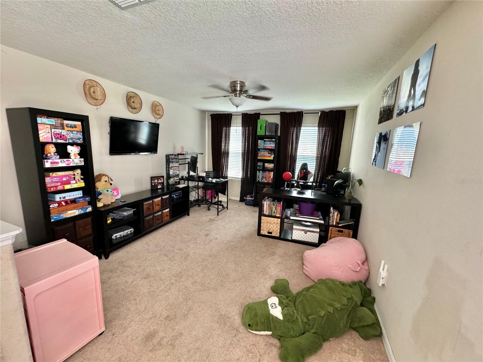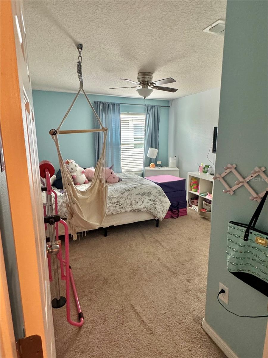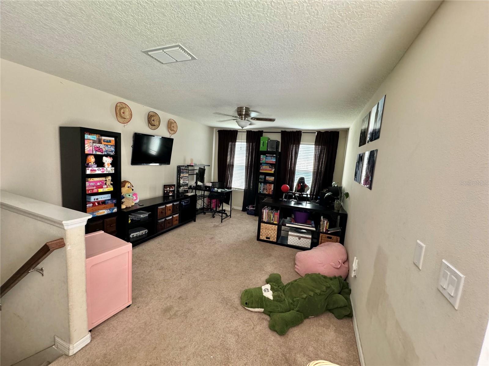 Welcome to this stunning 5-bedroom, 3-bathroom home nestled in the charming Sera Bella community. This spacious residence boasts a thoughtfully designed layout with tile flooring throughout the first floor, creating a seamless flow between the open kitchen, living room, and dining room combo. Perfect for entertaining, the first floor also features a private bedroom with its own bathroom, ideal for accommodating guests. Upstairs, you'll find four additional bedrooms, including a luxurious primary suite, along with a versatile loft area and a convenient laundry room. Step outside to the backyard, where a covered and screened patio invites you to relax and enjoy the serene outdoor space, perfect for gardening or outdoor activities. The Sera Bella community offers an array of amenities, including a refreshing pool, a playground for the little ones, and a community mailbox area. With only 99 homes in the neighborhood, you'll enjoy the close-knit atmosphere of this exclusive community. Seller is providing a $5000 credit for upstairs carpet and paint.
