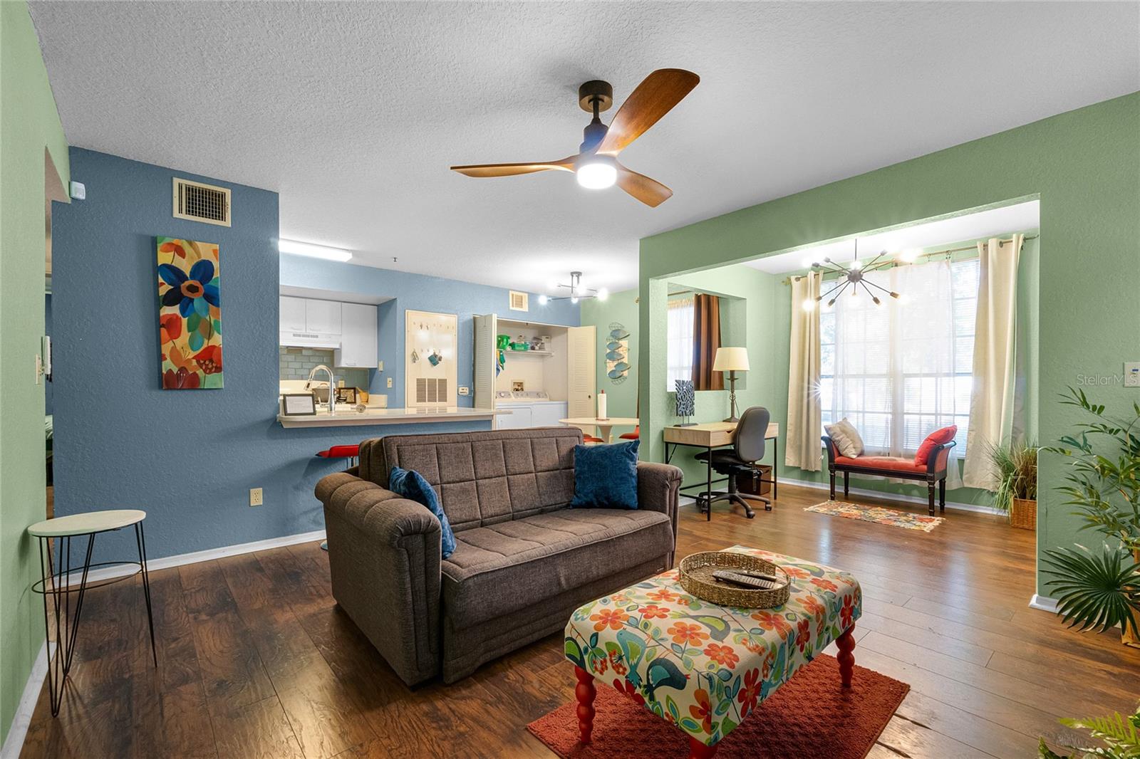 Welcome to a centrally-located, secure and inviting residence and community. With quick access to The Loop, theme parks, airport, downtown Kissimmee, hospitals and more, Columbia Arms is a charming community in the heart of Kissimmee. Your spacious 2 bedroom, 2 bath condo awaits you and has been updated throughout. All furnishings can be included if buyer prefers. Both bedrooms boast walk-in closets and additional space for a desk or private area. The main living room also has a bonus space with ample closets for additional storage needs. Kitchen counters have been replaced, as well as flooring throughout the home. Roof was replaced for entire community in 2019. Includes all furnishings.
