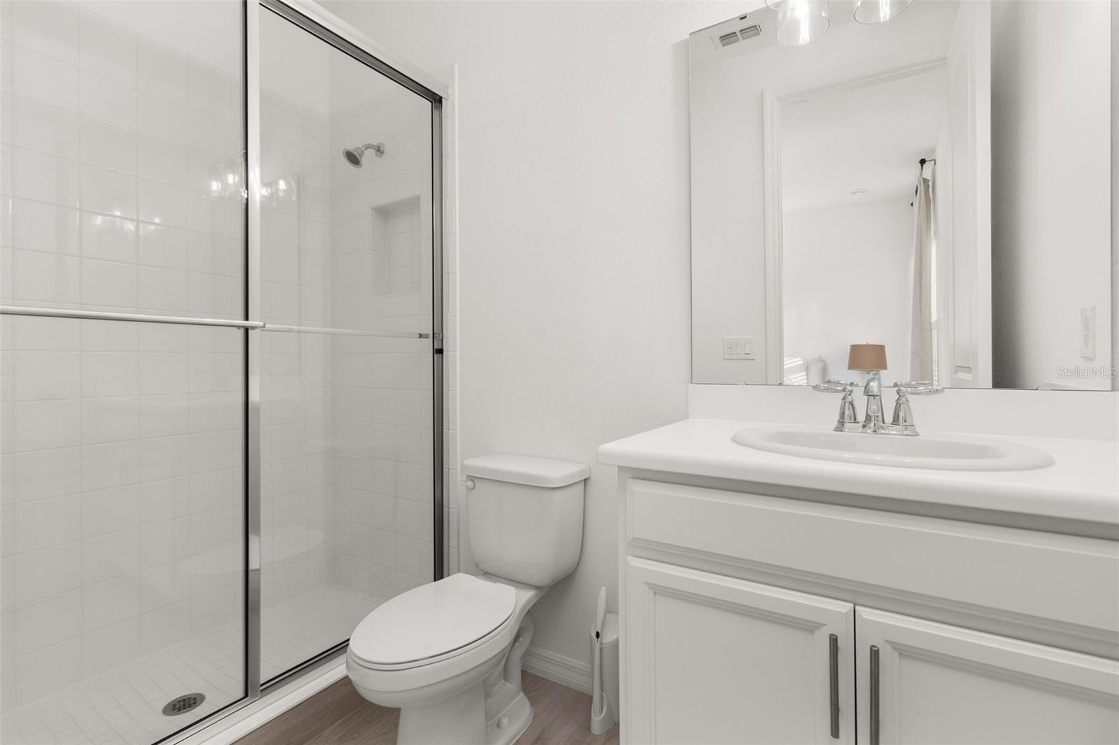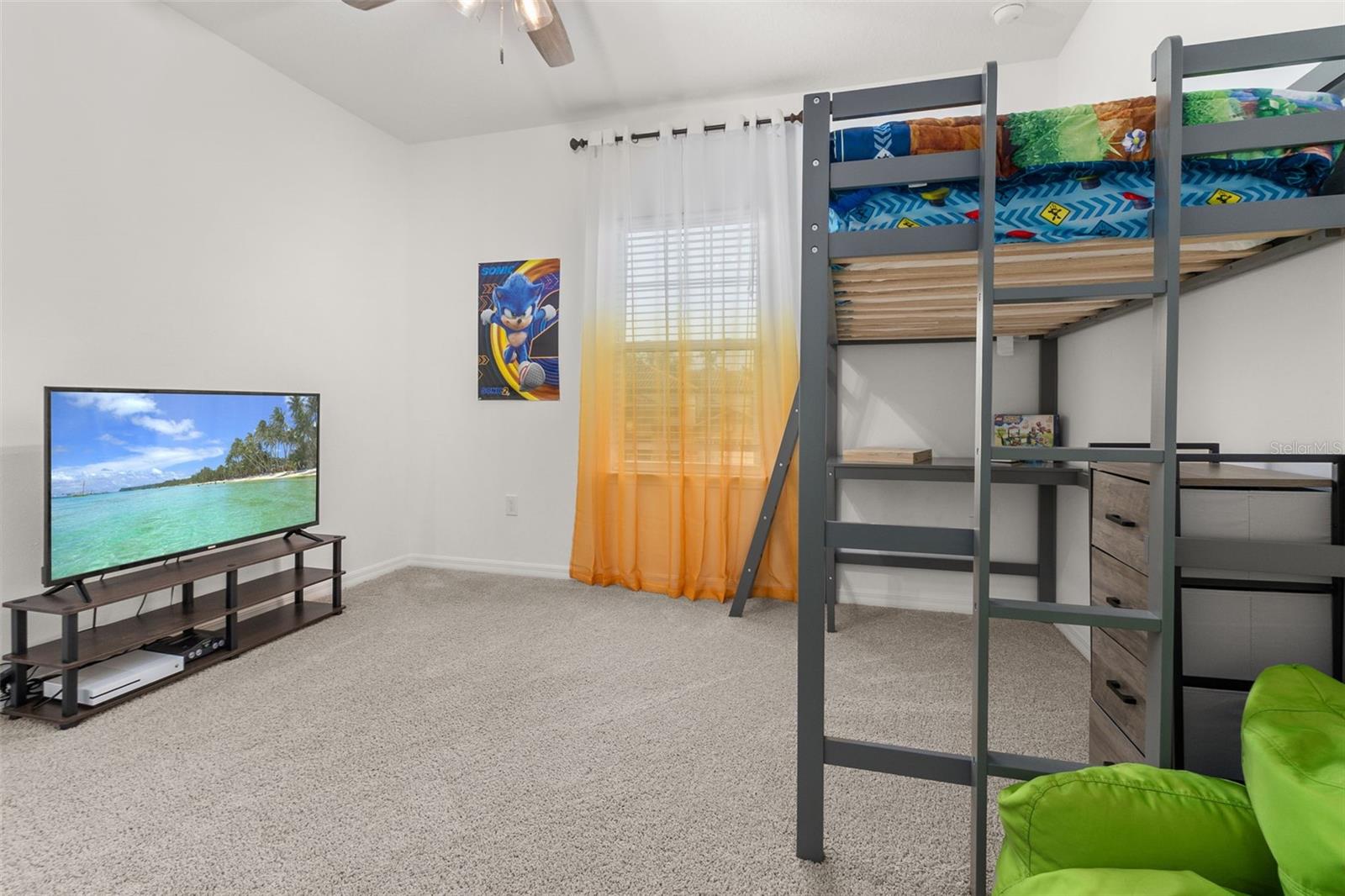 Located In The Highly Sought After Guard Gated Subdivision Of Bellalago, this Meticulously Maintained one owner piece of Florida Resort Style living residence sits on an over-sized lot, and it boasts 5 generously sized bedrooms and 5 beautifully appointed baths, offering an idyllic retreat for families and entertainers alike. Upon entering, you are greeted by tall ceilings throughout, and a foyer that flows effortlessly into an expansive open concept living space, illuminated by abundant natural light, connecting to both the dining room area and office space. The gourmet inspired kitchen is a culinary masterpiece, featuring top-of-the-line stainless steel GE Profile appliances, exquisite quartz countertops, a magnificent island, a large walk-in pantry, crown molding and expansive dinette, making it perfect for both casual dining and entertaining guests. Storage is abundant throughout this spacious home, from large closet spaces to a large walk-in storage space under the stairwell. The living room flows effortlessly into a beautifully maintained backyard, and expansive backyard patio, creating an outdoor living space and oasis, allowing for outdoor entertainment or relaxing after a long day. The downstairs primary suite is a private haven, featuring a sumptuous en-suite bathroom with dual vanity, large walk in spa like shower space, a soaking tub, and a spacious walk-in closet that caters to all your wardrobe needs. The second floor offers a large bonus room with endless possibilities—whether you envision it as a playroom, home theater, or fitness area. The second floor also features two bedrooms that share a full bath, and two additional bedrooms each with en-suite. Rounding out this home is an upgraded lighting package, window blinds, tray ceilings, under sink water treatment system, double sliding doors that lead to an extended lanai. Ceiling fans throughout and the lanai, ready for whole home water treatment system, 8’ doors throughout, UV lighting in all full baths, outlets & wiring for TV wall mounts. Furnishings, including the washer and dryer are negotiable. If you are searching for resort style living in a 24/7 staffed gated community, then the Bellalago community is definitely for you, offering a boat ramp for water access, community pools, fitness centers, shops and a mere thirty minute drive to Disney, Universal and other theme parks, promoting an engaged lifestyle. Experience the perfect blend of elegance and comfort at 3855 Bowfin Trail. Schedule your private tour today and envision your future in this extraordinary residence!