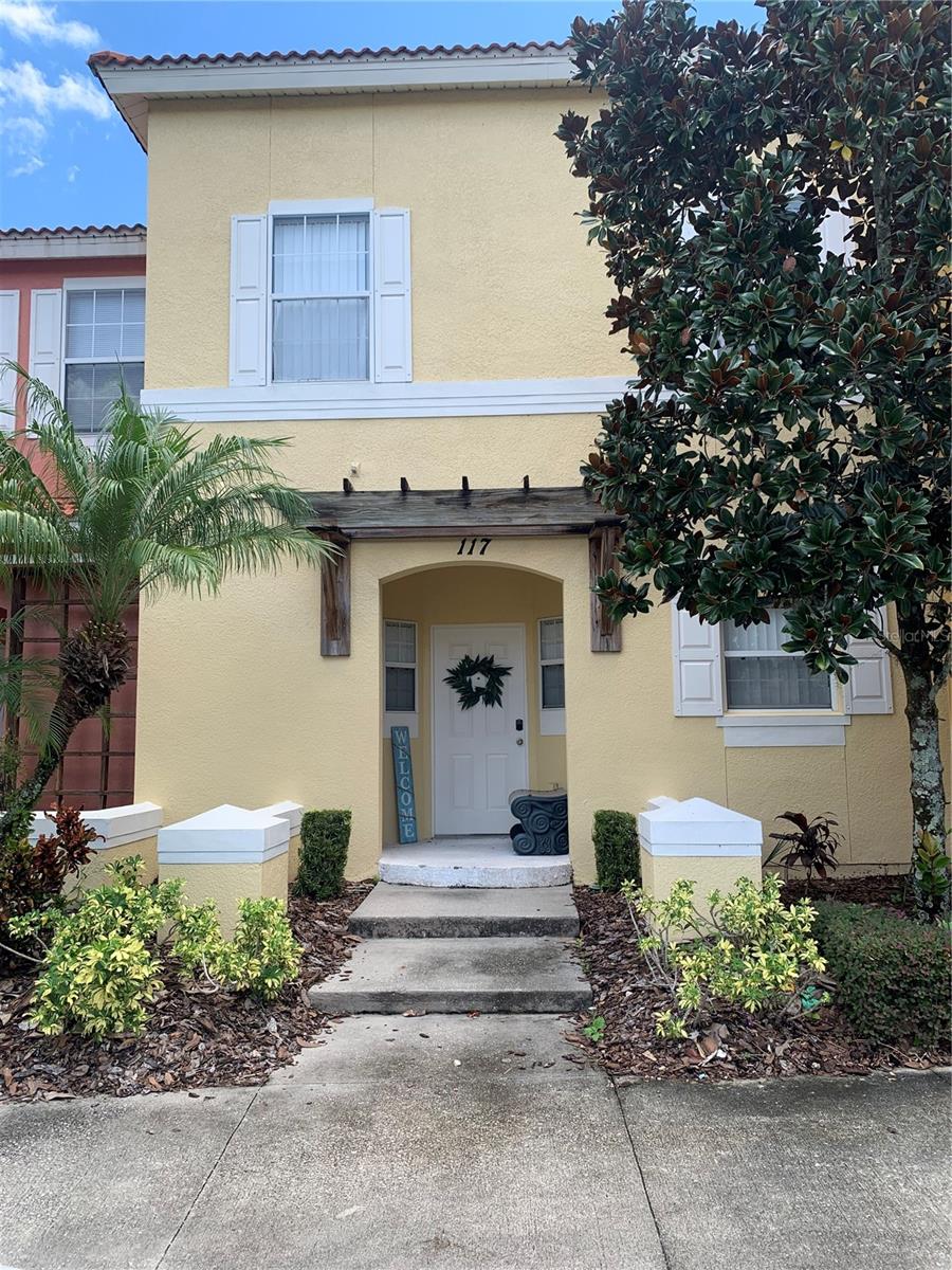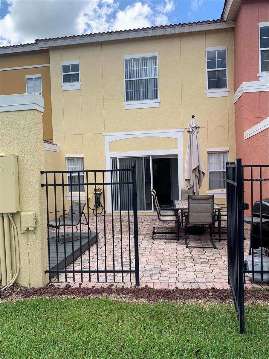 Welcome to Terre Verde Resort Style Living! This townhouse is fully furnished turnkey property, is ready immediate rental opportunity, with rental bookings that can be transferred to new owner if requested and approved. This townhouse features new flooring, Living Room & Dining Area combined, kitchen and half bathroom on the first floor, washer and dyer in laundry closet, sliding door to private spacious patio, all three bedrooms located on the second floor and 2 full baths. This Resort features a clubhouse, Fitness Center, Lounge, Tiki Bar, Pool, Hot Tub, Arcade, Fishing, Ping Pong, playground, volleyball, basketball, tennis, movie theater, all secured in this gated/guarded Resort 24/7. The Townhouse has ADT Security for easy access for the guests, and remote access control of A/C and heating.