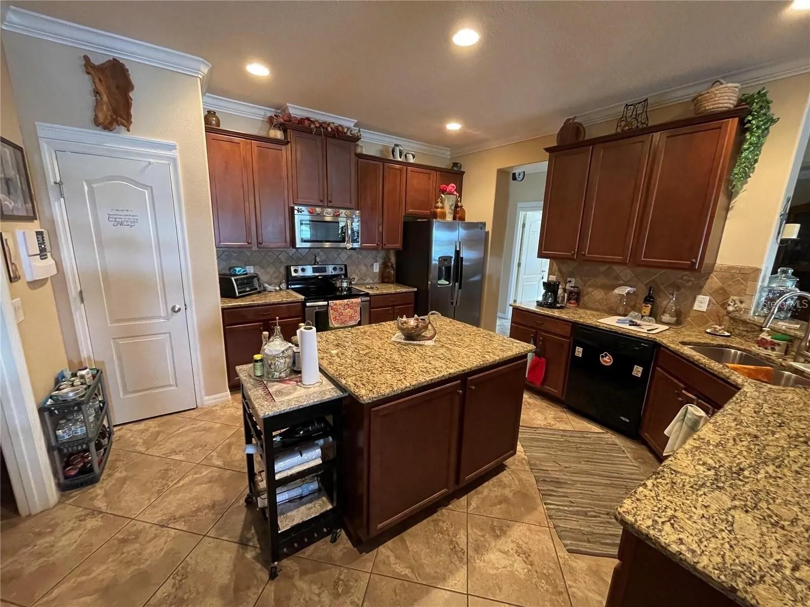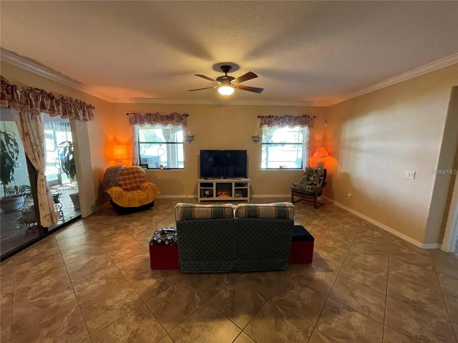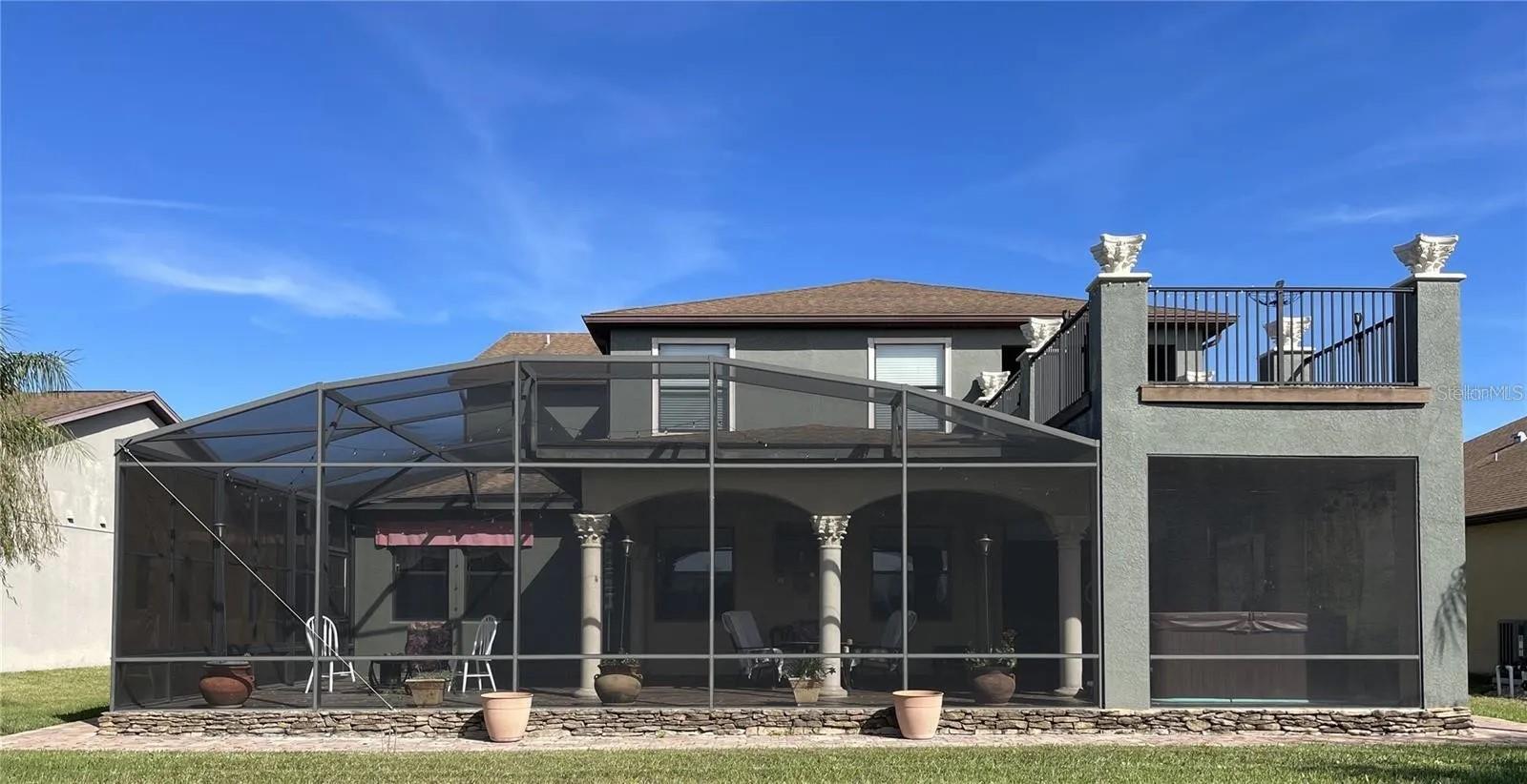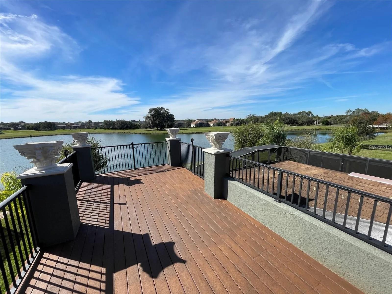 Welcome home to this RARE GEM located in the beautiful Shingle Creek area at The Oaks! This 7-bedroom (three of which are on the first floor)/5 (full) bathroom home features SPECTACULAR VIEWS of the pond and the nearby golf course. Select furniture is included in the price. The seventh bedroom can be easily converted into a study/den, and the house features one primary bedroom on the first floor (featuring a bathroom with two sinks, a shower, and a tub) and TWO additional primary bedrooms on the second floor with EN-SUITE BATHROOMS for each of them, pocket doors, and double sinks. All five bathrooms feature granite countertops and windows to provide plenty of light and fresh air. Tiling is present in the entirety of the first floor, as well as exquisite crown molding in most rooms on the first floor. All windows and sliding doors feature blinds, and an INTERCOM SYSTEM allows owners and visitors alike to listen to music and communicate in specific rooms (including the back porch). DUAL A/C allows owners to control the temperature on each floor separately. An expansive, CUSTOM-BUILT BACK PORCH features CORINTHIAN COLUMNS, stone flooring, open space overlooking the pond (and amazing sunsets!), and an above-ground spa to enjoy and relax in. Sturdy VINYL WINDOWS have been installed on either side of the back porch to provide additional protection from the elements. A paver walkway surrounds the entirety of the back porch as well as the right side of the house. On the second floor, a CUSTOM-BUILT BALCONY EXTENSION (rare to find even in new homes) featuring six additional Corinthian columns was added to provide sweeping vistas of the pond and golf course. Gutters were added to all four sides of the home, the exterior was completely repainted in 2022, and all interior rooms were repainted in December 2023. New sprinklers were installed in December 2023. The home is located less than two miles from Walgreens, Publix, Ross, and other stores in the area. The property is approximately 30-35 minutes away from the Walt Disney World Resort, SeaWorld Orlando, and Universal Orlando Resort, and many other entertainment offerings in the area.