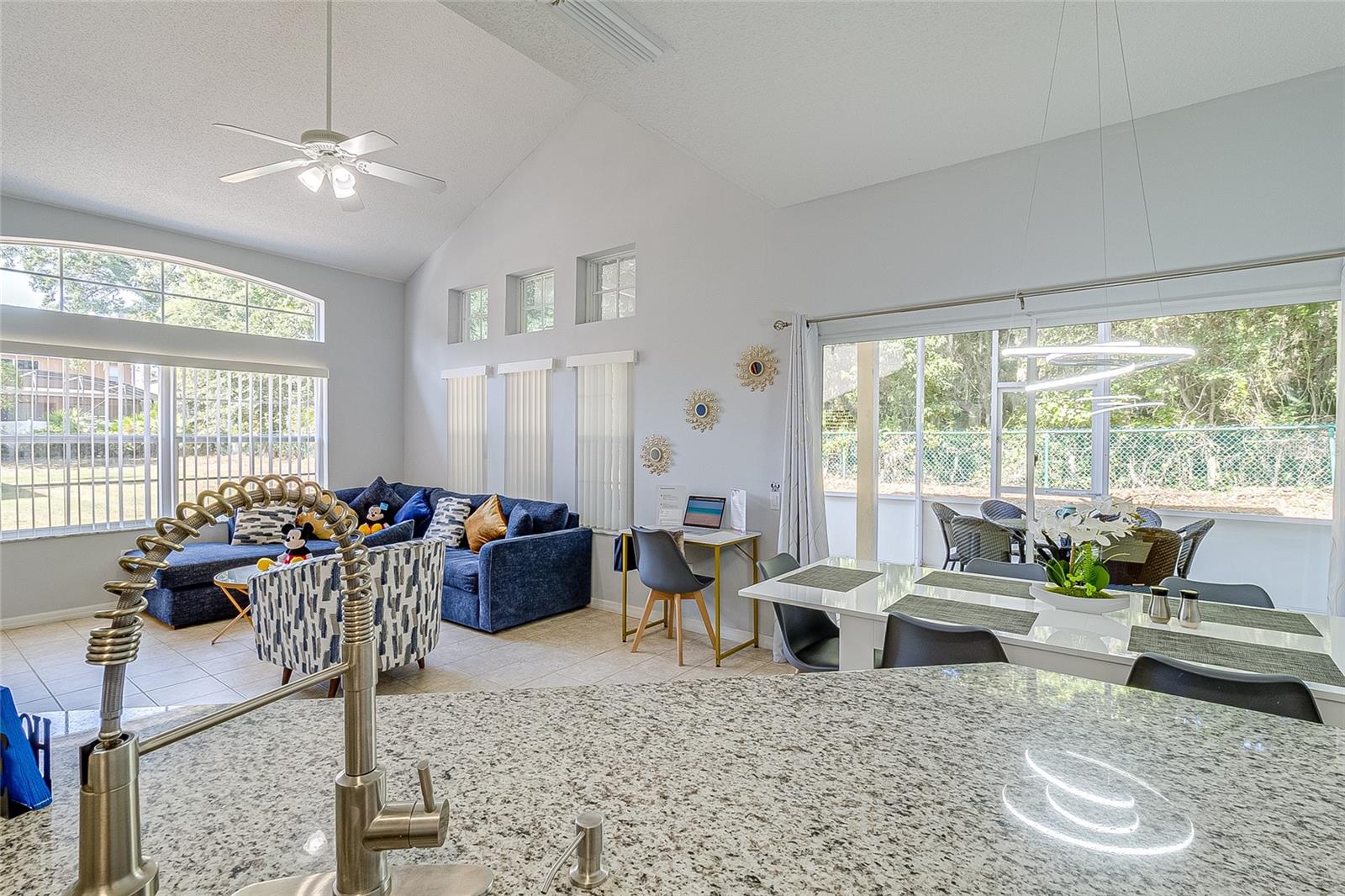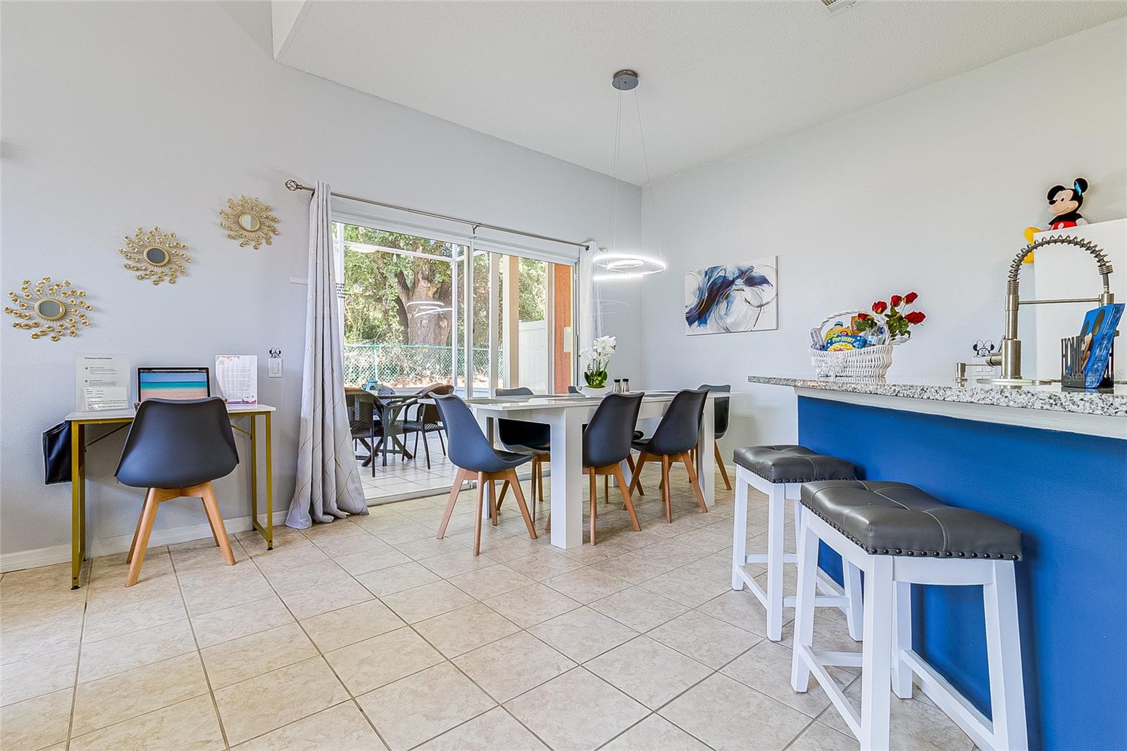 Welcome to this stunning fully furnished 4-bedroom, 3.5-bath townhome located in a highly sought-after, short-term rental-approved community in Kissimmee. Perfectly designed for comfort and convenience, this property is ideal for investors or homebuyers looking for a low-maintenance lifestyle just minutes from major shopping, dining, Disney parks, and Orlando’s top attractions. The thoughtfully furnished living room includes a sectional corner sofa and a coffee table, creating a cozy space for relaxation. The modern kitchen, overlooking the family room, is fully equipped with all appliances and a coffee maker, kettle, sandwich maker, toaster, waffle maker, and a complete set of dinnerware. The dining room features a dining table with six chairs and two bar stools. The townhome boasts 4 spacious bedrooms, including 2 with en-suite bathrooms and walk-in closets. Furnishings include 3 king beds, 2 twin beds, 7 nightstands, and a cabinet, making it ready to accommodate your family or guests. An office area with a desk is also included, along with five televisions placed throughout the home. The upstairs master bedroom offers a private balcony, perfect for enjoying your morning coffee or unwinding after a long day. The home also features a full-sized laundry room with a washer and dryer for added convenience. Step outside to enjoy the outdoor garden table with six chairs, ideal for dining or relaxing. Located in a 24-hour gated community, this townhome offers resort-style amenities including two pools, a fitness center, a water play area, two playgrounds, a Lake-Beach area, Tennis & Basketball courts, a sandy Volleyball court, ping pong tables, Picnic & BBQ areas, and a scenic Nature Trail. Whether you’re seeking a low maintenance lifestyle or a profitable rental property, this property offers everything you need and more. Don’t miss the opportunity to own this incredible home in the heart of Kissimmee!