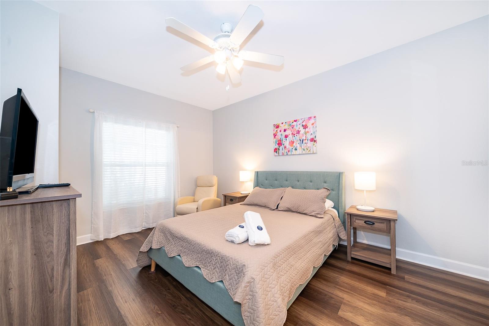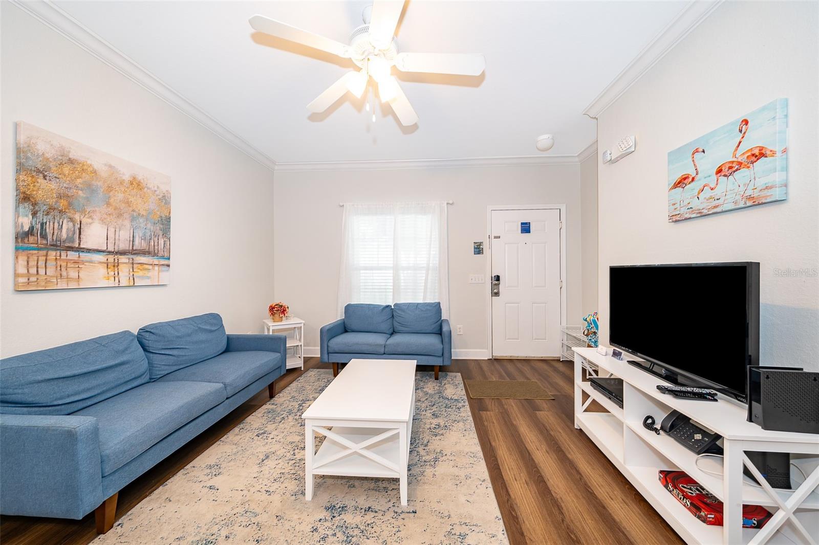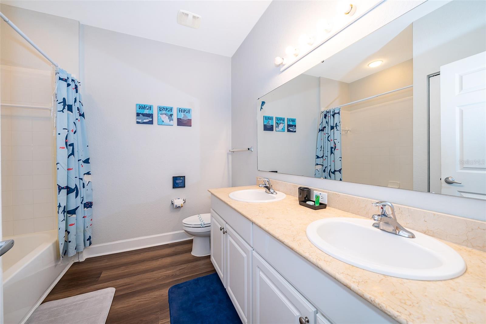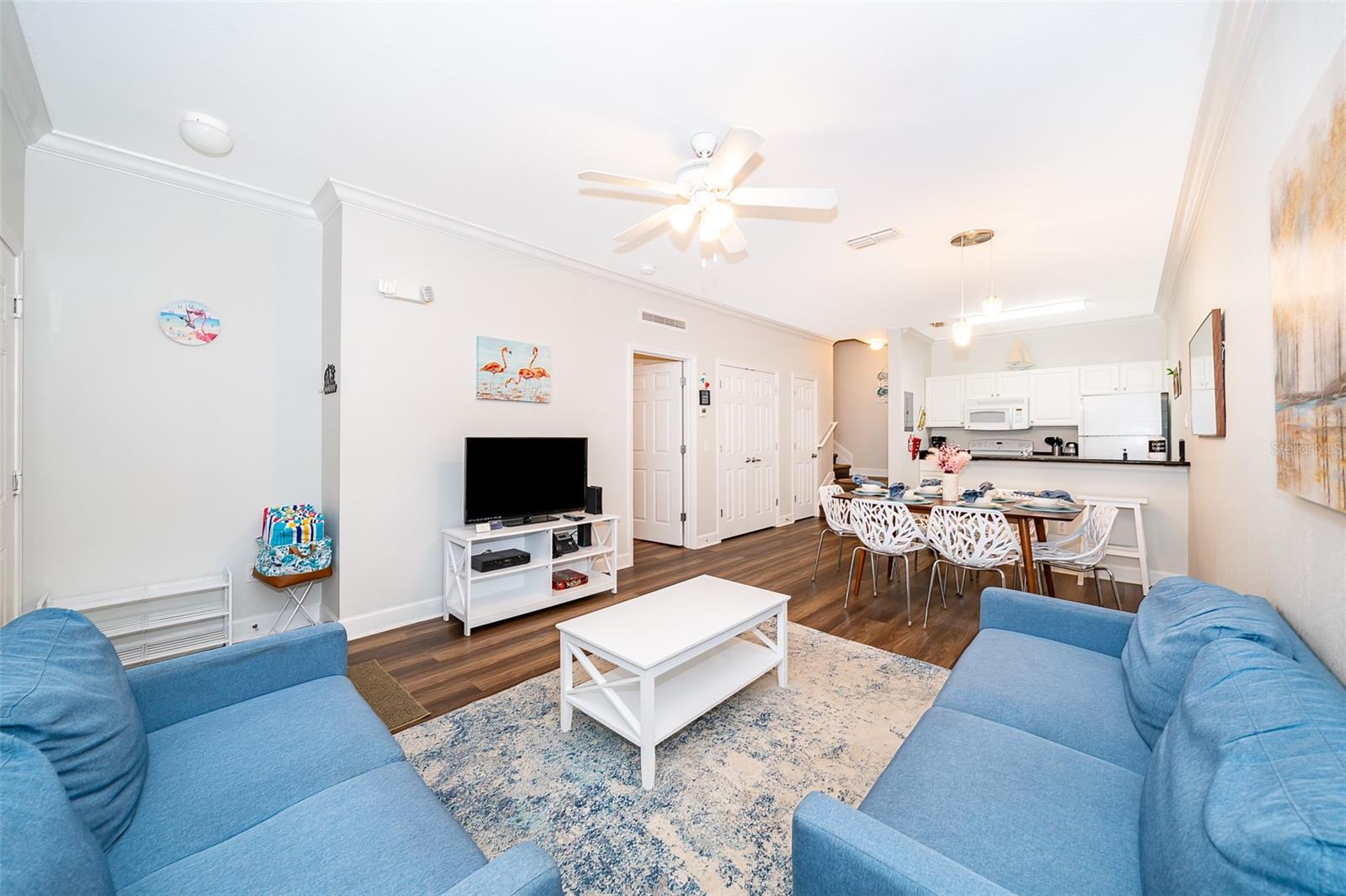 Discover this inviting 3-bedroom, 2-bathroom townhome in the sought-after Lucaya Village Resort, perfectly positioned just moments from major theme parks, shopping areas and many restaurants. Whether you're looking for a lucrative investment property for short or long-term rentals, or a beautiful primary residence, this home fits the bill. Nestled in a secure, gated community with lush tropical landscaping, this townhome offers a spacious first-floor living and dining area, an open kitchen, and a master suite complete with a luxurious en suite bathroom featuring a bathtub and dual sinks. Upstairs, you'll find two additional well-appointed bedrooms and a shared bathroom. Recent upgrades enhance the home's appeal, including new large mirrors in both bathrooms, fresh LVP flooring throughout, a new AC compressor, a new dishwasher, GE washer/dryer, and nearly-new furniture. Plus, all major appliances—range, microwave, and refrigerator—are included. The community itself offers resort-style amenities such as a clubhouse with a business center, a fitness room, a sparkling pool, a hot tub, an indoor playroom, video game stations, concierge services, and an on-site convenience store. The HOA fees are comprehensive, covering cable, phone, internet, exterior maintenance, landscaping, and building upkeep. This property is a turnkey investment opportunity, fully equipped and ready to generate income on Airbnb or to serve as your dream home!