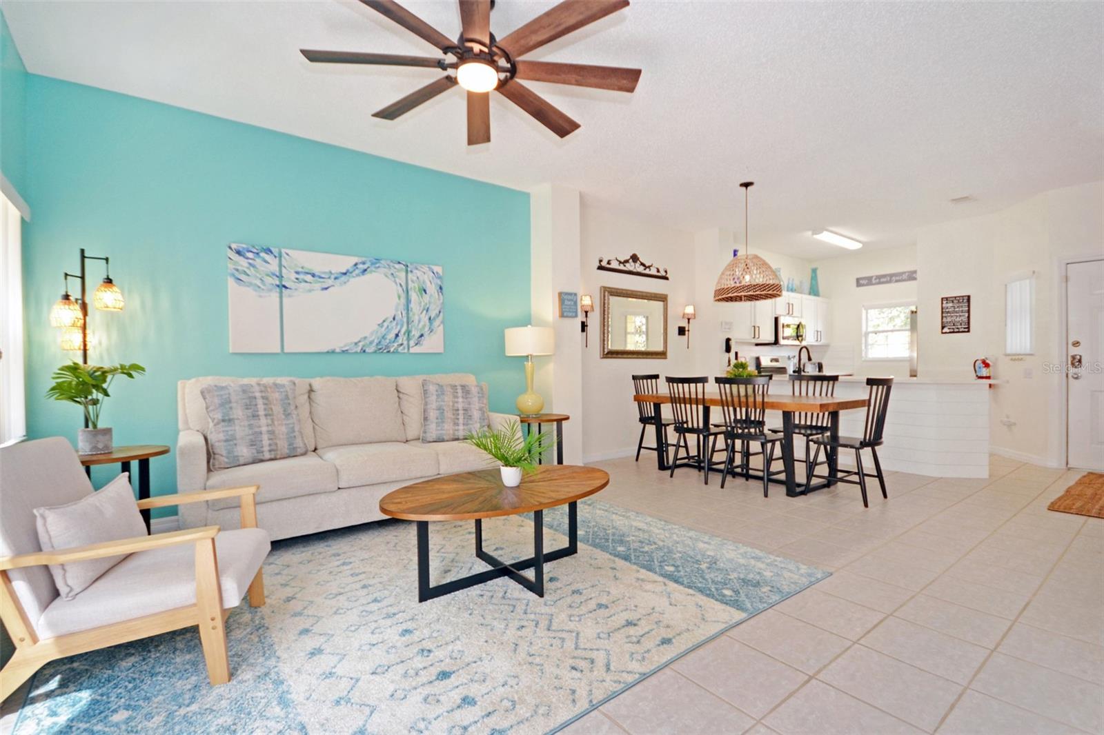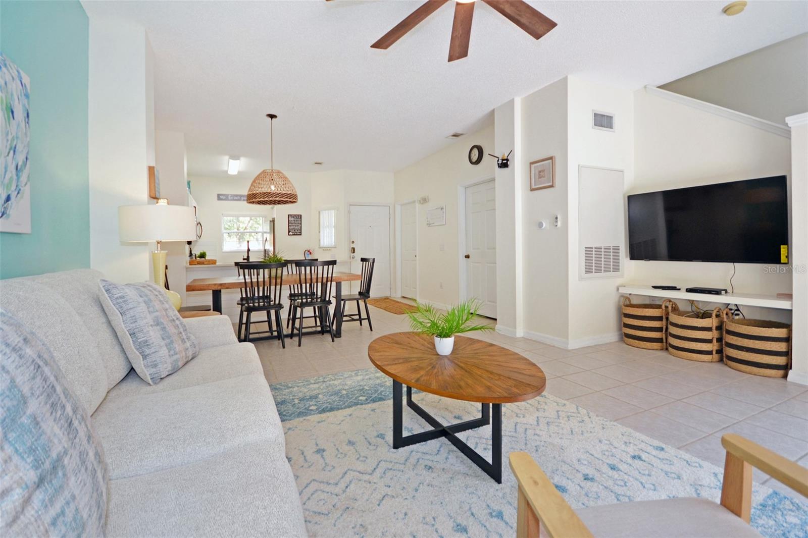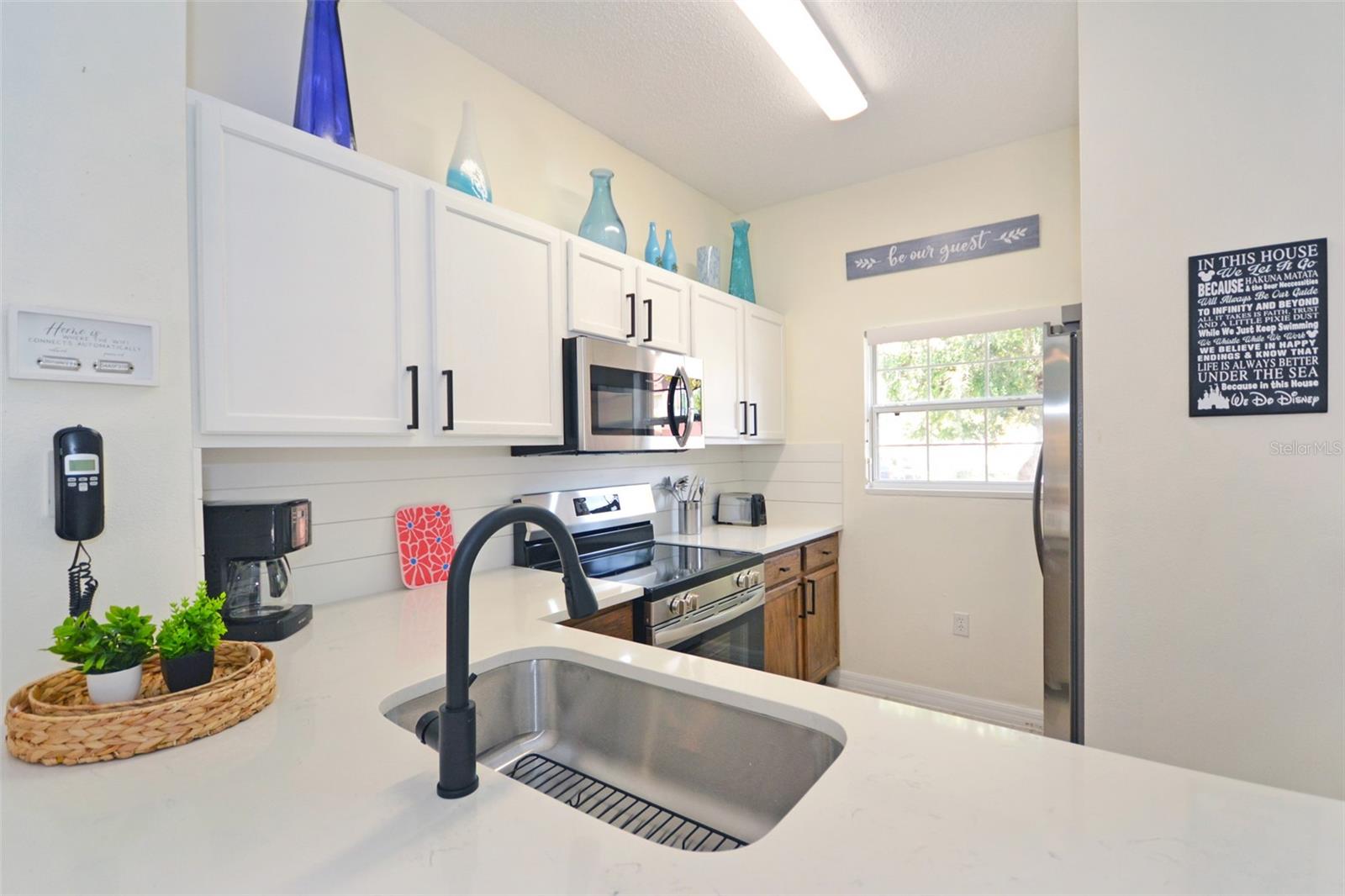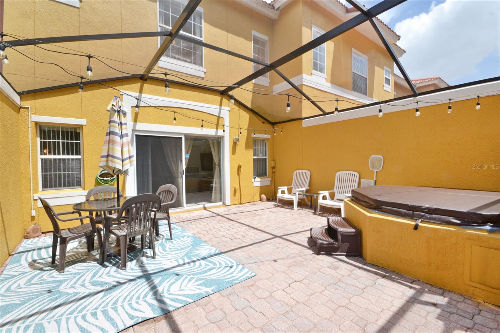PRICE REDUCTION! Welcome to this NEWLY RENOVATED and PROFESSIONALLY DESIGNED 3-bedroom townhome in the sought-after Terra Verde Resort. In the past two months, this home has had a complete overhaul to create your future dream home! As you step inside you will be welcomed into the newly renovated kitchen with quartz countertops and BRAND NEW premium stainless-steel appliances! Through into the open plan main living area, you will notice the relaxed coastal feel design that extends through the property, with a selection of new furniture, fittings and decor! Upstairs you will find a King-size Master bedroom with NEWLY REMODELLED en-suite bathroom. Both bathrooms have been updated with brand new luxury vinyl tile, shiplap wall and designer sink and fittings; these luxurious spaces are sure to make you feel at home, or immediately catch the eye of potential rental guests! You will also find two further bedrooms; the first is a Mickey themed Twin room, a please-all favorite to attract renters, and a coastal themed Queen room. This property is also a RARE FIND as it is one of very few homes to feature a fully screened courtyard! It also boasts a serene view of conservation area, with no rear neighbors, and is the perfect place to enjoy the Florida sunshine with its south-facing location! Furnished with a hot tub, with brand new cover, and sparkling string lighting it is the perfect evening oasis. This home is situated on one of the quieter, no through traffic, areas in the Resort but still within walking distance from the amazing facilities the Resort has to offer. With a stunning pool area, Tiki bar, tennis, volleyball and basketball courts all situated on the edge of a beautiful private lake, this is Resort living at its finest!