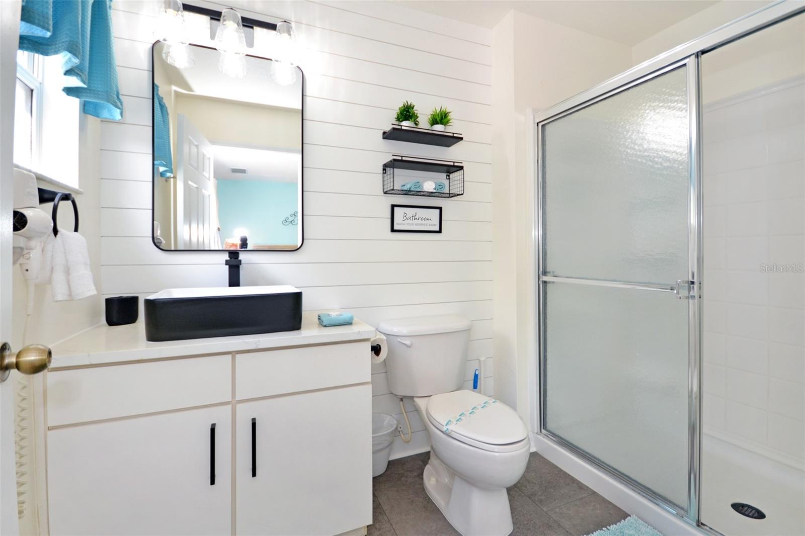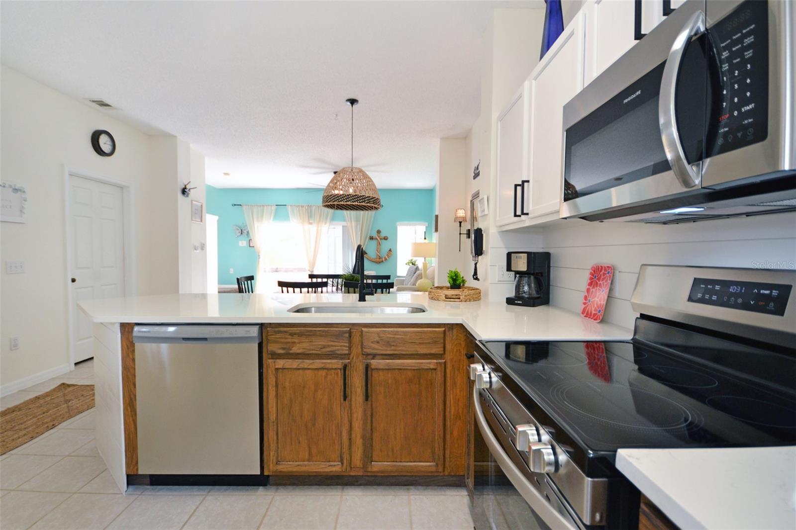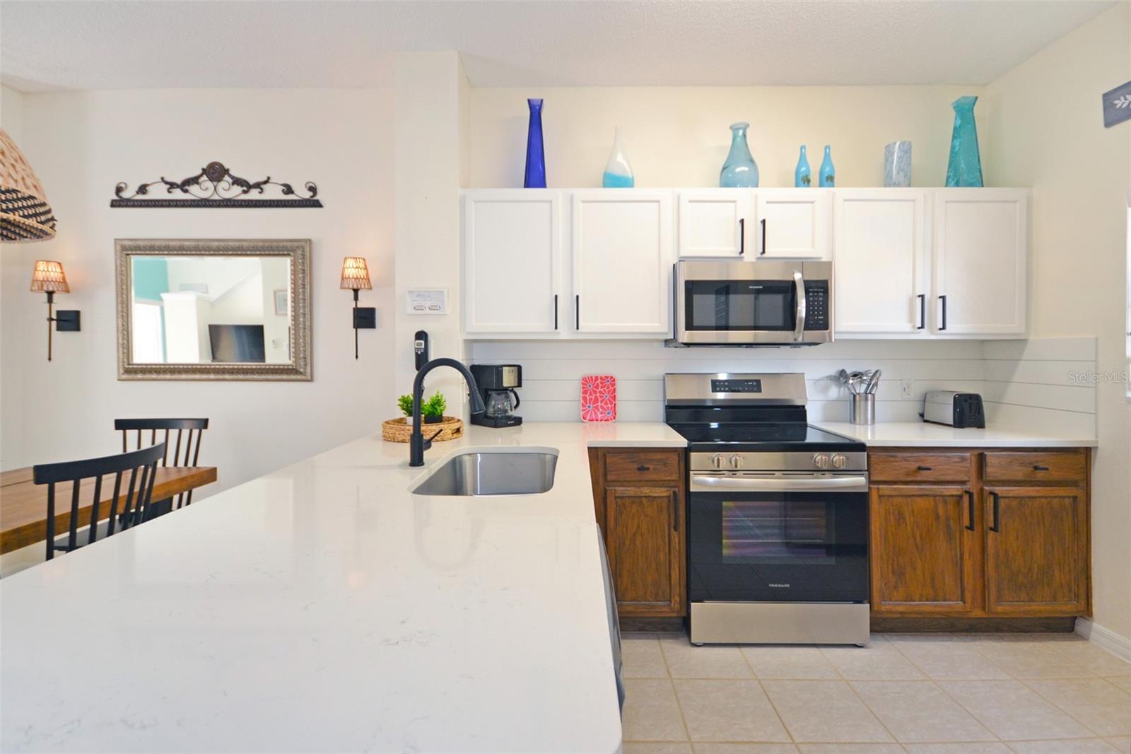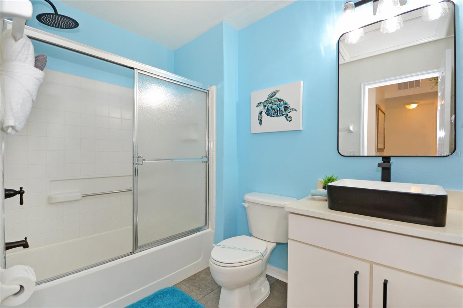 PRICE REDUCTION! Welcome to this NEWLY RENOVATED and PROFESSIONALLY DESIGNED 3-bedroom townhome in the sought-after Terra Verde Resort. In the past two months, this home has had a complete overhaul to create your future dream home! As you step inside you will be welcomed into the newly renovated kitchen with quartz countertops and BRAND NEW premium stainless-steel appliances! Through into the open plan main living area, you will notice the relaxed coastal feel design that extends through the property, with a selection of new furniture, fittings and decor! Upstairs you will find a King-size Master bedroom with NEWLY REMODELLED en-suite bathroom. Both bathrooms have been updated with brand new luxury vinyl tile, shiplap wall and designer sink and fittings; these luxurious spaces are sure to make you feel at home, or immediately catch the eye of potential rental guests! You will also find two further bedrooms; the first is a Mickey themed Twin room, a please-all favorite to attract renters, and a coastal themed Queen room. This property is also a RARE FIND as it is one of very few homes to feature a fully screened courtyard! It also boasts a serene view of conservation area, with no rear neighbors, and is the perfect place to enjoy the Florida sunshine with its south-facing location! Furnished with a hot tub, with brand new cover, and sparkling string lighting it is the perfect evening oasis. This home is situated on one of the quieter, no through traffic, areas in the Resort but still within walking distance from the amazing facilities the Resort has to offer. With a stunning pool area, Tiki bar, tennis, volleyball and basketball courts all situated on the edge of a beautiful private lake, this is Resort living at its finest!