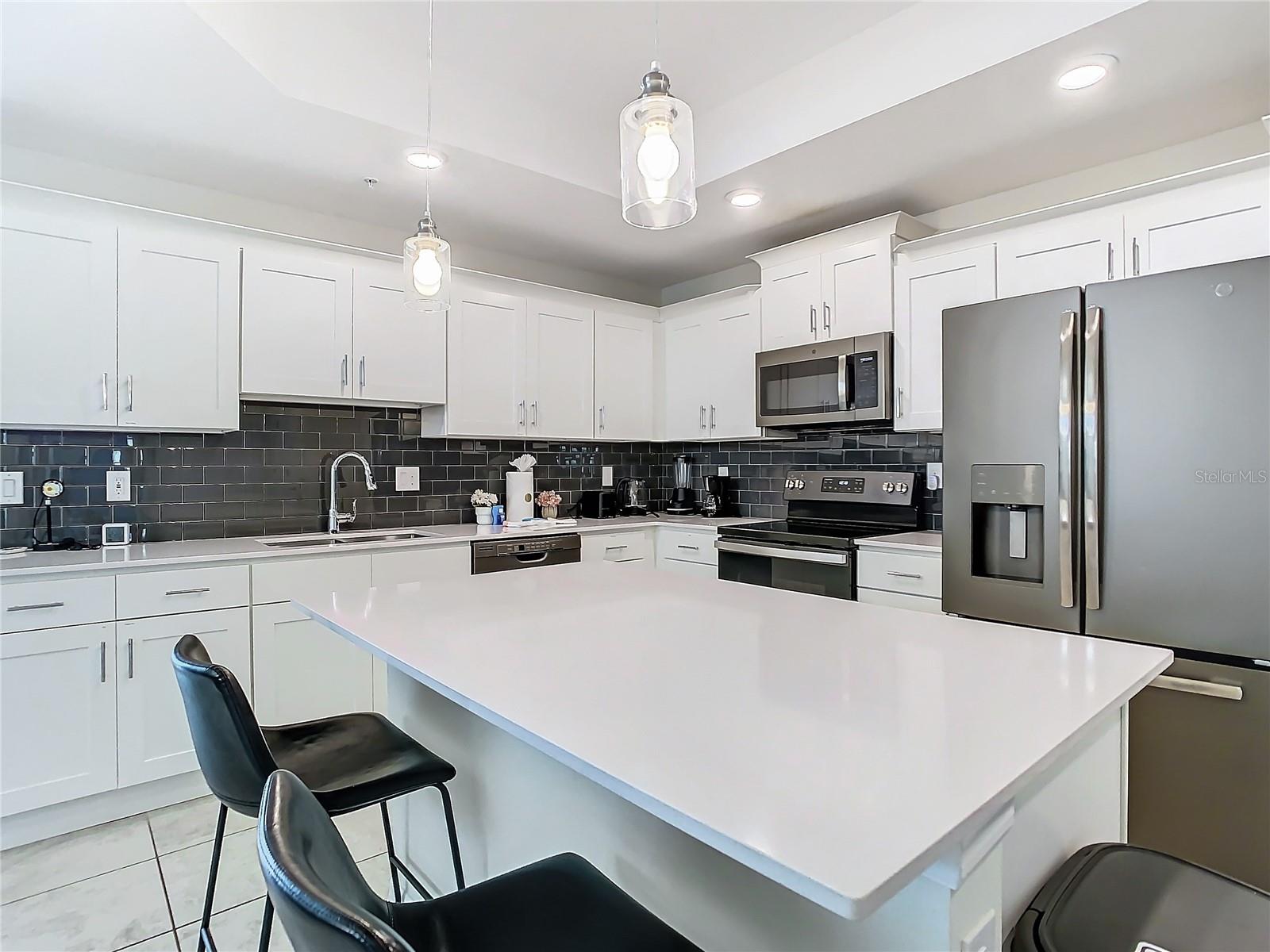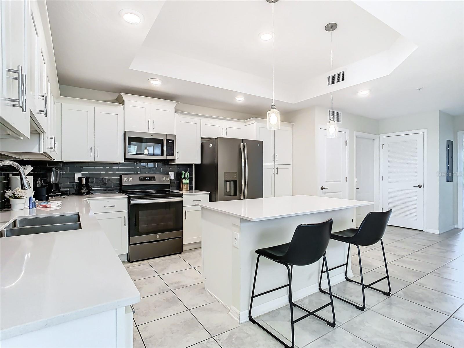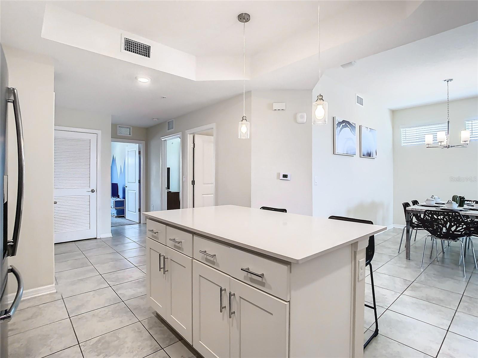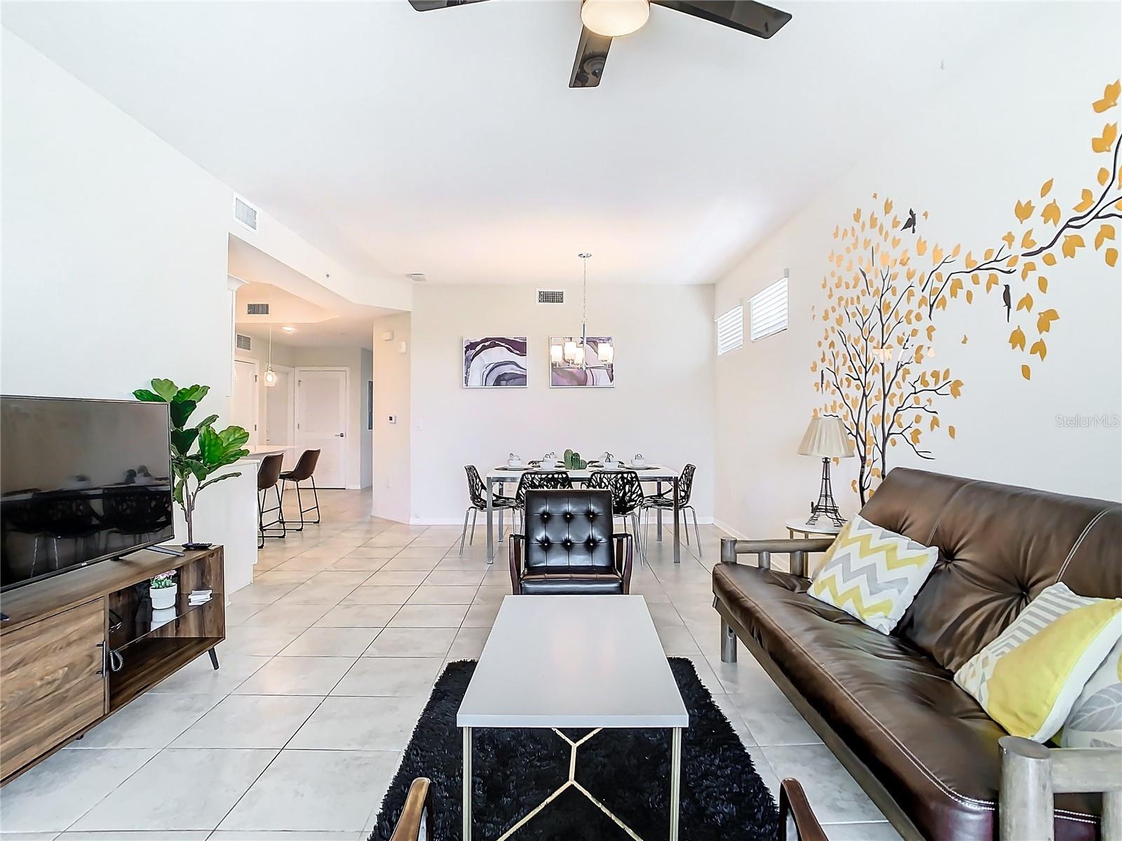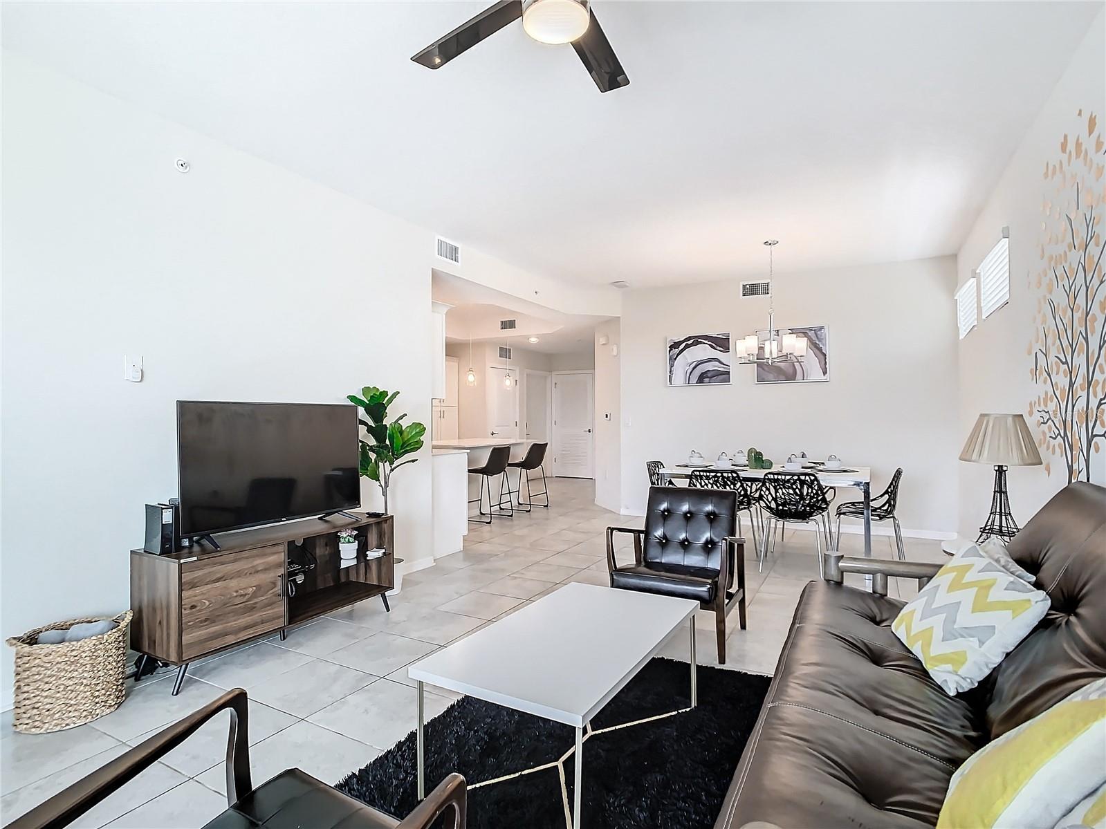 AMAZING CONDO IN THE BEST LOCATED VACATION RENTAL COMMUNITY! This corner unit has 3 bedrooms and 2 bathrooms, quartz countertops, 42 "cabinets, stainless steel appliances, a beautiful water view and is turn-key. It is fully-furnished down to the linens and silverware! This unit also comes with a huge storage closet located across from the front door. Storey Lake Resort is zoned for short term rentals and only 10 minutes away from Walt Disney World, 10 minutes away from Disney Springs, 25 minutes from the Orlando International Airport, and 15 minutes from SeaWorld, Universal Studios and the Premium Outlets! Storey Lake features incredible amenities. Enjoy the Resort-style pool with a lazy river, waterslides, splash pad, beach volleyball, basketball court, and fitness center. There is an on-site restaurant/tiki bar located at the main pool. Also available for a minimal fee is a mini-golf course and kayak rentals. So many fun things to do here!! CDD included in total taxes.