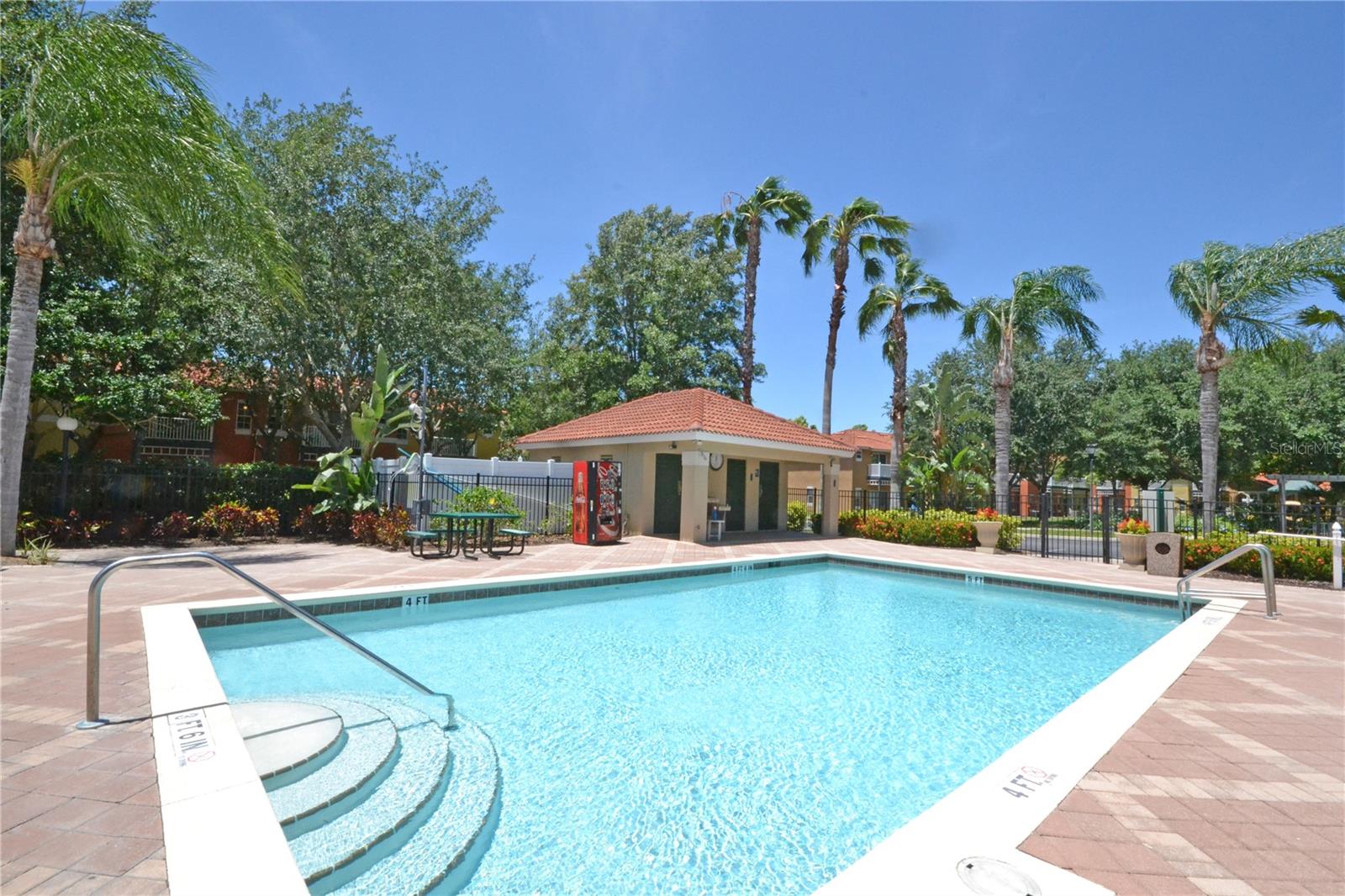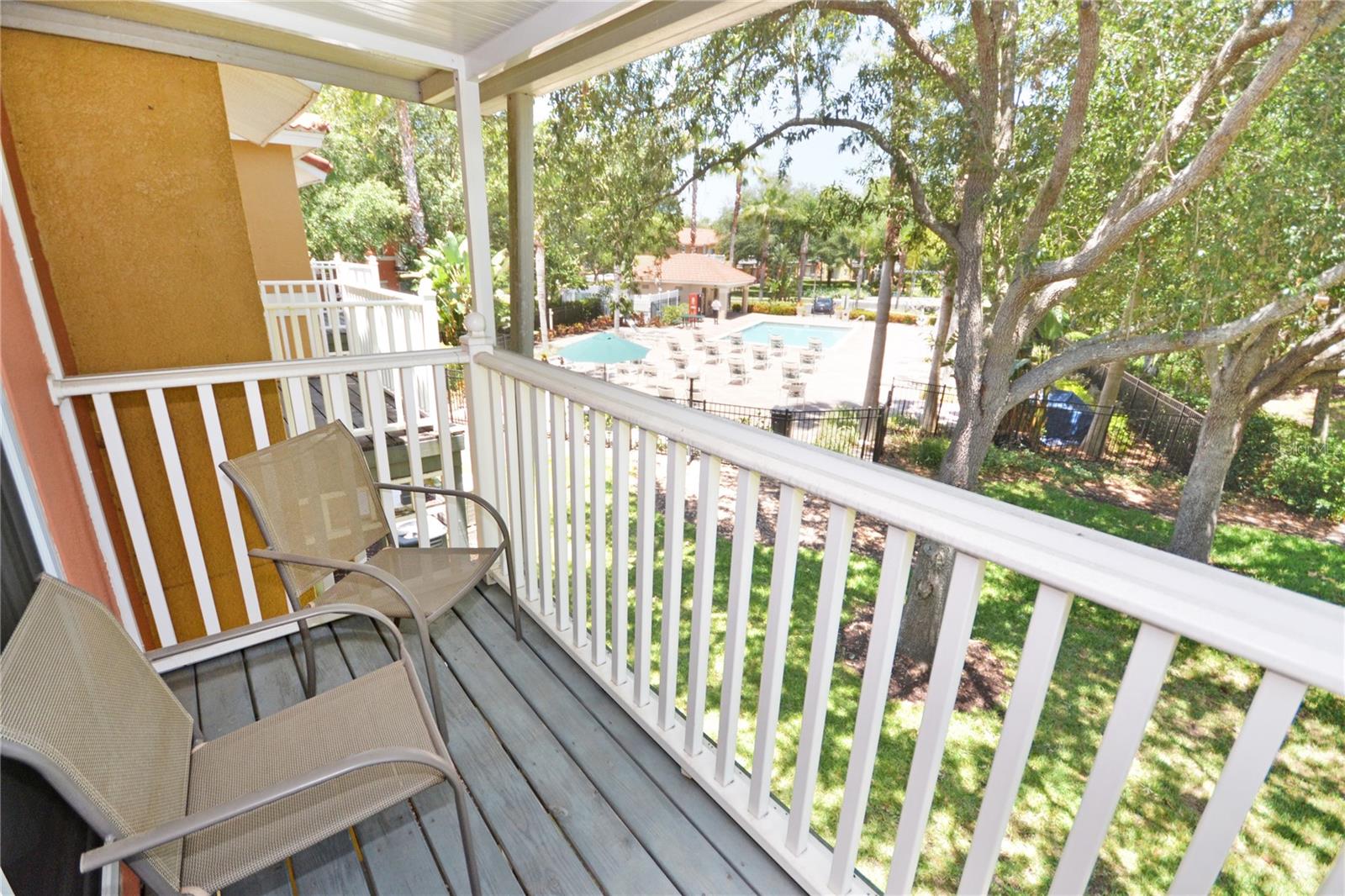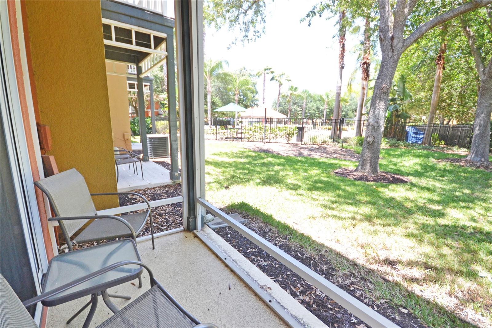 PRICE REDUCTION! Searching for a home to enjoy fun in the sun, that also offers an atmosphere of peace and tranquility? Look no further than this homely 4-bedroom end townhome nestled in the smaller, separately gated section, of the stunning Emerald Island Resort (which boasts its own pool and spa just a few steps away)! With a BRAND NEW AC SYSTEM AND WATER HEATER, you are all set to rent out or reside from day one! A RARE FIND – this home has three separate screened-in outdoor seating spaces! As you arrive at the property you are met with a lovely private pathway up to the home, lined with beautifully manicured bushes, flowers and trees. This leads to a screened-in front porch area perfect for enjoying a morning coffee and a moment of solitude before you start the day. As you enter the home you are first welcomed into a hallway which opens out into the bright and airy main living space. With the multitude of large windows and sliding doors spanning the area, and the high sloping ceiling, the home boasts gorgeous natural light. The kitchen has recently been updated with a granite countertop, double stainless-steel sink and gleaming marble-look tiling which gives the home a luxurious feel. It also features breakfast bar seating for those busy mornings. The dining area is situated adjacent to the sliding doors so that you have a beautiful view out to the green area behind. These doors open out onto a rear porch area, which is also fully screened to prevent any bugs. On the main floor you will find one spacious bedroom with a walk-in closet, ensuite bathroom and its own mini fridge and countertop space. This bedroom also has its own private entrance from the front porch. Upstairs you will find the primary bedroom featuring a walk-in closet and ensuite bathroom. This room has the fantastic feature of a private screened balcony with views out to the Resort’s pool; perhaps sit and watch family members splash in the pool whilst also enjoying time to yourself with a good book? There are a further two bedrooms upstairs that share a family bathroom. Emerald Island Resort is perfectly situated to explore the best of Central Florida, whilst also having easy access to major roads for commuting. The Resort not only features the usual amenities of a pool, spa, sports courts, sauna etc. but also boasts an on-site Tiki Bar and a stunning nature trail (pathway leading through 11 acres of picturesque woodland)!