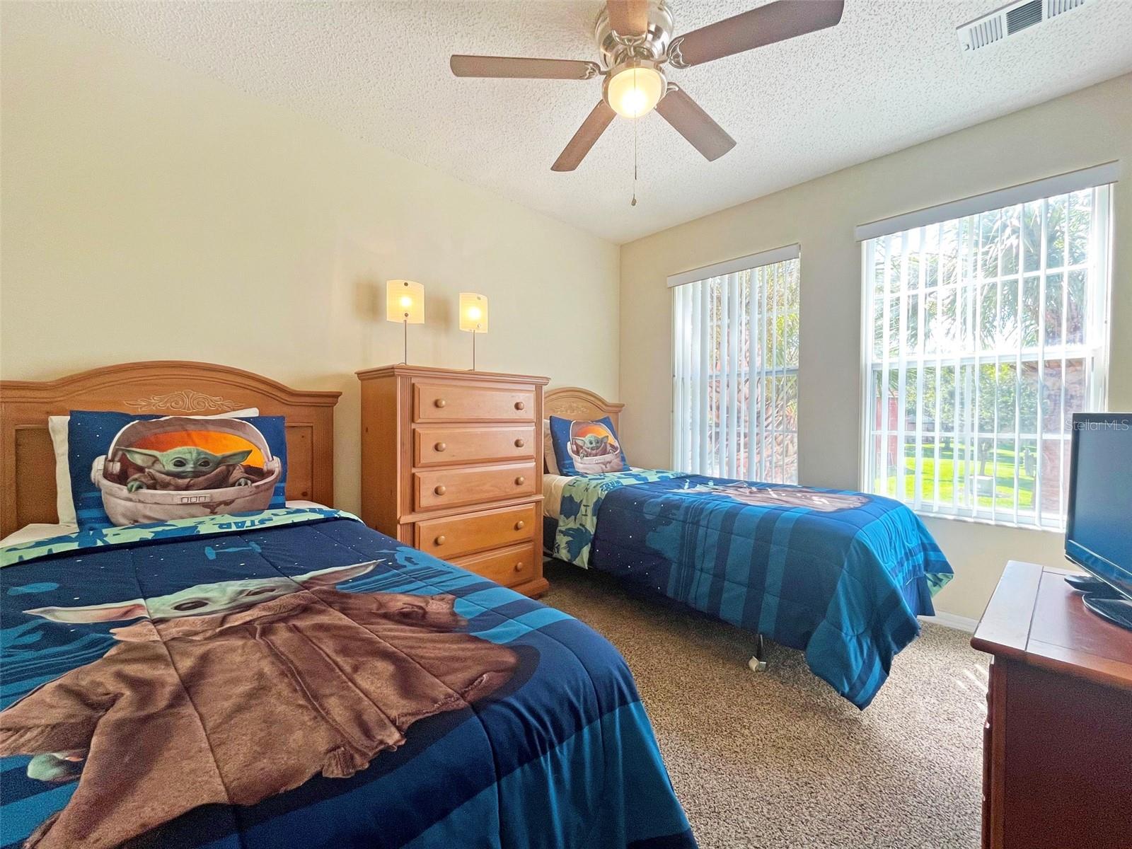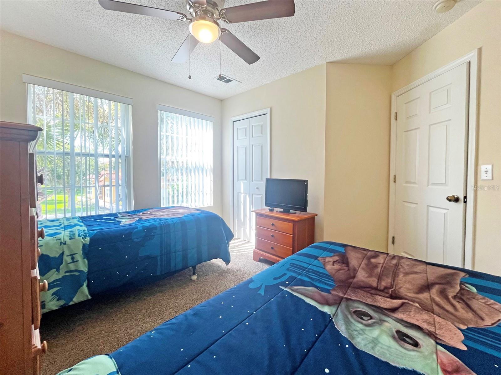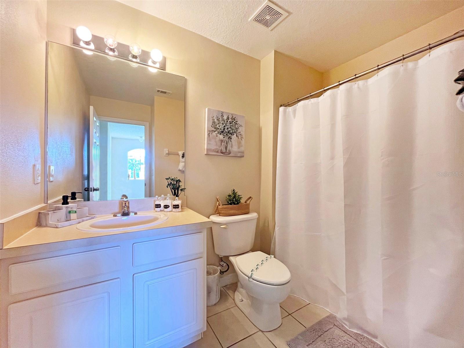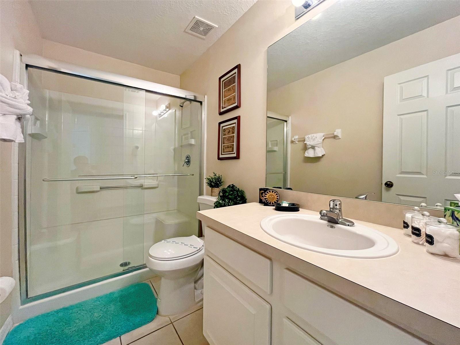 PRICE REDUCTION! Searching for a home to enjoy fun in the sun, that also offers an atmosphere of peace and tranquility? Look no further than this homely 4-bedroom end townhome nestled in the smaller, separately gated section, of the stunning Emerald Island Resort (which boasts its own pool and spa just a few steps away)! With a BRAND NEW AC SYSTEM AND WATER HEATER, you are all set to rent out or reside from day one! A RARE FIND – this home has three separate screened-in outdoor seating spaces! As you arrive at the property you are met with a lovely private pathway up to the home, lined with beautifully manicured bushes, flowers and trees. This leads to a screened-in front porch area perfect for enjoying a morning coffee and a moment of solitude before you start the day. As you enter the home you are first welcomed into a hallway which opens out into the bright and airy main living space. With the multitude of large windows and sliding doors spanning the area, and the high sloping ceiling, the home boasts gorgeous natural light. The kitchen has recently been updated with a granite countertop, double stainless-steel sink and gleaming marble-look tiling which gives the home a luxurious feel. It also features breakfast bar seating for those busy mornings. The dining area is situated adjacent to the sliding doors so that you have a beautiful view out to the green area behind. These doors open out onto a rear porch area, which is also fully screened to prevent any bugs. On the main floor you will find one spacious bedroom with a walk-in closet, ensuite bathroom and its own mini fridge and countertop space. This bedroom also has its own private entrance from the front porch. Upstairs you will find the primary bedroom featuring a walk-in closet and ensuite bathroom. This room has the fantastic feature of a private screened balcony with views out to the Resort’s pool; perhaps sit and watch family members splash in the pool whilst also enjoying time to yourself with a good book? There are a further two bedrooms upstairs that share a family bathroom. Emerald Island Resort is perfectly situated to explore the best of Central Florida, whilst also having easy access to major roads for commuting. The Resort not only features the usual amenities of a pool, spa, sports courts, sauna etc. but also boasts an on-site Tiki Bar and a stunning nature trail (pathway leading through 11 acres of picturesque woodland)!