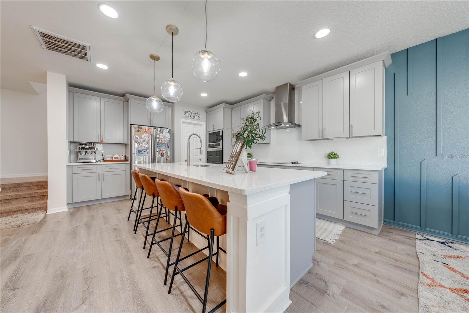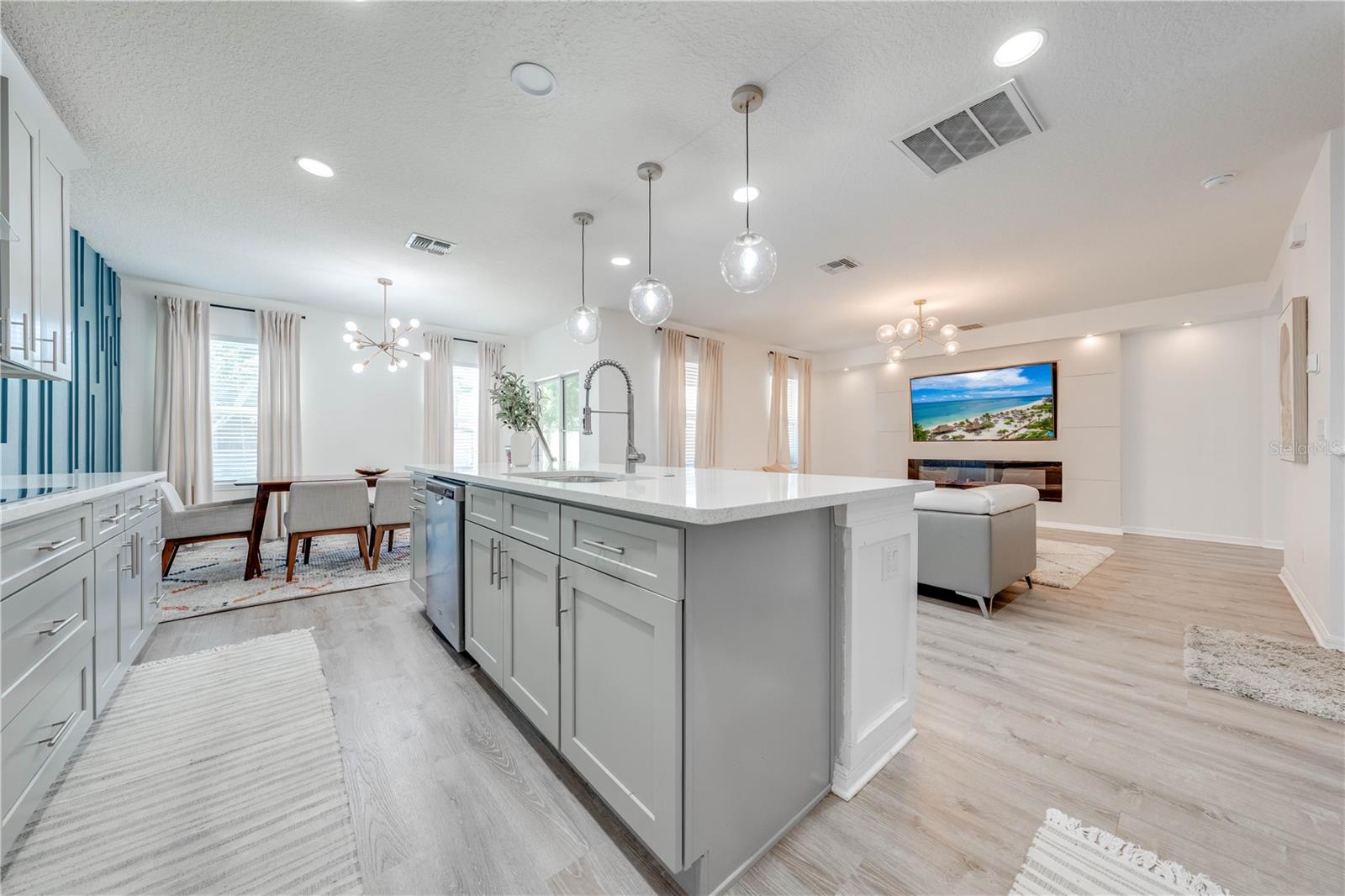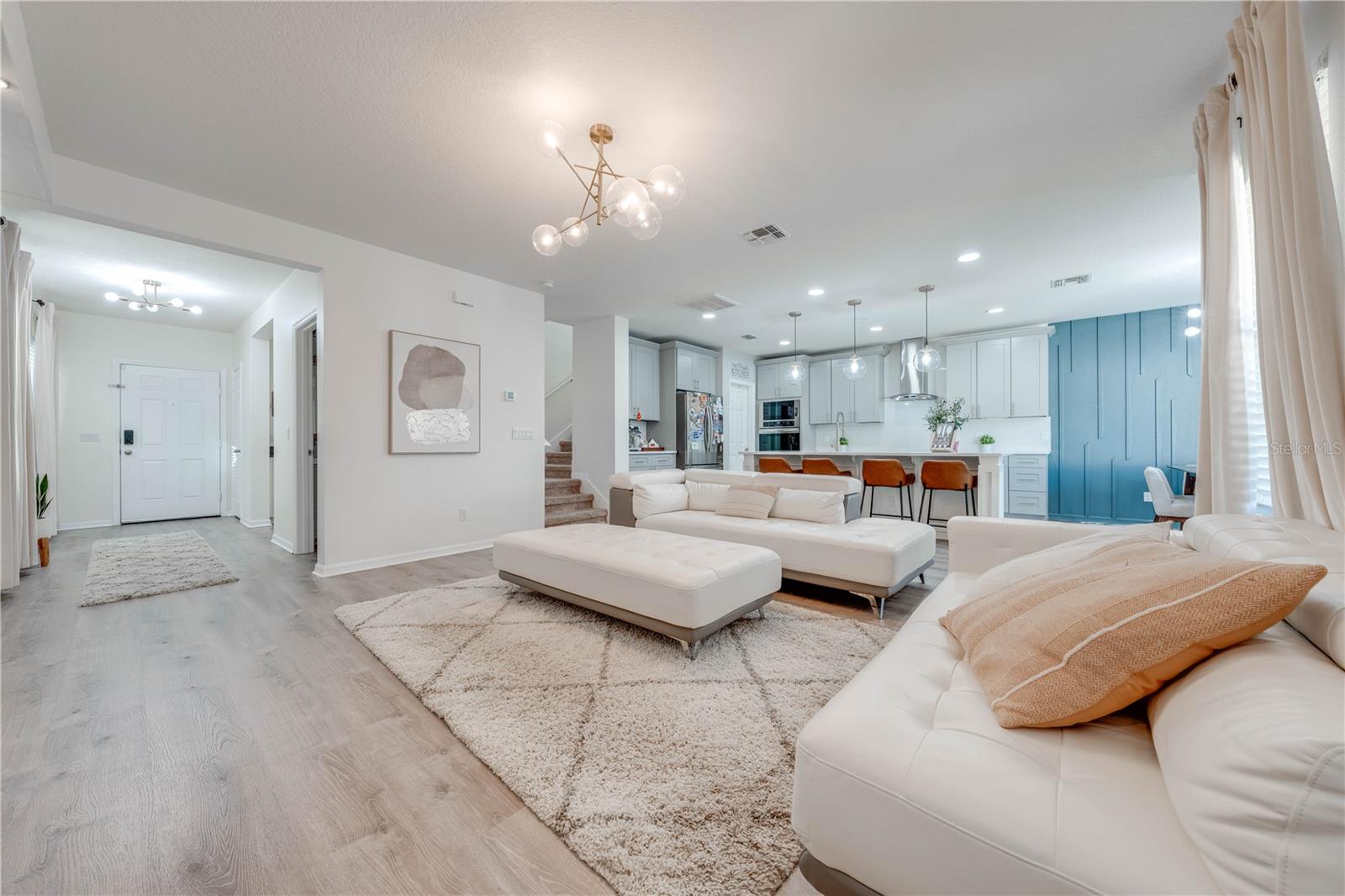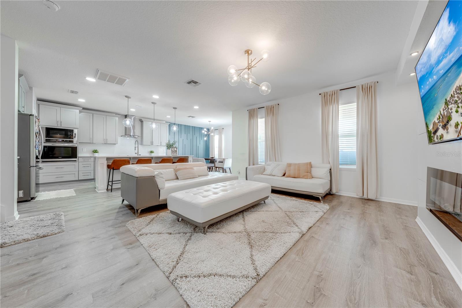 Welcome to 2778 Monticello Way, Kissimmee, FL 34741! This beautifully upgraded home is full of modern touches and stylish details. The open floor plan features a cozy living room with an electric fireplace and a sleek accent wall. The kitchen has been upgraded with quartz countertops, a large island with seating, modern pendant lights, and custom 42" cabinets with plenty of storage. You'll also love the stainless steel appliances and range hood, adding a gourmet feel. Upgraded flooring throughout gives the home a fresh, modern look, and the built-in racks in the master closets for an extra organization. Enjoy outdoor living on the covered lanai with a patio, and take advantage of the 2-car garage for extra convenience. With a brand-new 2023 A/C and community amenities like a playground and cabana, you're just 5 minutes from The Loop mall, 15 minutes from Disney, and near shopping at Posner Park and ChampionsGate Village. This upgraded gem won’t last long—don’t miss out on this stunning home