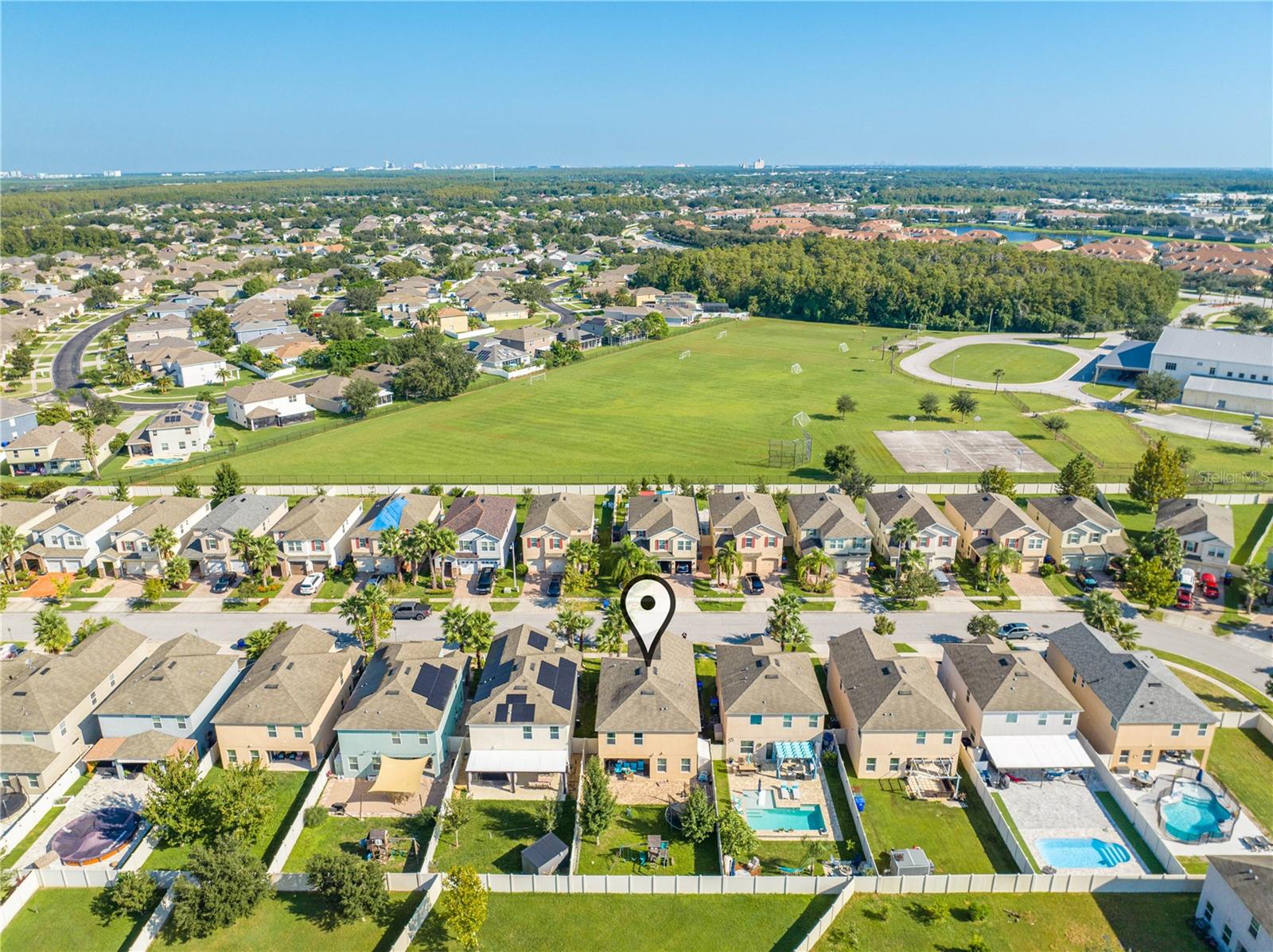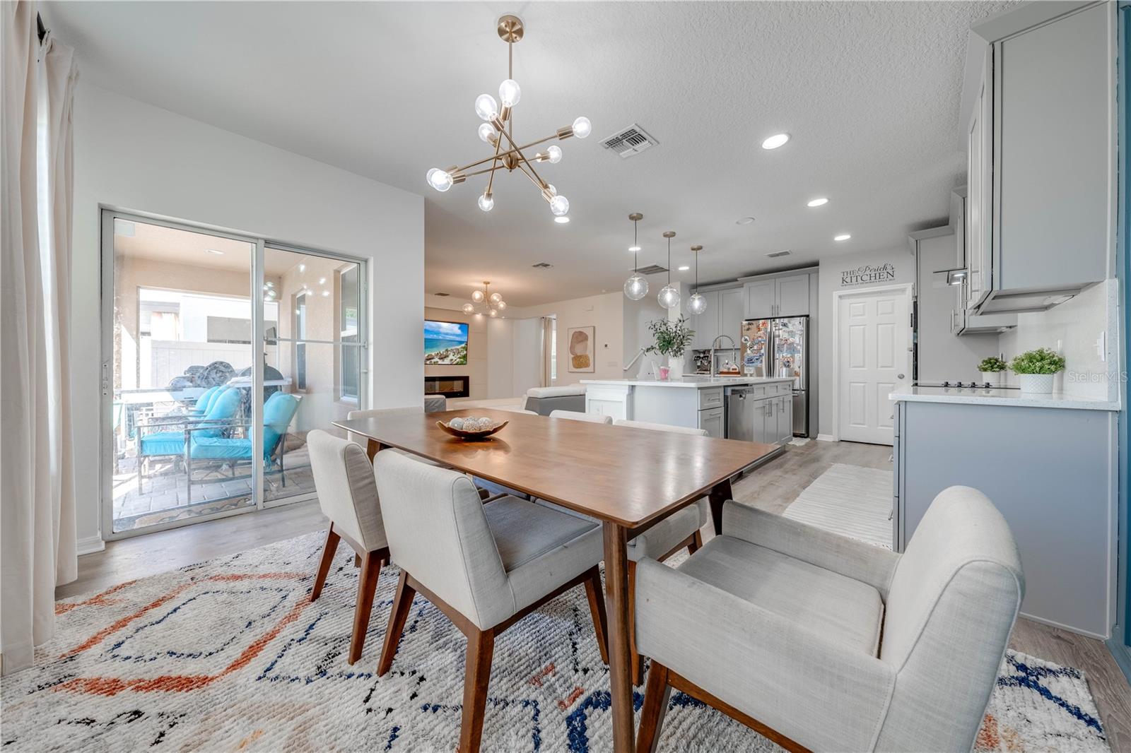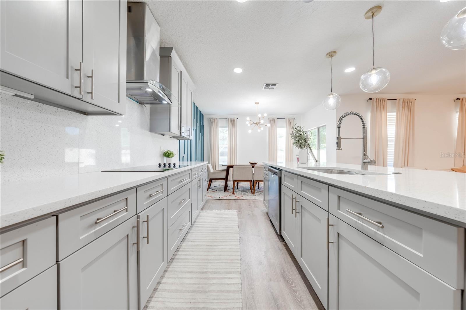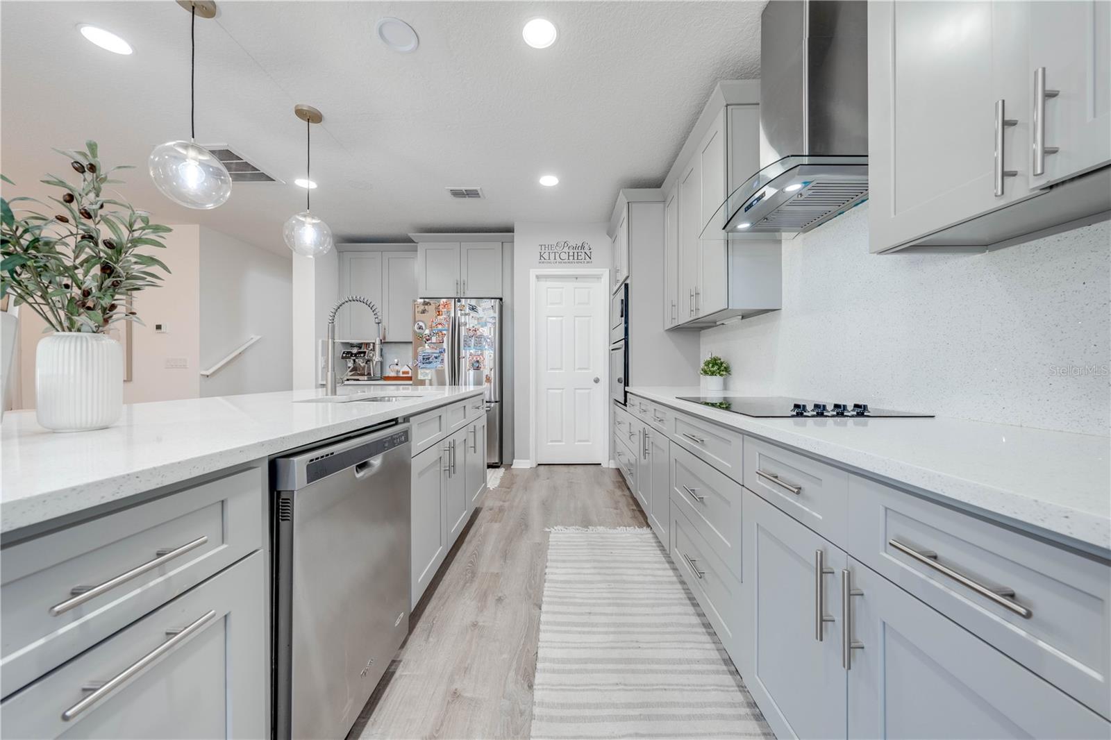 Welcome to 2778 Monticello Way, Kissimmee, FL 34741! This beautifully upgraded home is full of modern touches and stylish details. The open floor plan features a cozy living room with an electric fireplace and a sleek accent wall. The kitchen has been upgraded with quartz countertops, a large island with seating, modern pendant lights, and custom 42" cabinets with plenty of storage. You'll also love the stainless steel appliances and range hood, adding a gourmet feel. Upgraded flooring throughout gives the home a fresh, modern look, and the built-in racks in the master closets for an extra organization. Enjoy outdoor living on the covered lanai with a patio, and take advantage of the 2-car garage for extra convenience. With a brand-new 2023 A/C and community amenities like a playground and cabana, you're just 5 minutes from The Loop mall, 15 minutes from Disney, and near shopping at Posner Park and ChampionsGate Village. This upgraded gem won’t last long—don’t miss out on this stunning home