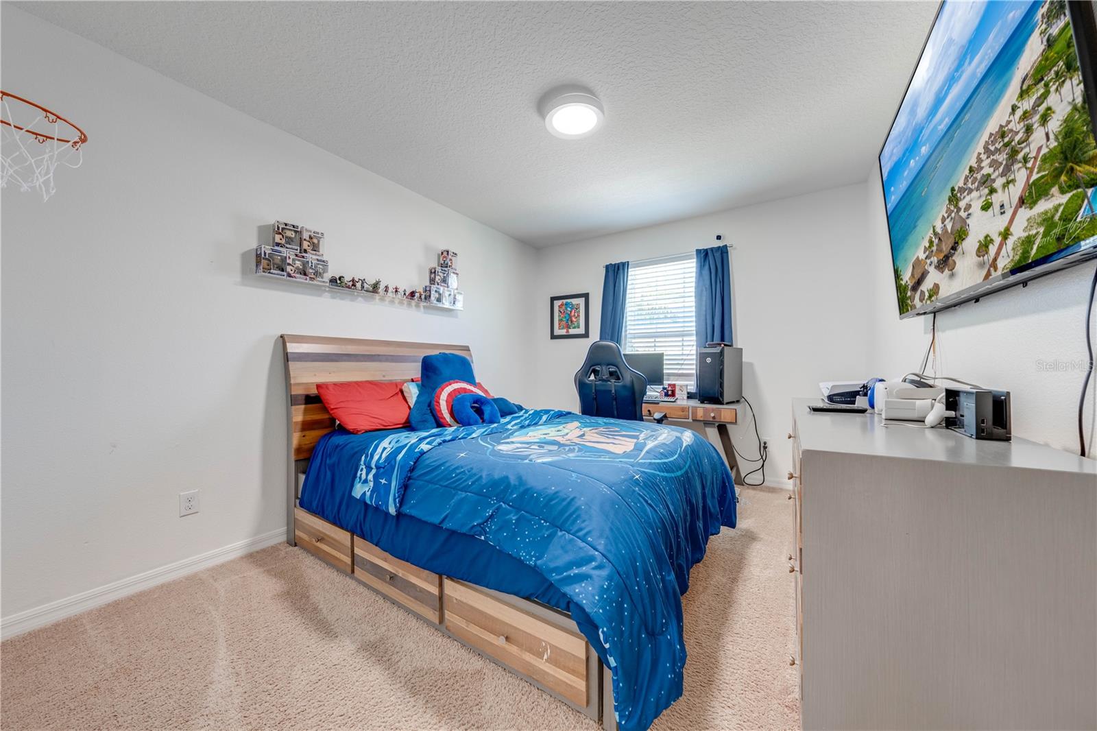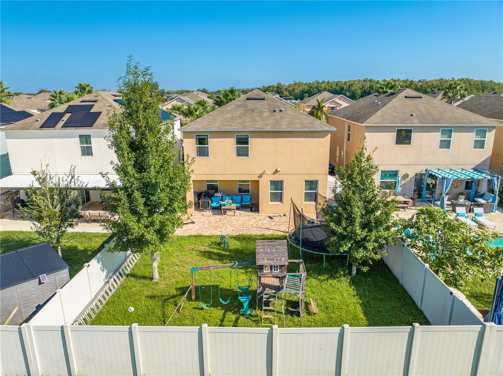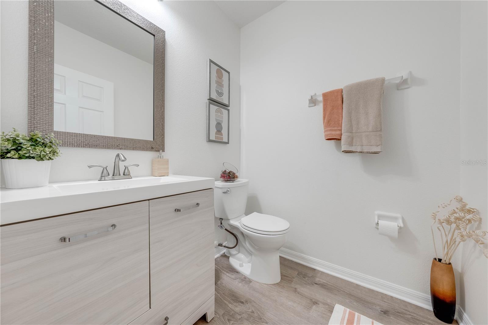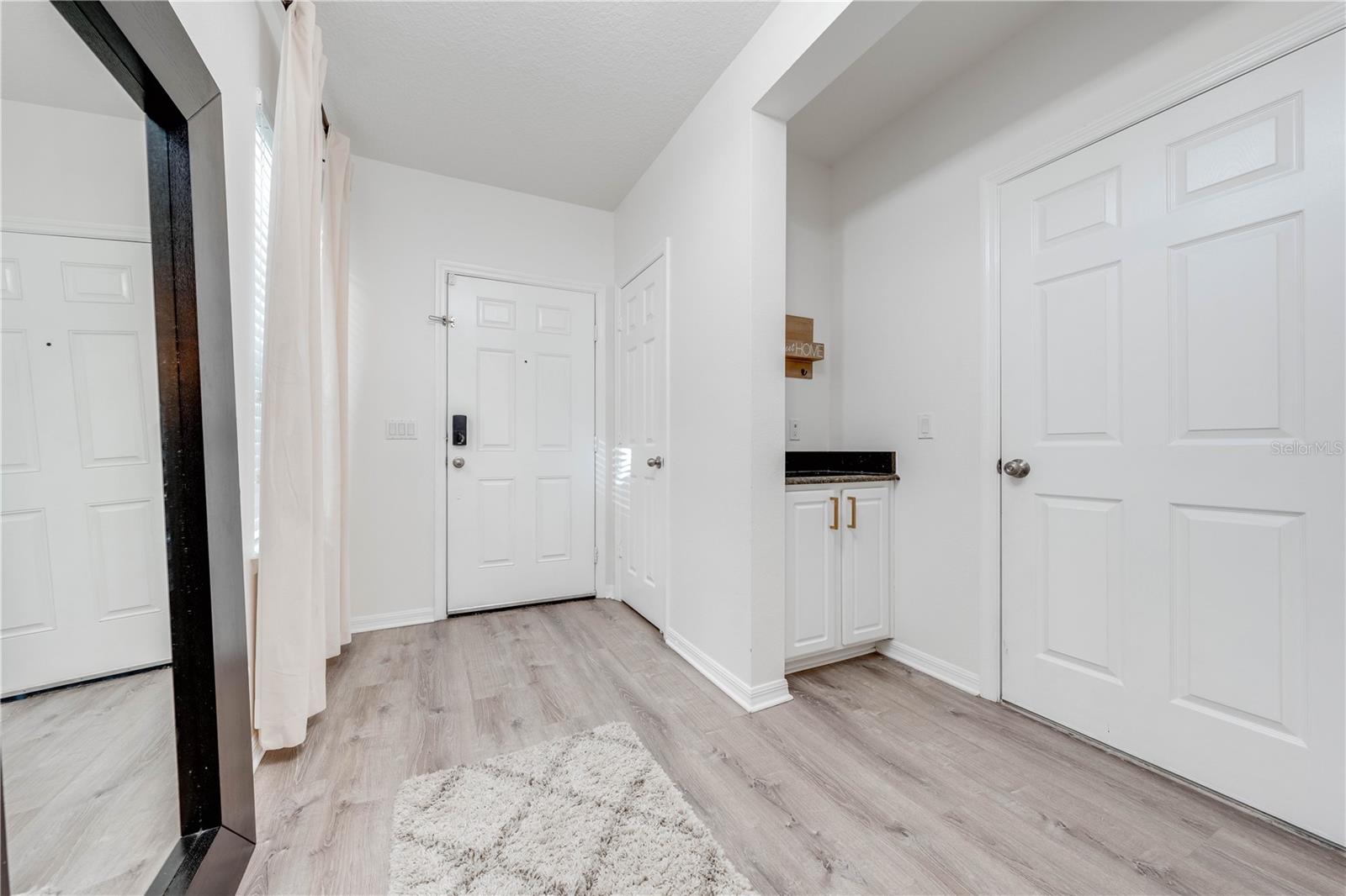 Welcome to 2778 Monticello Way, Kissimmee, FL 34741! This beautifully upgraded home is full of modern touches and stylish details. The open floor plan features a cozy living room with an electric fireplace and a sleek accent wall. The kitchen has been upgraded with quartz countertops, a large island with seating, modern pendant lights, and custom 42" cabinets with plenty of storage. You'll also love the stainless steel appliances and range hood, adding a gourmet feel. Upgraded flooring throughout gives the home a fresh, modern look, and the built-in racks in the master closets for an extra organization. Enjoy outdoor living on the covered lanai with a patio, and take advantage of the 2-car garage for extra convenience. With a brand-new 2023 A/C and community amenities like a playground and cabana, you're just 5 minutes from The Loop mall, 15 minutes from Disney, and near shopping at Posner Park and ChampionsGate Village. This upgraded gem won’t last long—don’t miss out on this stunning home