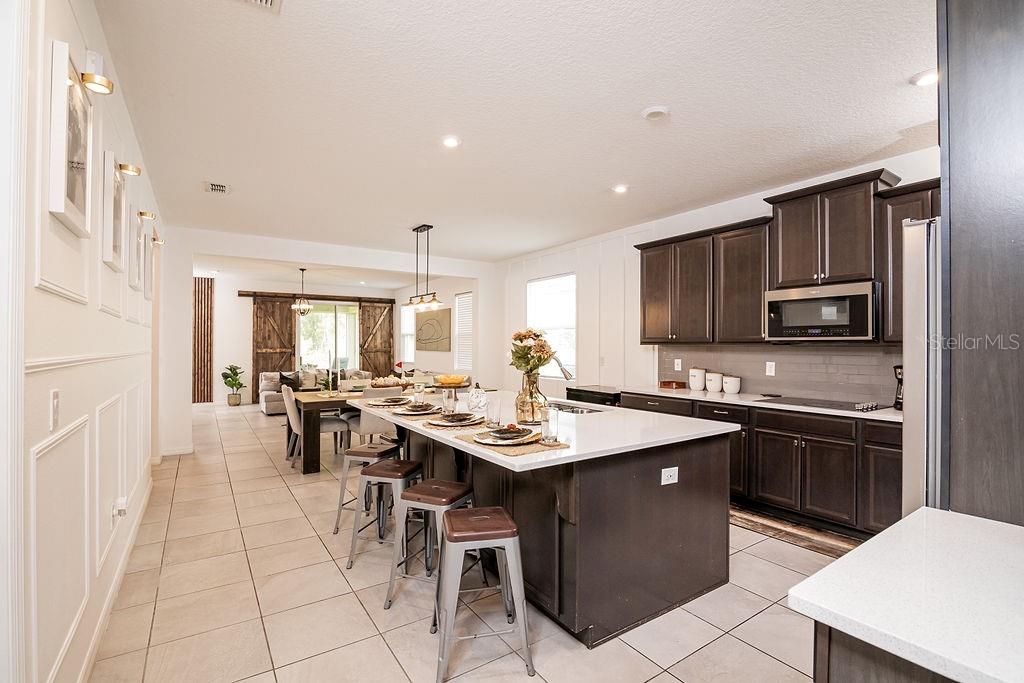 Nestled in the sought-after Tapestry Community of Kissimmee, this stunning 4-bedroom, 3-bathroom home boasts an inviting split-bedroom floor plan. The heart of the home is its expansive open-concept layout, where a gourmet kitchen—complete with Quartz countertops and an oversized island—seamlessly flows into the living room, perfect for entertaining and family gatherings. This exceptional residence is complemented by the community’s outstanding amenities, including 24/7 gated security, a resort-style pool, fitness center, playground, and a clubhouse for social events.Seller will contribute for closing cost. Ideally located near The Loop shopping centers, world-class attractions, major roads, and theme parks, this home offers convenience and comfort in one of Kissimmee’s premier neighborhoods.