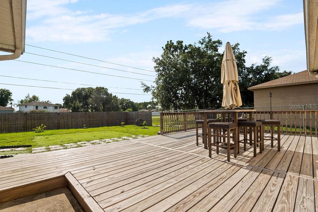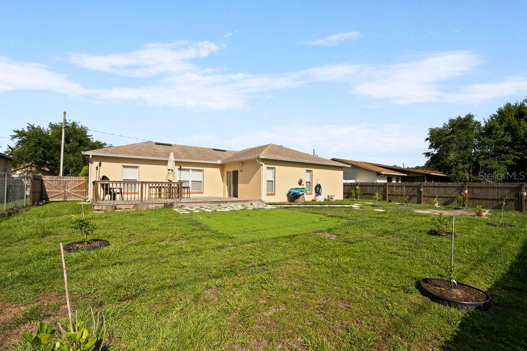 This delightful 3-bedroom, 2-bathroom single-family home offers comfortable living with modern updates and a fantastic outdoor space. Step inside to discover a spacious split bedroom floor plan, featuring a bright and airy living and dining room combination, perfect for entertaining. A separate family room provides additional space for relaxation and gatherings. Enjoy the tranquility of a fenced backyard with an open deck patio, ideal for outdoor living and entertaining. Best of all, NO BACKYARD NEIGHBORS! The garage is equipped with a convenient closet, screen door, and garage door opener. This home is packed with valuable features, including an AC unit installed in 2021 and a water heater replaced in 2020. Hurricane shutters and rain gutters provide added protection and peace of mind. The laundry room is conveniently located inside the home. Located close to the hospital and the new highway, this property offers easy access to amenities and commuting routes. Enjoy the benefits of a low HOA with no CDD. Key Features: 3 Bedrooms / 2 Bathrooms Fenced Backyard with Open Deck Patio Split Bedroom Floor Plan Living & Dining Room Combo Separate Family Room Newer Kitchen and Bathroom Countertops Master Bathroom with Garden Tub & Separate Shower NO BACKYARD NEIGHBORS! Garage with Closet, Screen Door & Opener Indoor Laundry Room AC Unit (2021) Water Heater (2020) Hurricane Shutters Rain Gutters Close to Hospital & New Highway Low HOA, No CDD GREAT CONDITIONS! Motivated Seller! Don't miss this incredible opportunity to own this wonderful home! Schedule your showing today!