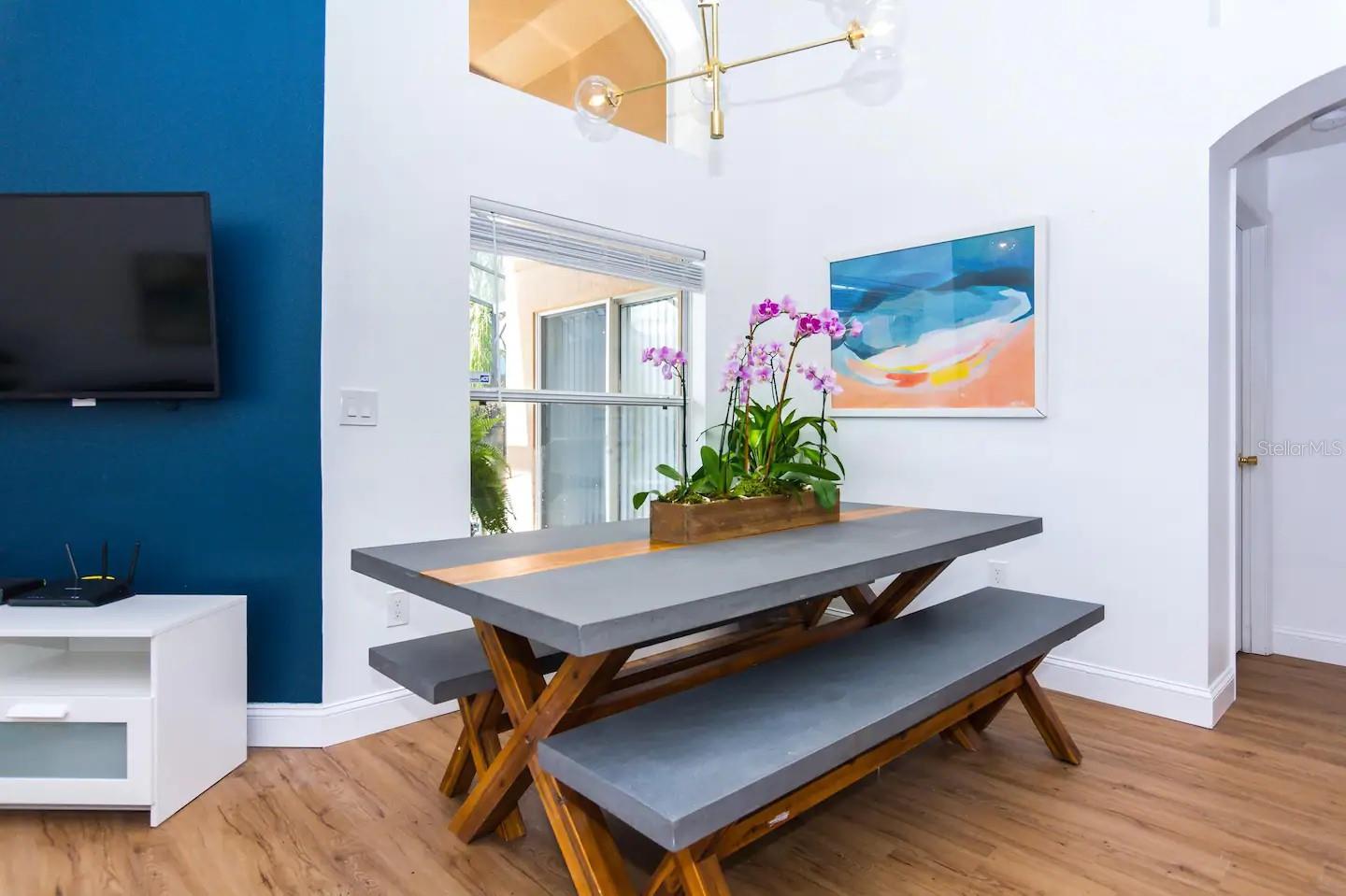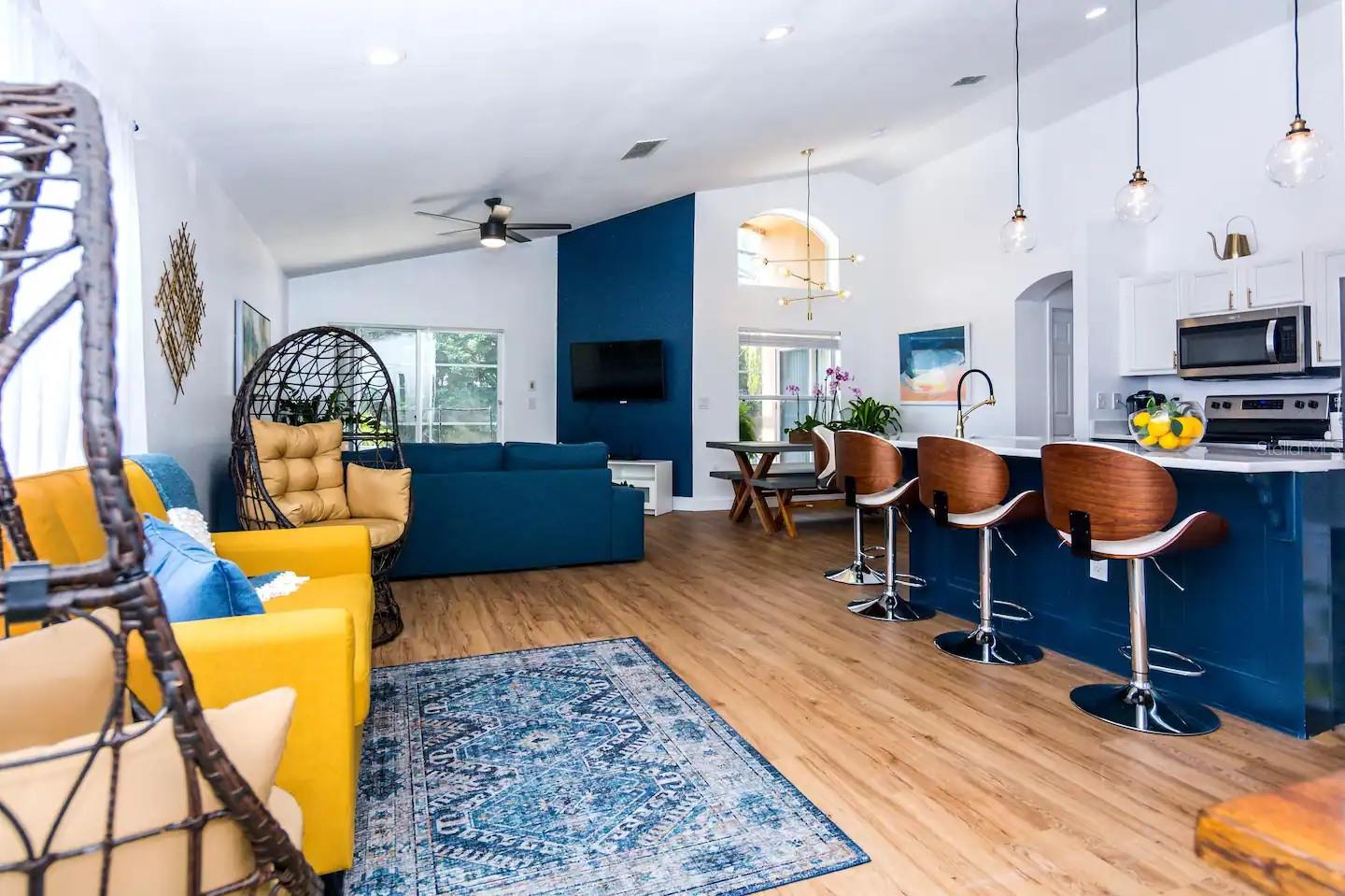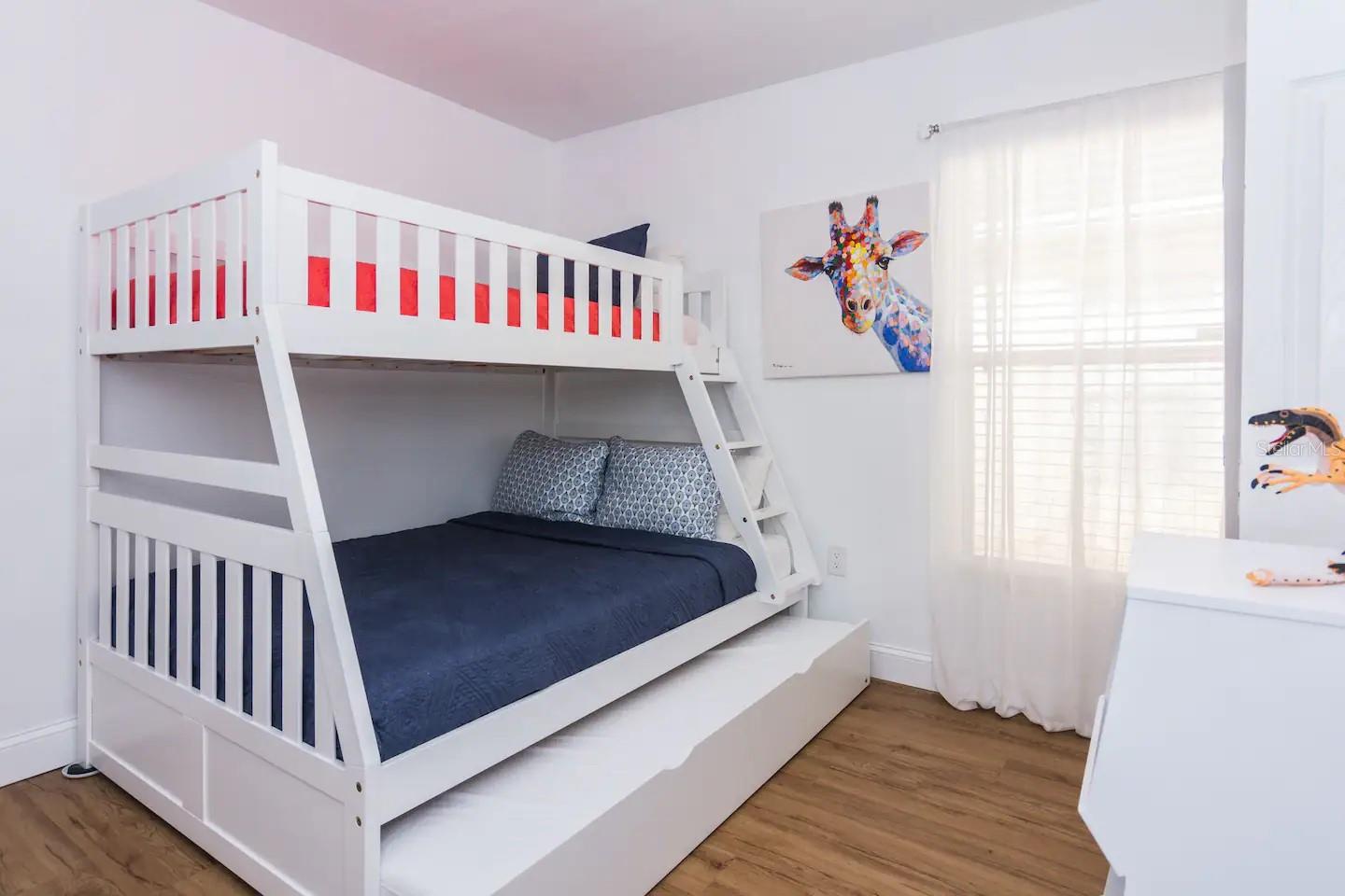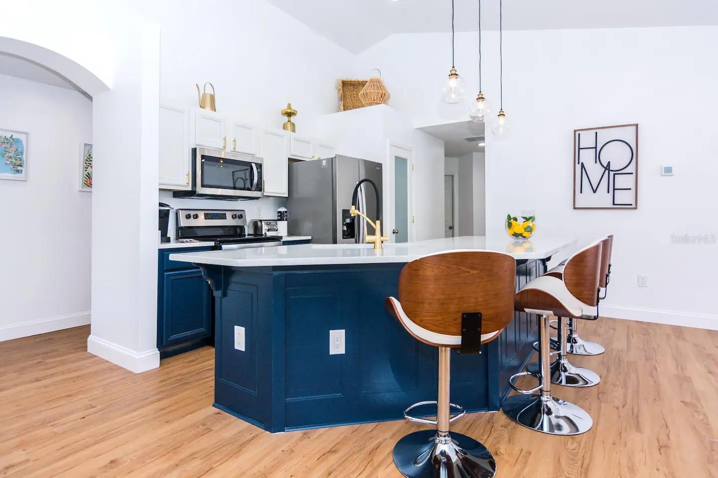 Welcome to this beautiful 4-bedroom, 3-bath vacation home in Kissimmee with Solar pannels! Come and save in your electricity bill!!! Stunning 1,542 sq. ft. of pure privacy, this house offers a perfect blend of comfort and style.The unit features a beautifully designed kitchen, modern appliances, and spacious living areas, making it an ideal retreat for relaxation. A beautiful pool in the backyard adds a touch of luxury, this charming home offers the perfect getaway. Elegant Clubhouse with desk service and complimentary morning coffee/tea. Business Area for your convenience. Common Area with a library and games, arcade room, fitness center, and sauna. Theater room for family entertainment, heated Pool and hot tub, tiki Bar, playground and mini golf for outdoor fun tennis, Basketball Court, Ping Pong, Hammocks, and much more. This vacation home offers the ultimate blend of luxury, comfort, and resort-style living. Don’t miss the chance to make it yours! Schedule your visit, as this unit will not be available for much longer.