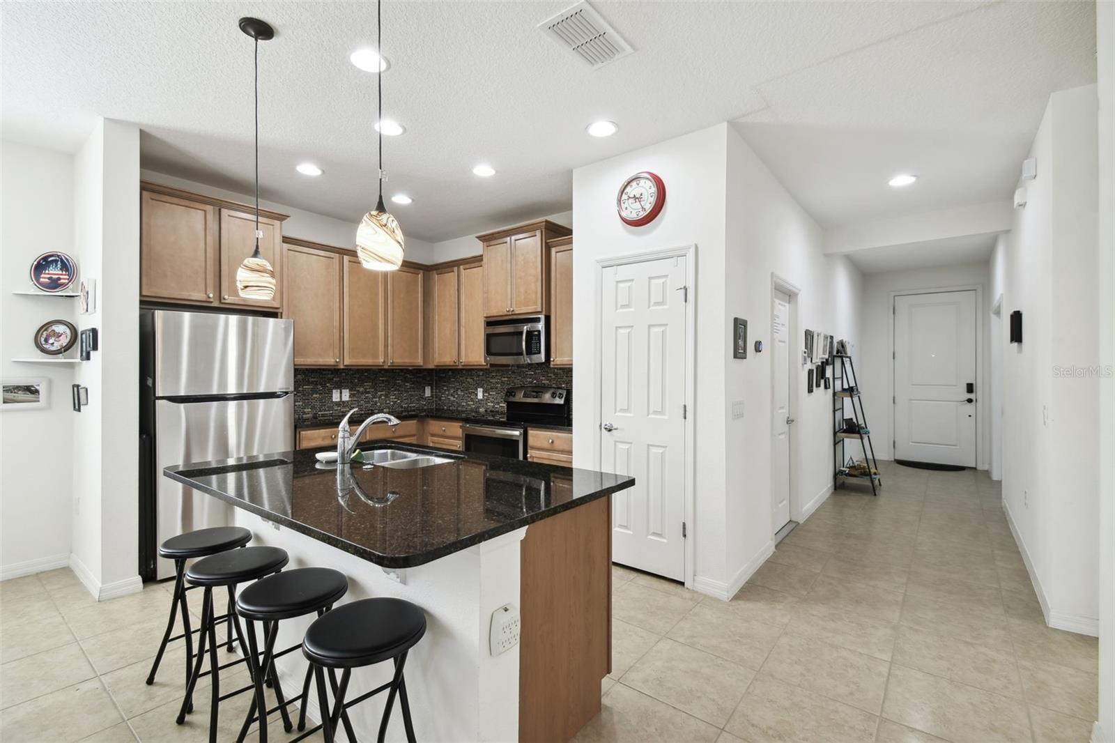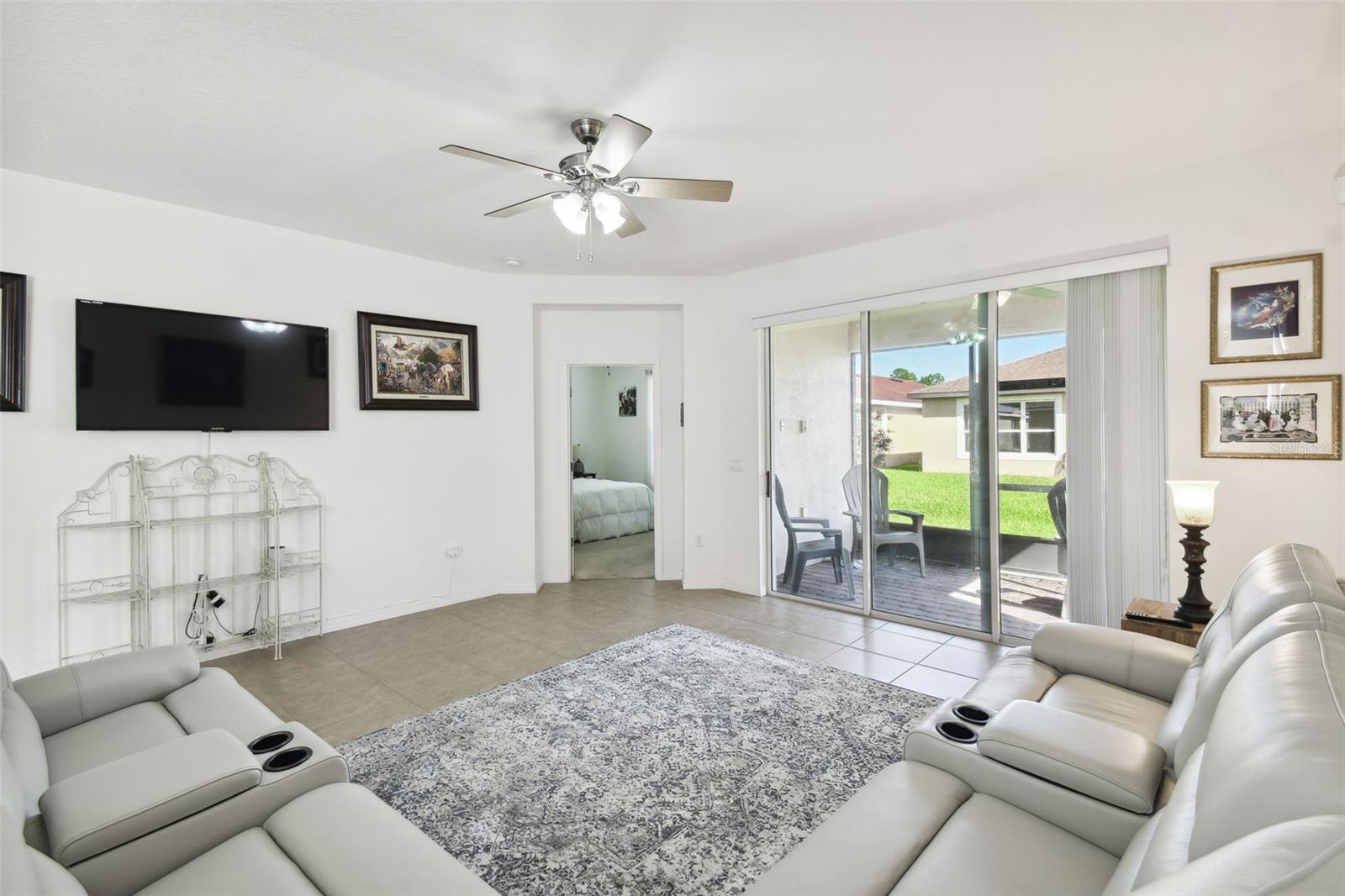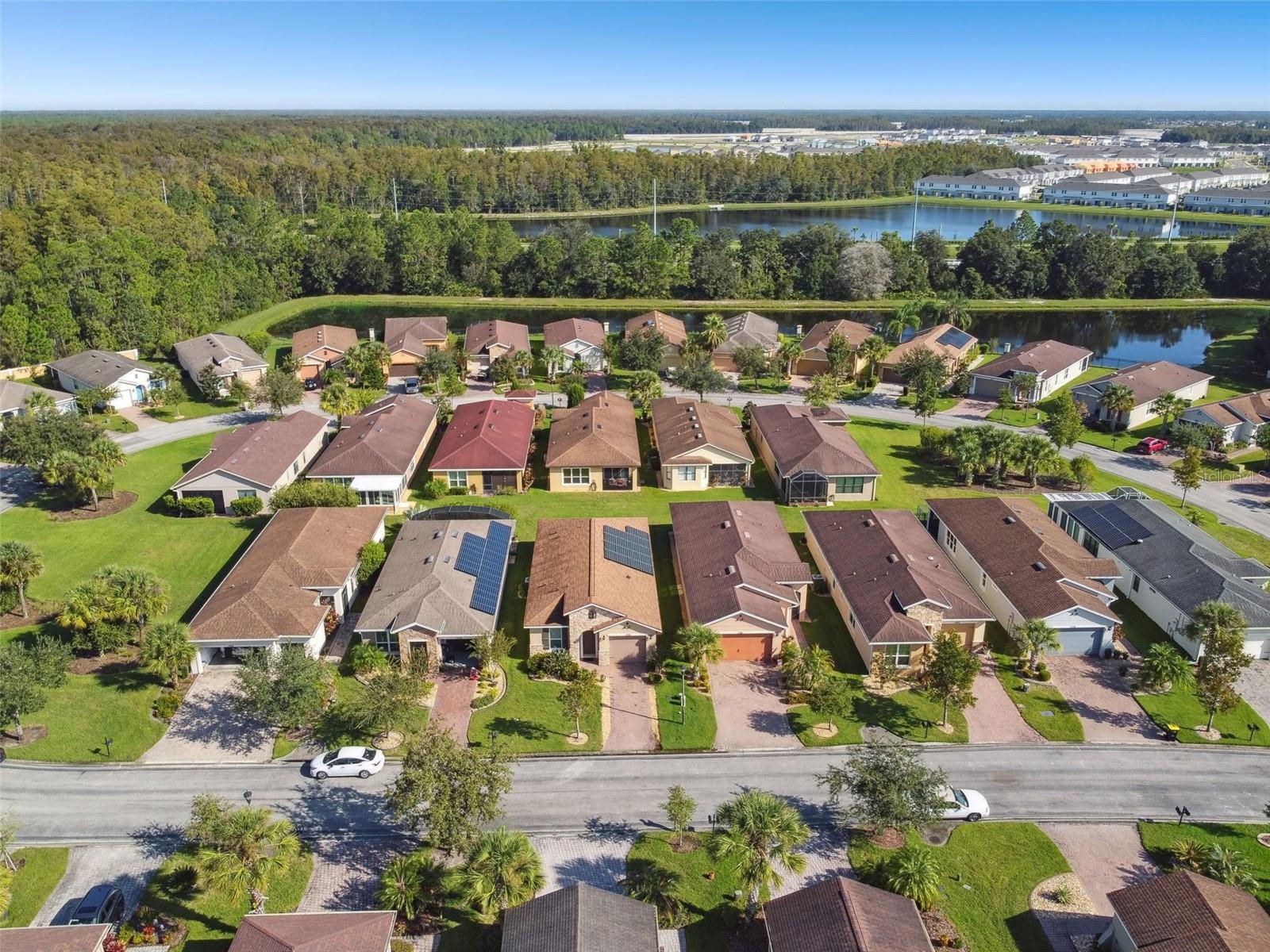 HUGE PRICE REDUCTION! SELLER SAYS "SELL"! Impressive Custom Home with Stone Facade – This beautifully upgraded 3-bedroom, 2-bathroom home features an open floor plan with spacious living and dining areas. The modern kitchen boasts granite countertops, a stylish tile backsplash, an eat-at island, stainless steel appliances, and a combination of recessed and pendant lighting. The large primary bedroom includes an en-suite bathroom with dual sinks, walk in closet and a walk-in shower. Ceramic tile flows through the main living areas, with cozy carpet in the bedrooms. Additional highlights include a screened-in lanai, energy-efficient double-pane windows, ceiling fans throughout, and double atrium doors leading to the third bedroom/den. A solar panel system keeps energy bills low, and the ion exchange water conditioner adds convenience. All furniture is included, and a golf cart is available for purchase. The exterior was freshly painted in 2022, and this home qualifies for a new home insurance discount. Beyond your front door, the Solivita community awaits with an impressive array of amenities. Dive into a life full of fun and relaxation with over 200 clubs, sports, and activities. Enjoy the community’s clubhouse, softball field, 14 swimming pools, an indoor walking track, and much more. Every day offers something new to explore and enjoy. Additionally, enjoy the convenience of having Poinciana Lakes Plaza, a major new shopping center, opening directly across from the Solivita Main Gate this year. This vibrant plaza will feature a diverse selection of stores and services, including a grocery store, TJ Maxx, Ross, Burlington, Rack Room Shoes, 5 Below, Ulta, Outback, First Watch, Petco, Five Guys, Popeyes, Urgent Care, a dentist, TD Bank, Hair Cuttery, Walgreens, and even more to come.Check out the Matterport 3D link!
