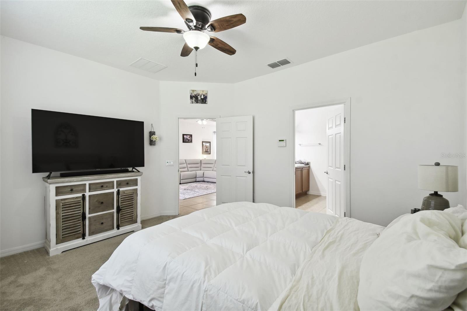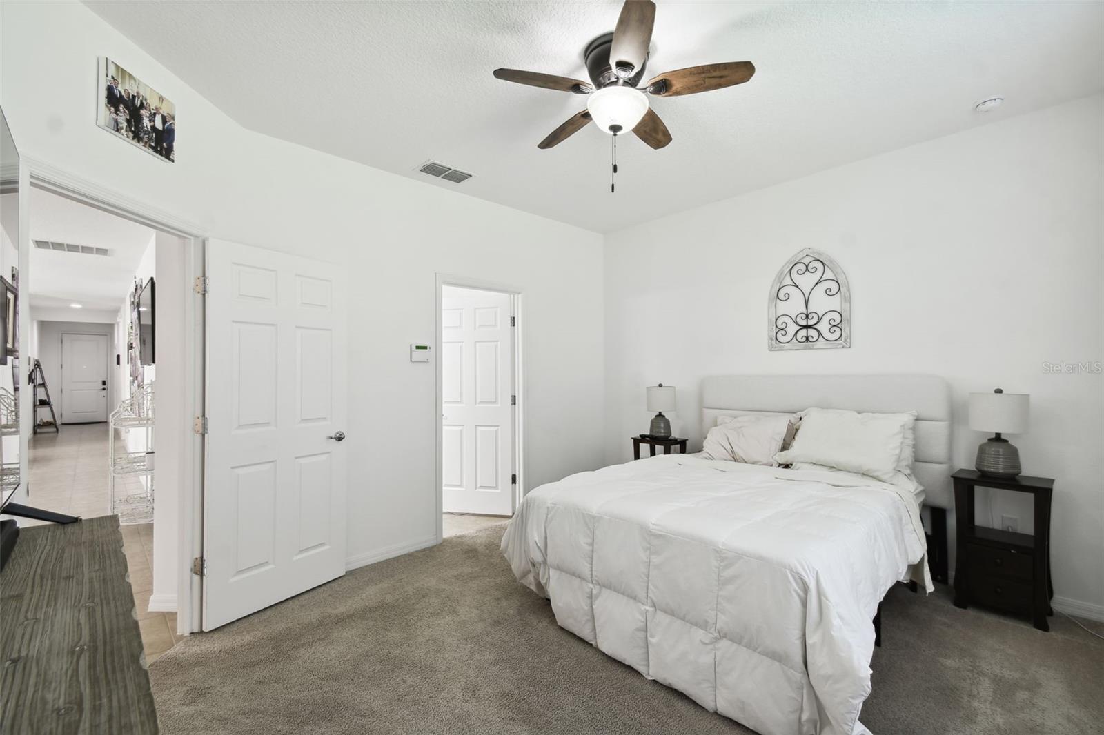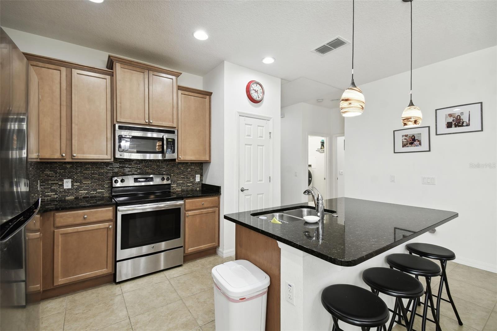 HUGE PRICE REDUCTION! SELLER SAYS "SELL"! Impressive Custom Home with Stone Facade – This beautifully upgraded 3-bedroom, 2-bathroom home features an open floor plan with spacious living and dining areas. The modern kitchen boasts granite countertops, a stylish tile backsplash, an eat-at island, stainless steel appliances, and a combination of recessed and pendant lighting. The large primary bedroom includes an en-suite bathroom with dual sinks, walk in closet and a walk-in shower. Ceramic tile flows through the main living areas, with cozy carpet in the bedrooms. Additional highlights include a screened-in lanai, energy-efficient double-pane windows, ceiling fans throughout, and double atrium doors leading to the third bedroom/den. A solar panel system keeps energy bills low, and the ion exchange water conditioner adds convenience. All furniture is included, and a golf cart is available for purchase. The exterior was freshly painted in 2022, and this home qualifies for a new home insurance discount. Beyond your front door, the Solivita community awaits with an impressive array of amenities. Dive into a life full of fun and relaxation with over 200 clubs, sports, and activities. Enjoy the community’s clubhouse, softball field, 14 swimming pools, an indoor walking track, and much more. Every day offers something new to explore and enjoy. Additionally, enjoy the convenience of having Poinciana Lakes Plaza, a major new shopping center, opening directly across from the Solivita Main Gate this year. This vibrant plaza will feature a diverse selection of stores and services, including a grocery store, TJ Maxx, Ross, Burlington, Rack Room Shoes, 5 Below, Ulta, Outback, First Watch, Petco, Five Guys, Popeyes, Urgent Care, a dentist, TD Bank, Hair Cuttery, Walgreens, and even more to come.Check out the Matterport 3D link!