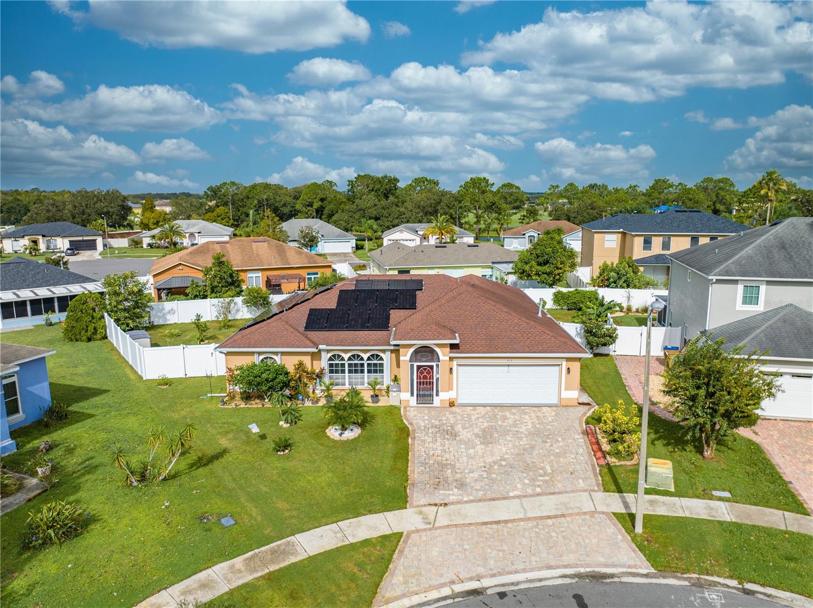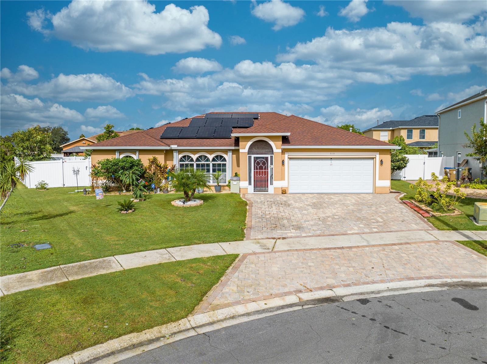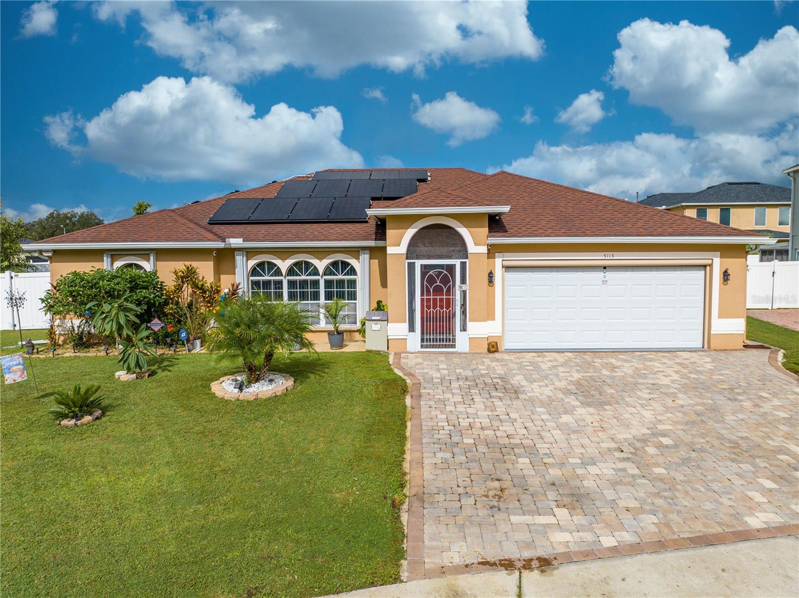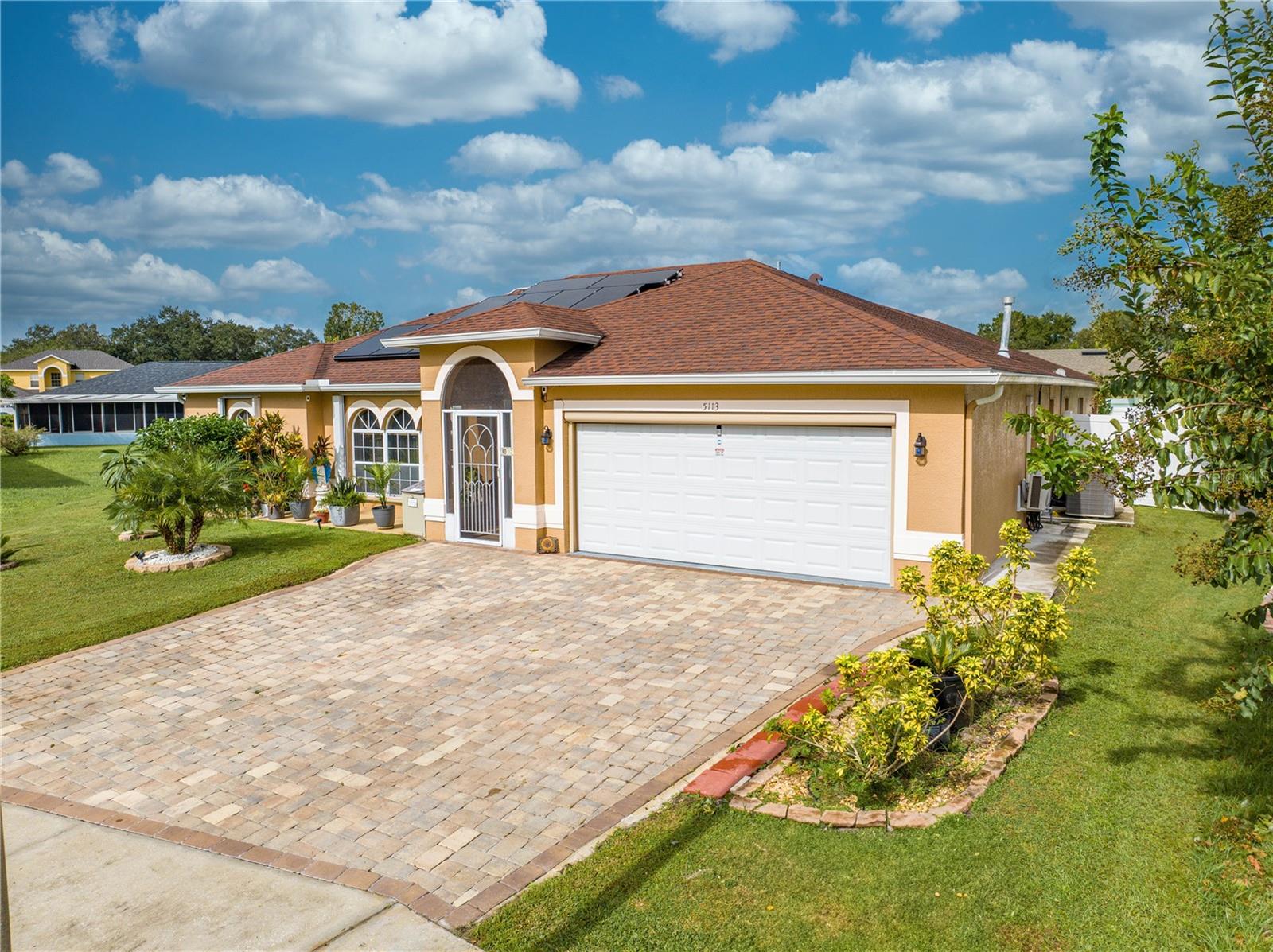 This beautifully updated home features a split floor plan with ceramic tile in the main living areas and new water-resistant laminate flooring in all bedrooms. The formal living room, dining room, family room, and updated kitchen with newer stainless steel appliances provide ample living space.Additional updates include a new tankless water heater installed in July 2024 and a roof replacement in 2017. Enjoy the large sunroom (30x12) and screened-in enclosure (30x16), perfect for outdoor relaxation. The backyard is fully fenced with white vinyl fencing for privacy, and the spacious paver driveway offers plenty of parking. The garage includes a new retractable garage door screen and an AC wall unit, which will stay with the home. Located in the Crescent Lakes subdivision, residents enjoy access to two playgrounds, tennis courts, a park, and a basketball court, with lighted walkways around the ponds. Close to schools, shopping, restaurants, and theme parks, this home offers convenience and community amenities.**Solar Panels are transferable**