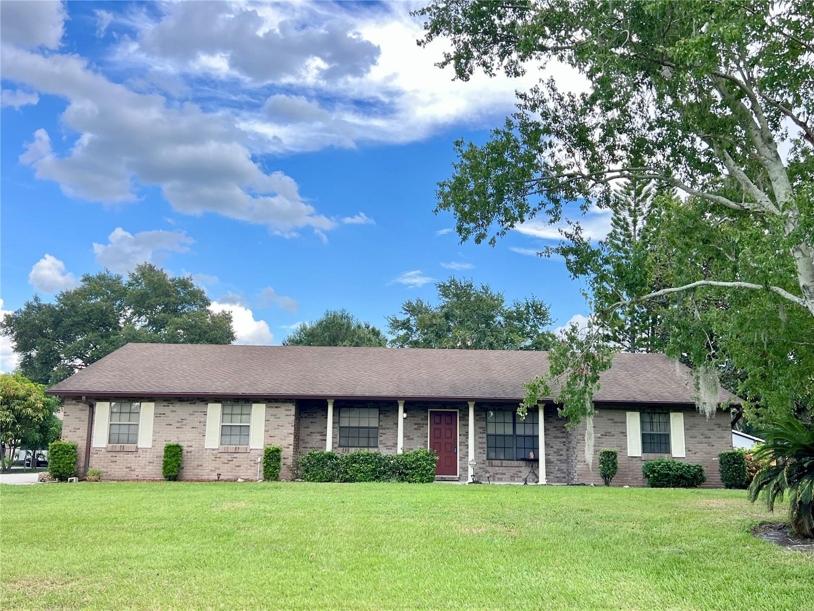 BRING YOUR BOAT, RV, OR TRAILER! Peaceful HALF ACRE ! LARGE FLORIDA ROOM! CONVERTED GARAGE! SHED WORKSHOP WITH ELECTRICITY! Spacious 4 Bedroom, 2 Bathroom Single Story home on HALF ACRE of LAND! NO CDD! The LOCATION of this property is available for USDA Zero Down Payment Financing if you qualify. Bring your Boat or RV to park on your own property. Watch the sunset from your lovely front porch with lush mature trees and landscaping. Large Florida Room approximately 8'8" x 28' is fully screened and also enclosed with plexiglass windows for year round enjoyment! Great for entertaining, and includes an outdoor back patio for gardening or grilling! Park all of your vehicles in the long driveway, with plenty of room to spare. 22'x20' Garage has been converted into a carpeted Bonus Room with A/C for family recreation or an office. New ROOF was installed in 2018 along with new gutters on the house and the shed. Generous Closet Space throughout the house, with very spacious bedrooms. New Laminate Flooring was installed in 2020. Appliances are included, even the new GE washer and dryer which are located in the laundry room inside the house! The house has been completely re-plumbed. Low electric bills due to the extra layer of blown insulation in the attic. Spacious backyard WORKSHOP / SHED with Electricity, for use as a workshop or tool storage: measures 24'x12'. Public water is on-site (no well). There is plenty of room in the backyard to install your own in-ground swimming pool! Outside Floodlights installed. HOA fees are only $370.00/YEAR! Wow! Deed Restricted community, with amenities and playground. Your Furry friends Dogs and cats are welcome in this community. This is a great location! Kissimmee is famous for being in Disney's "Backyard"! Live here as your permanent residence, or use it as your Snowbird Second Home. **Excellent Location: close to 2 Publix Grocery Stores, Schools, Medical, Restaurants, Shopping, and more! All room measurements are deemed approximate, and the buyer is responsible to verify prior to purchase.