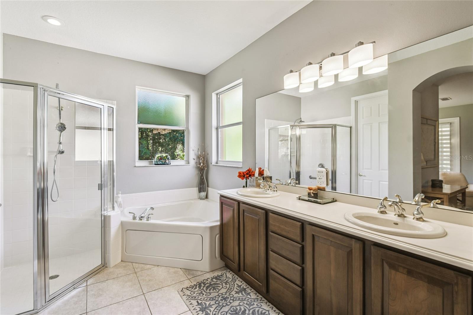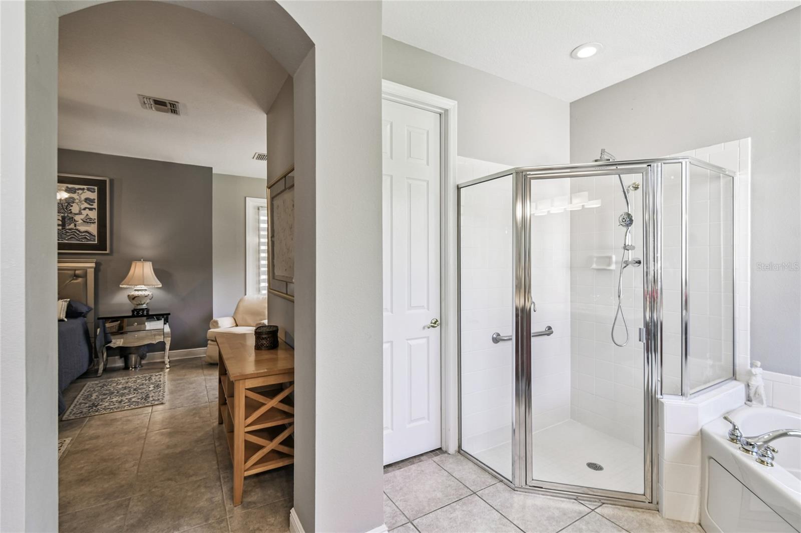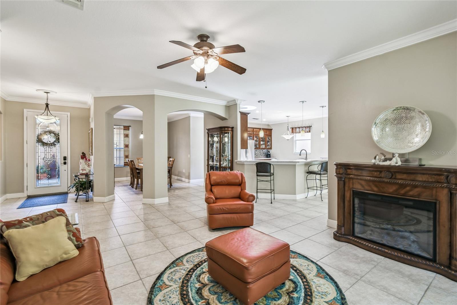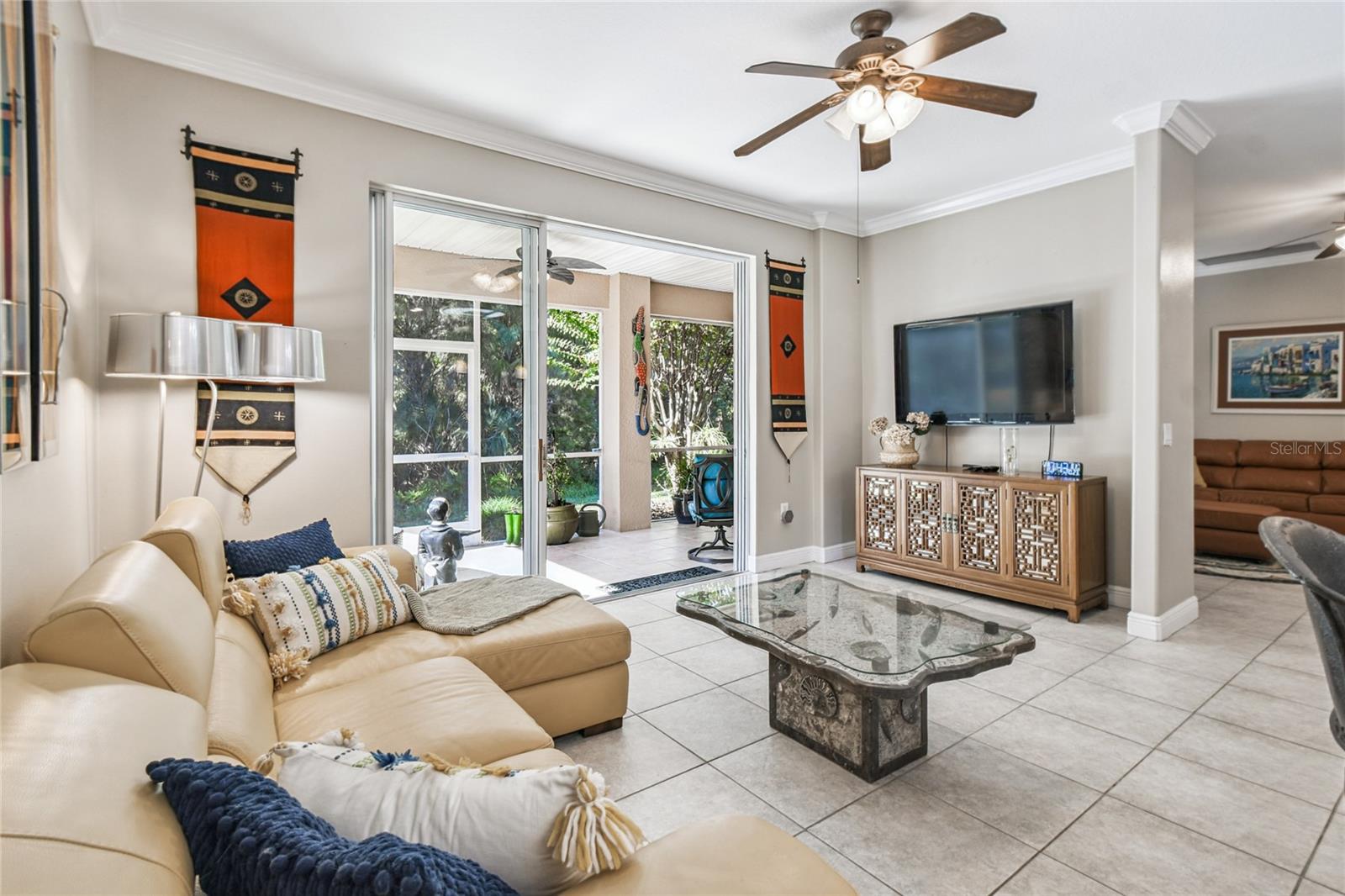 Lovely Bolero Model on Peaceful Conservation Lot with Separate Casita Suite! ROOF REPLACED 2024. HWH 2025.**See the FULL LENGTH 3D MATTERPORT VIDEO on Tour Link 1. ** Welcome to this beautifully maintained 3-bedroom, 3-bath Bolero model home, perfectly situated on a serene conservation lot offering privacy and peaceful views. From the moment you enter through the gated, cozy courtyard oasis, you'll appreciate the charm and thoughtful layout this home provides. Inside, you'll find CROWN MOLDING and 18" tile flooring throughout—with no carpets—offering both style and low-maintenance living. The chef’s kitchen is a dream for any cooking enthusiast, featuring 42" glass-front cabinets with convenient lower pull-out shelves, newer stainless steel appliances, Corian countertops, newer sink(2024) and faucet (2025), and a spacious BREAKFAST BAR with PENDANT LIGHTING overlooking the inviting Florida room. The PRIMARY SUITE is a private retreat, boasting a separate sitting area with French door access to the lanai, perfect for enjoying quiet mornings or evenings. The ENSUITE BATHROOM includes a jetted tub, walk-in shower, DUAL SINKS, and TWO generous WALK-IN closets.The second bedroom features sliding doors that open to the front courtyard and has a full bathroom nearby with a tub/shower combo, making it ideal for guests or family members. One of the standout features of this home is the separate CASITA SUITE, complete with PLANK TILE flooring, a full bath, WALK-IN CLOSET, and linen closet. This flexible space is perfect for guests, a private office, or hobby room. Enjoy the outdoors on the SCREENED and COVERED lanai featuring tile flooring with a decorative TILE RUG PATTERN on one end. This peaceful space overlooks the conservation area, where you can relax and enjoy quiet evenings surrounded by the sounds of nature. Additional highlights include a separate laundry room with NEW WASHER and DRYER (2025) included, upper storage cabinets, and a large pantry closet. The two-car garage is finished with EPOXY FLOORING and pull-down attic stairs for added storage. 8' FOOT DOORS and rounded corners. EXTERIOR PAINTED IN 2022. The HOA: - maintains the LANDSCAPING & IRRIGATION systems in the common areas as well as at individual homesites - maintains the roads throughout the community - PROVIDES SECURITY with gate guards and mobile patrols including the Polk County Sheriff - allows AUTOMATED GATE ACCESS for residents via license plate readers - provides residents with Fiber Optic Internet & TV service.***Poinciana Lakes Plaza is a MAJOR NEW SHOPPING CENTER that opened directly across from the Solivita Main Gate in Summer of 2024. It features Sprouts Grocery, TJ MAXX, Ross, Burlington, Rack Room Shoes, 5 Below, Ulta, Outback, First Watch, 5 Guys, Urgent Care, Dentist, TD Bank, Petco & Hair Cuttery PLUS MORE TO COME.***